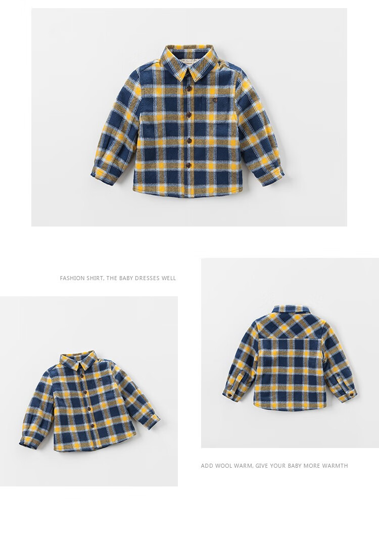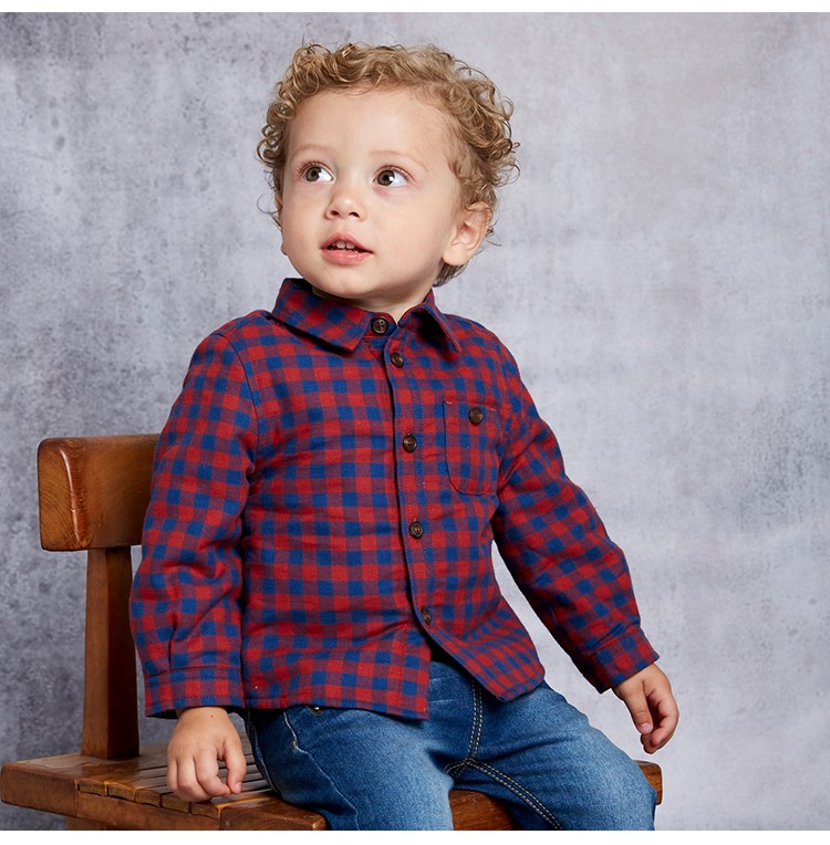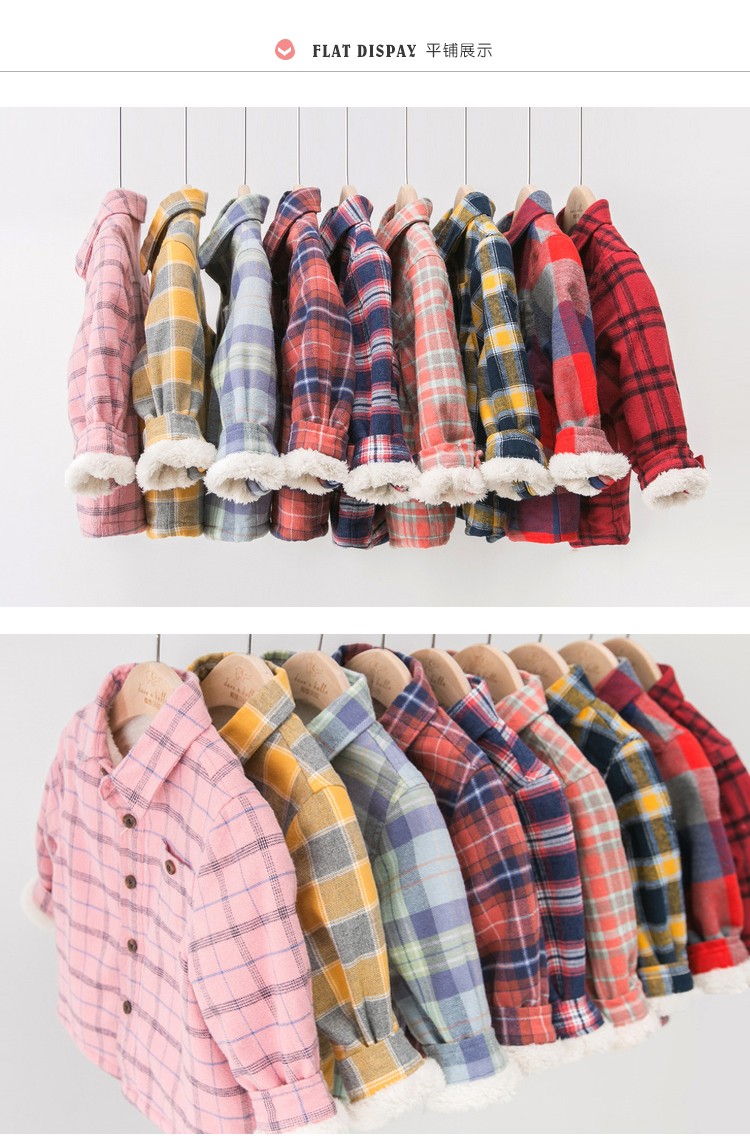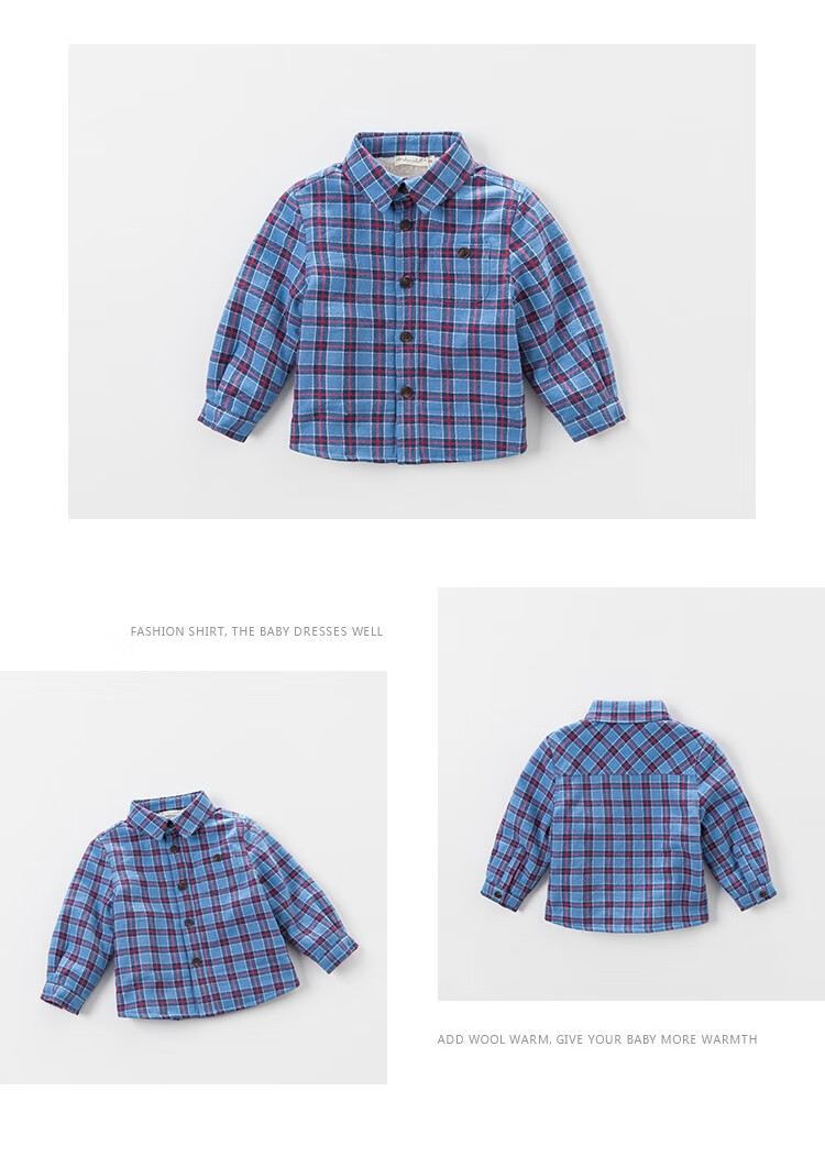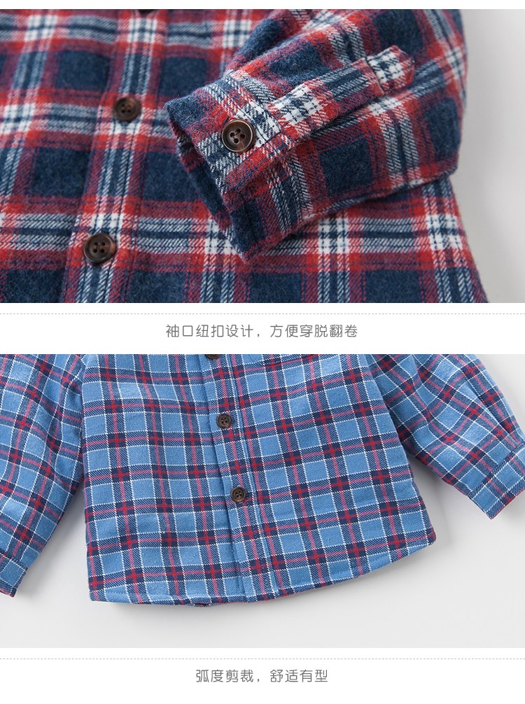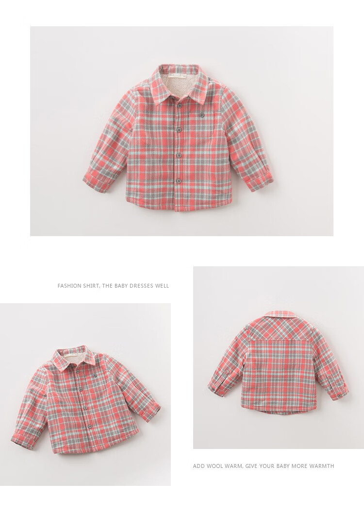 DAVE&BELLA velvet plaid girls' shirts children's shirts boys' long-sleeved tops autumn and winter bottoming shirts baby winter middle and large children red plaid 110 cm (5Y (recommended height 100-110cm))
