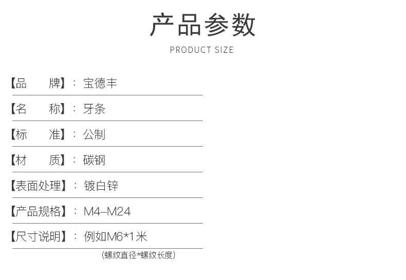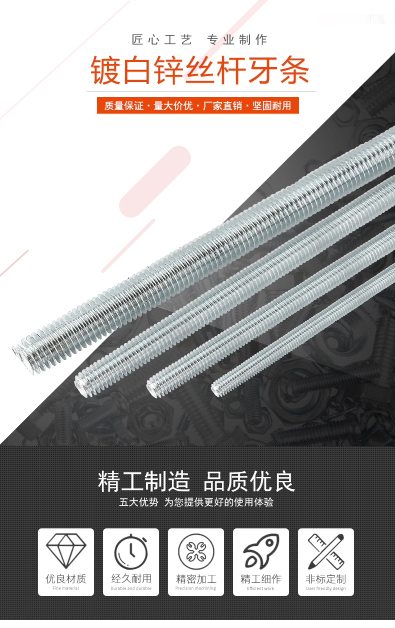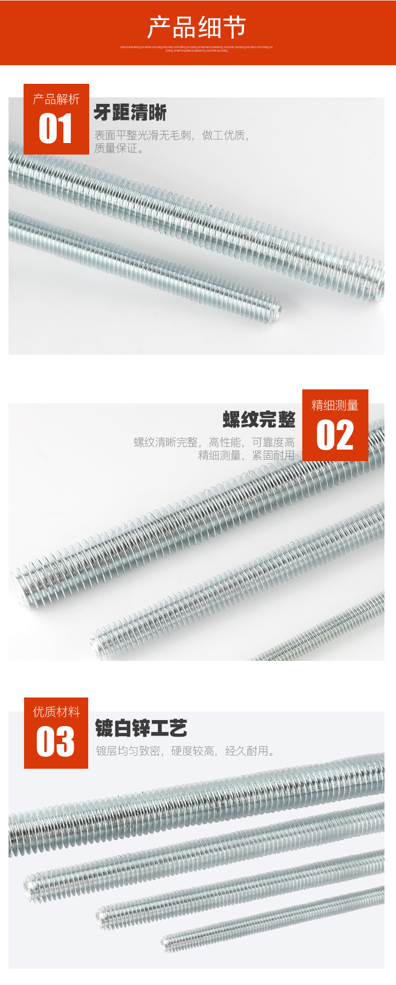 Baodefeng white zinc plated screw rod 1 meter through wire full thread screw full thread screw thread stud iron galvanized screw rod factory standard M4 1 meter 5 strips