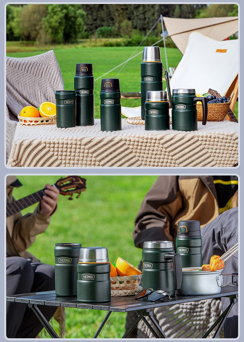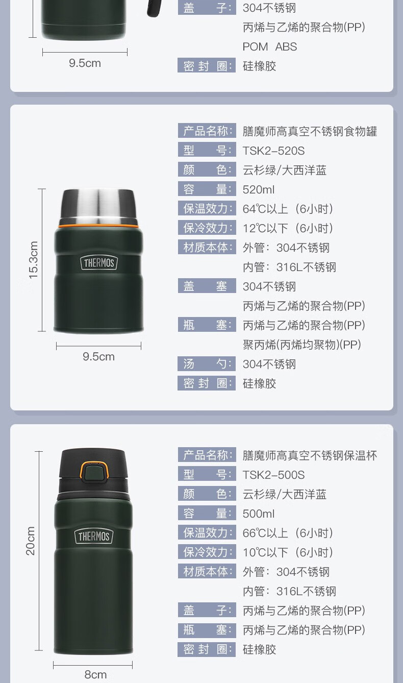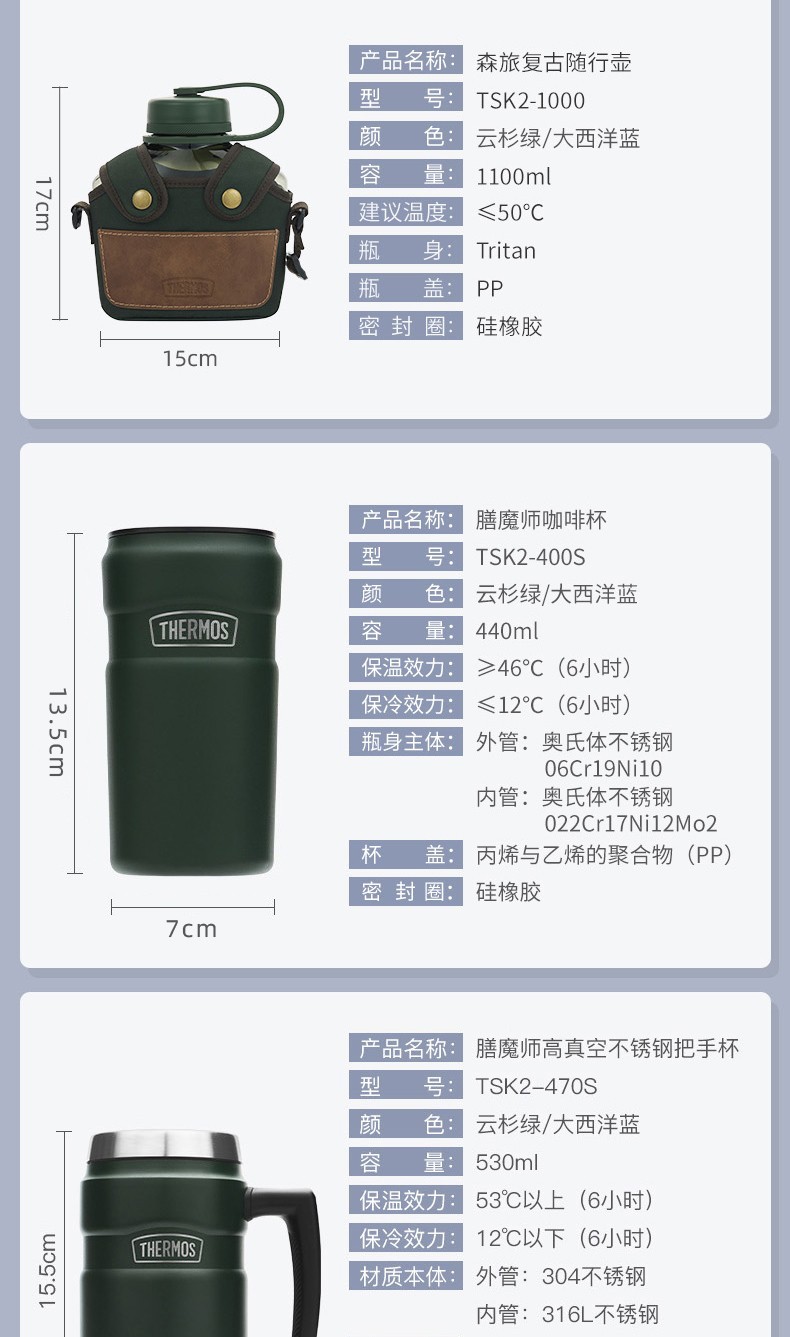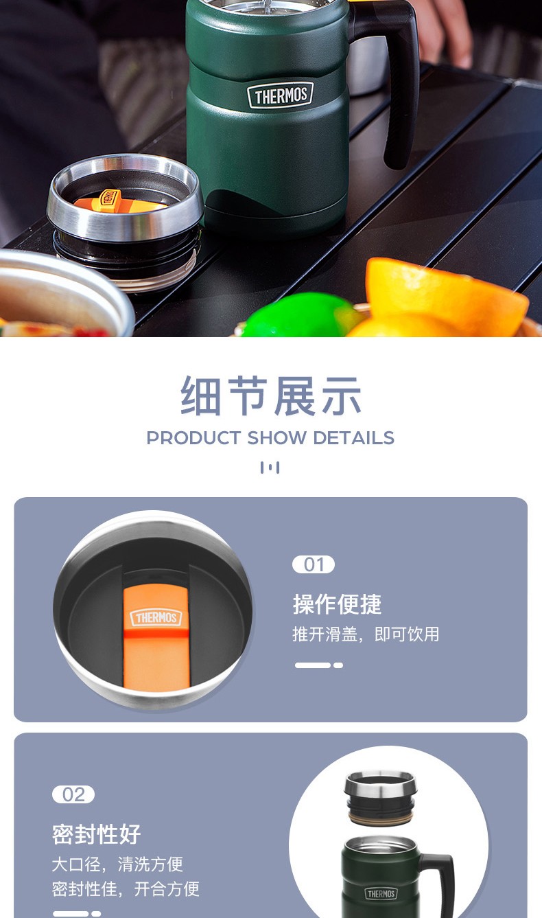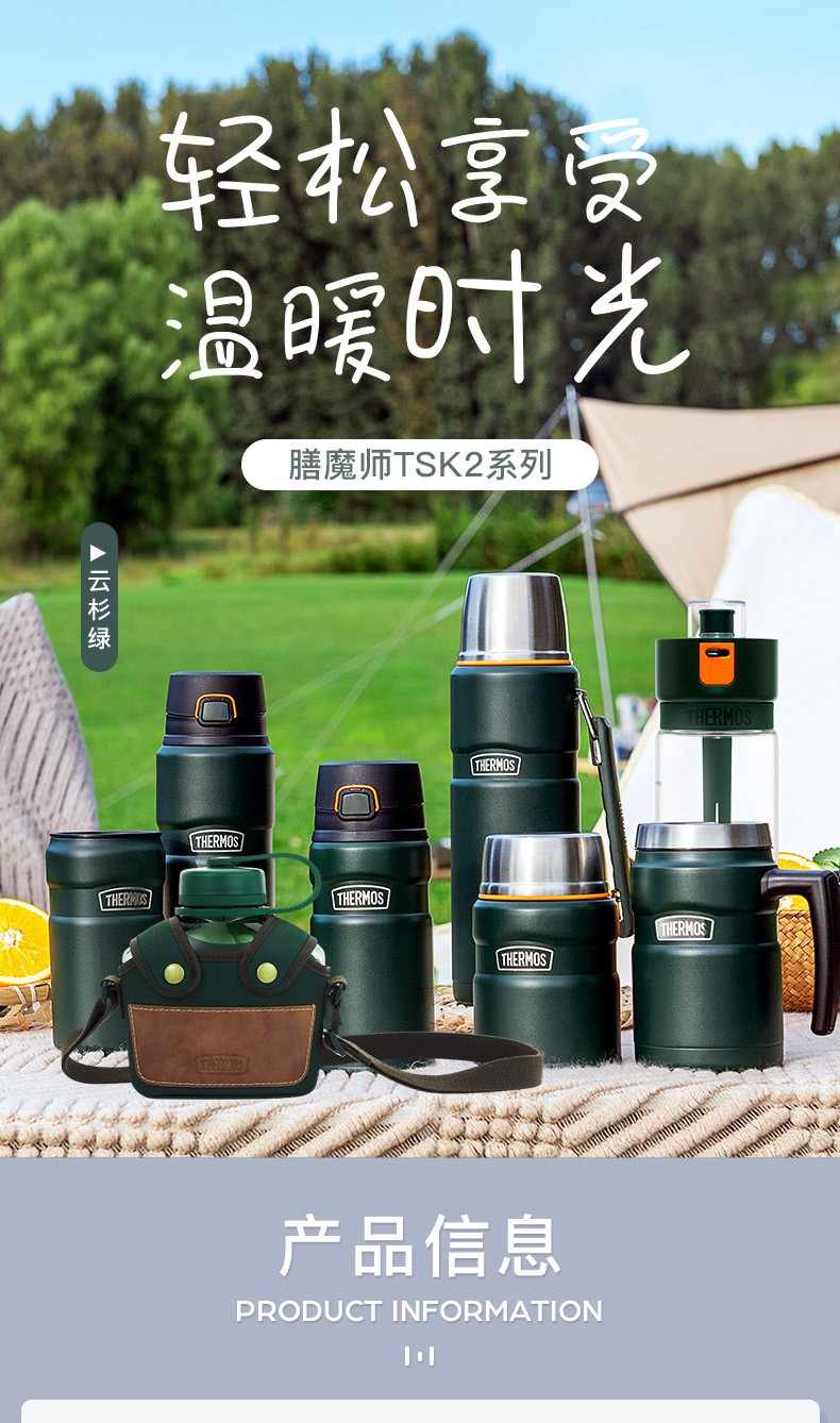 THERMOS thermos cup for men and women, stainless steel portable water cup, outdoor travel car large capacity camping cup TSK2 series Atlantic blue stew pot 520ml