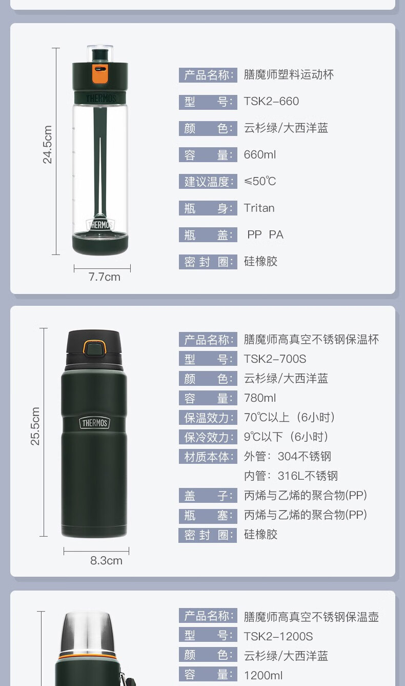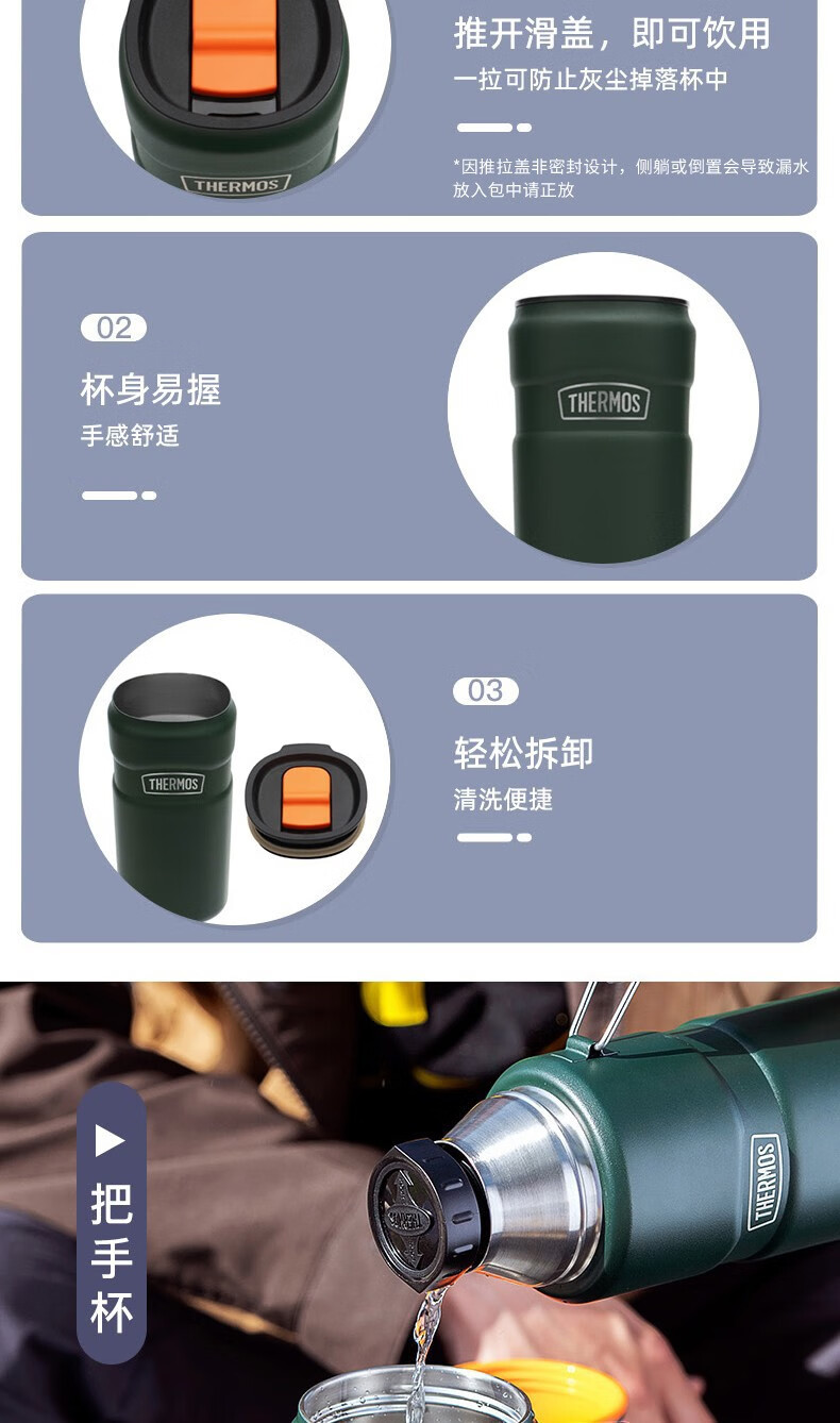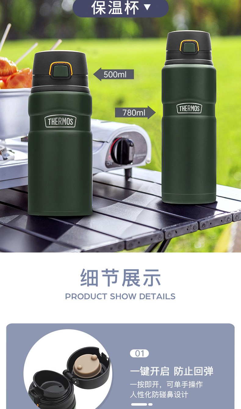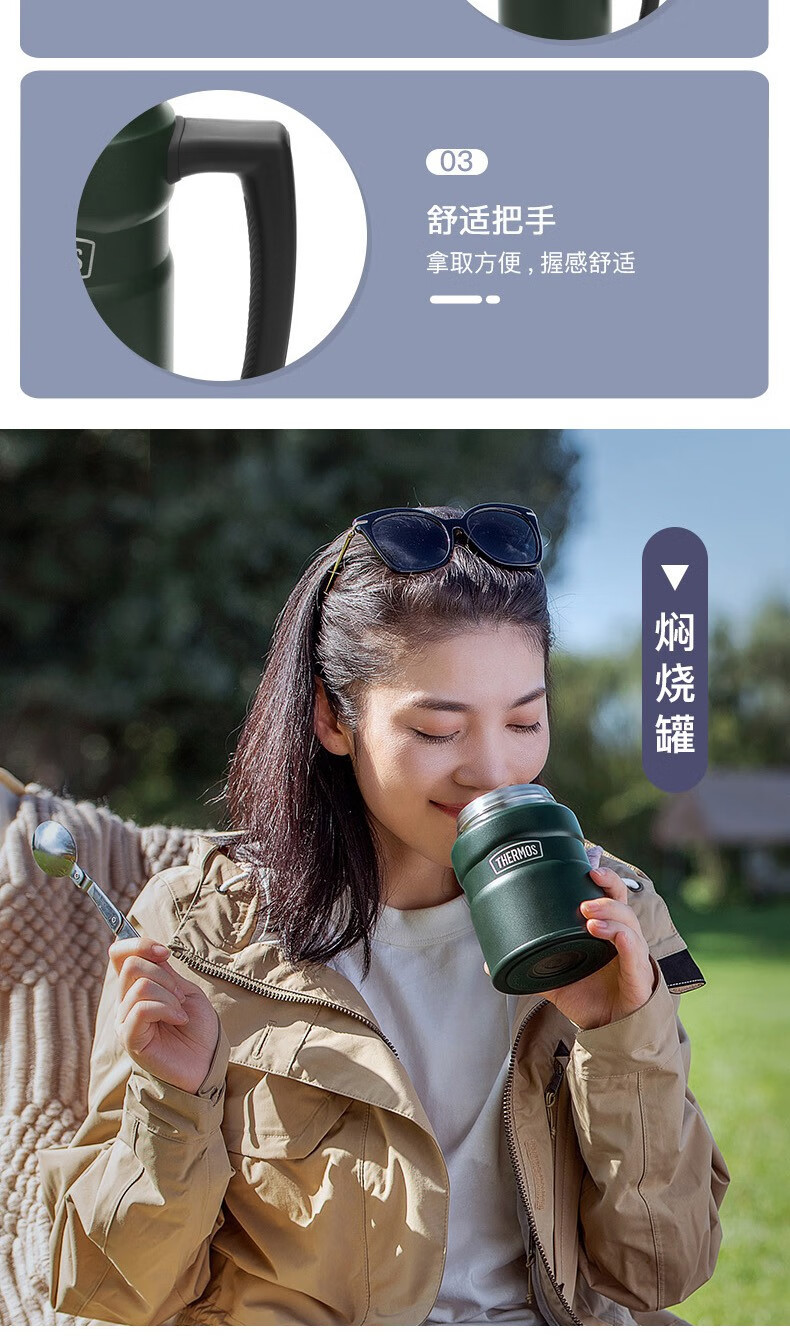 THERMOS thermos cup for men and women, stainless steel portable water cup, outdoor travel car large capacity camping cup TSK2 series Atlantic blue stew pot 520ml