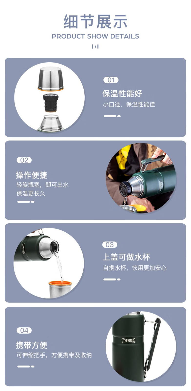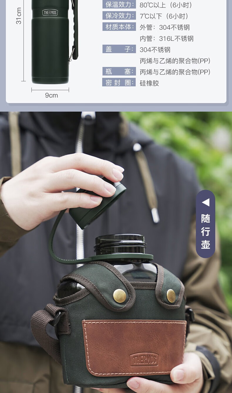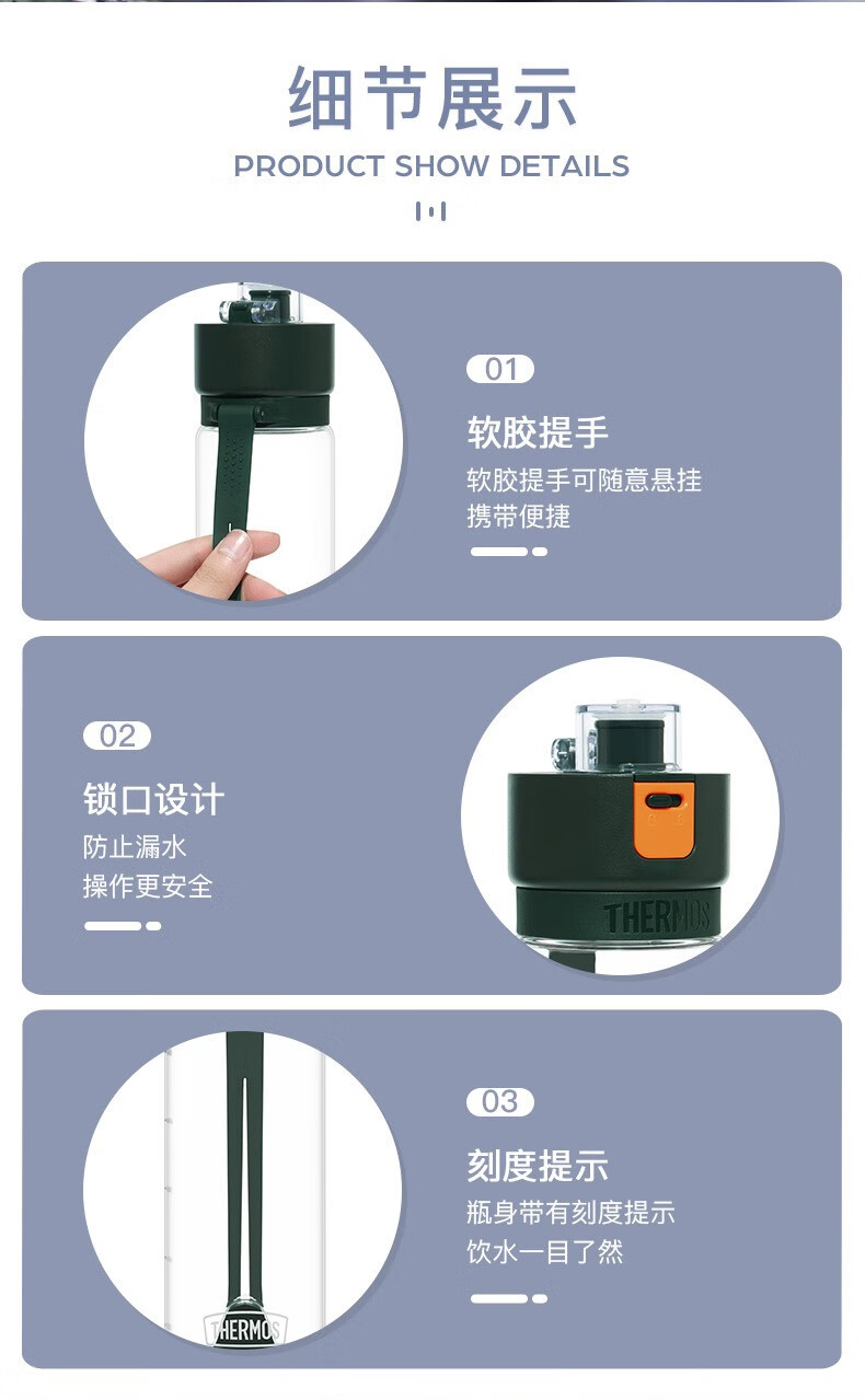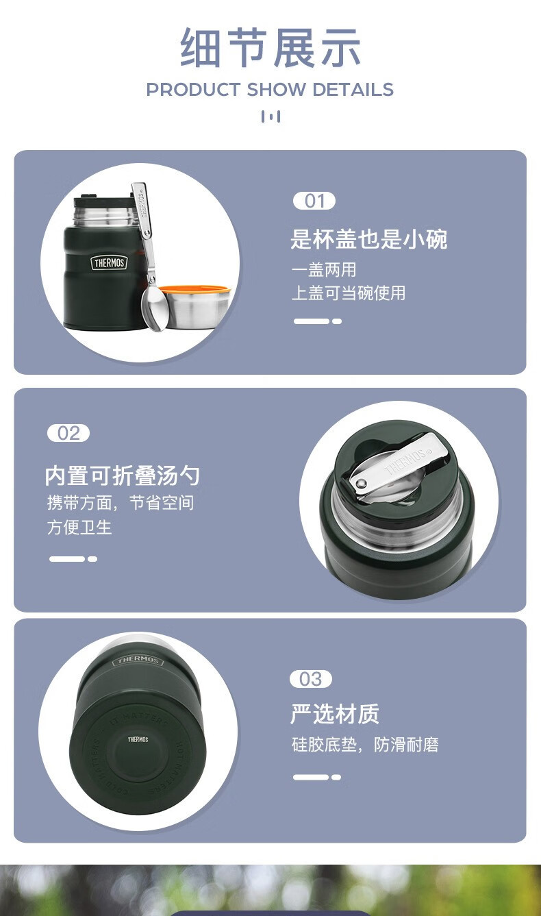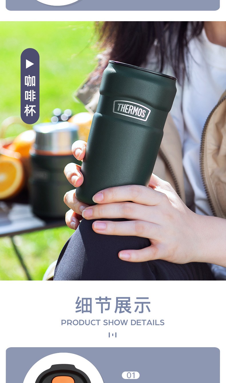 THERMOS thermos cup for men and women, stainless steel portable water cup, outdoor travel car large capacity camping cup TSK2 series Atlantic blue stew pot 520ml