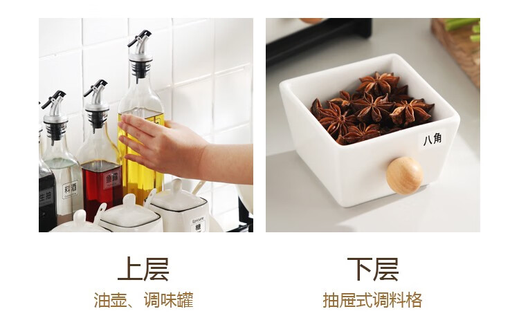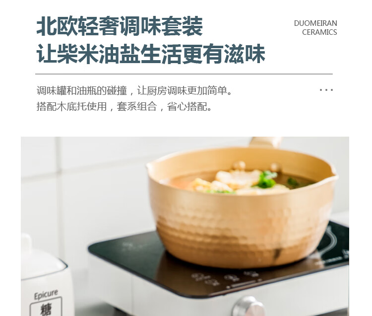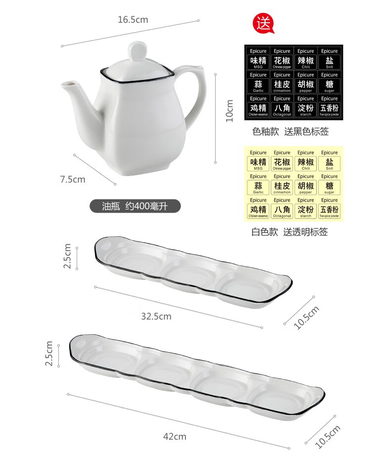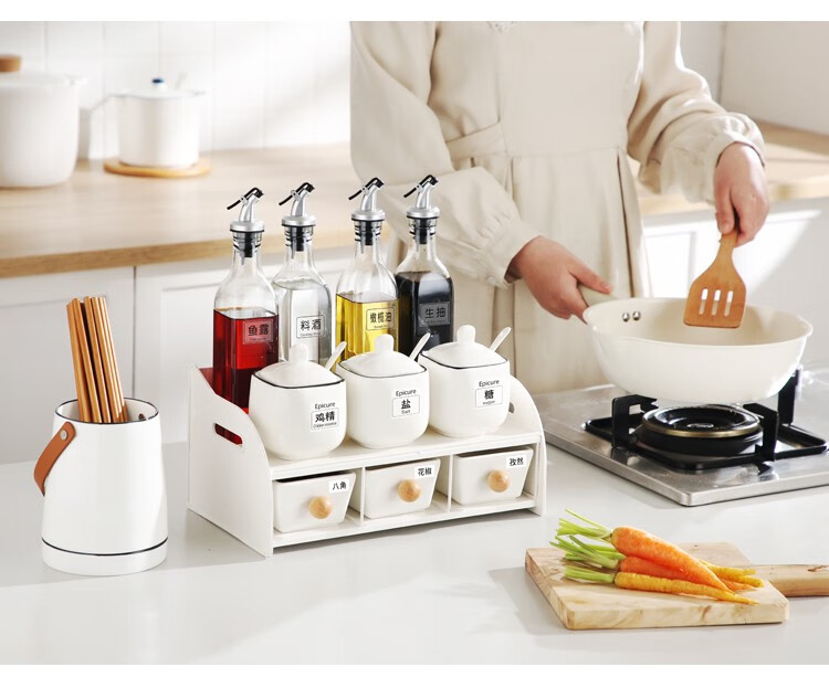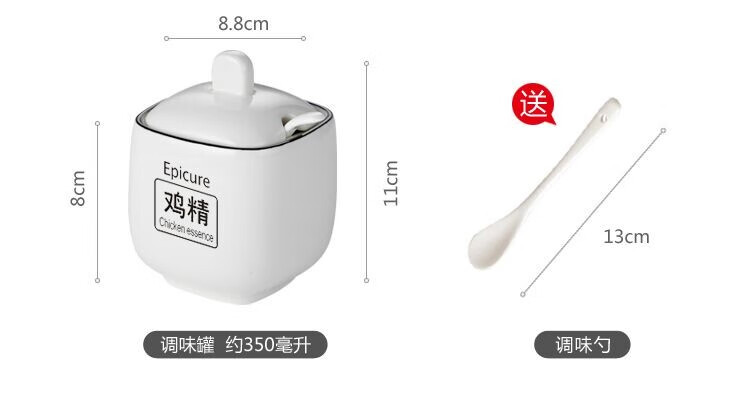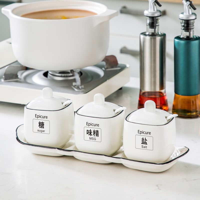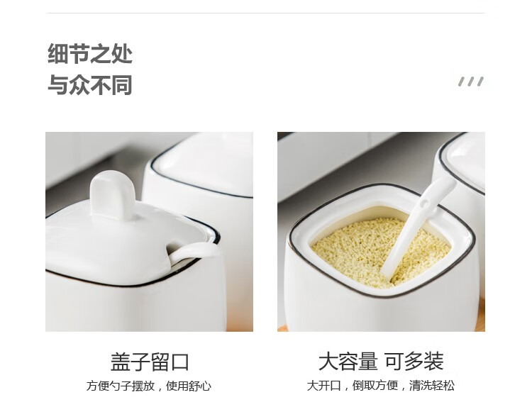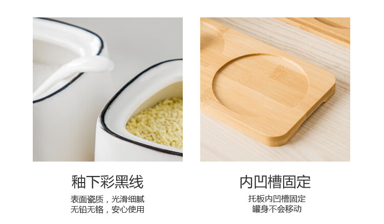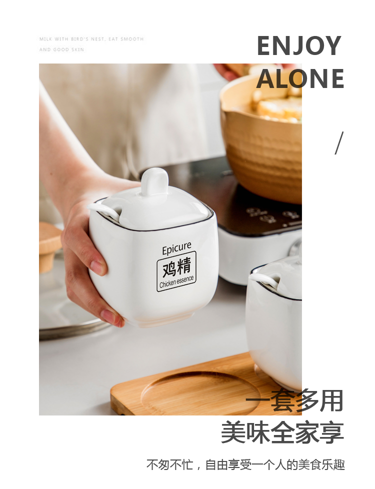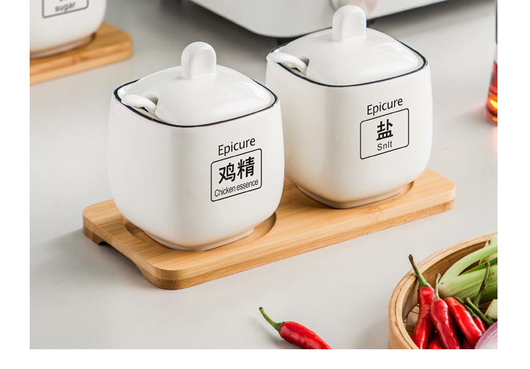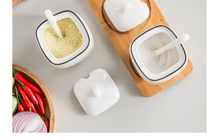 Duo Meiran household white ceramic seasoning jar seasoning combination set seasoning box kitchen seasoning jar salt shaker seasoning bottle jar 2 black line white jars - with wooden board