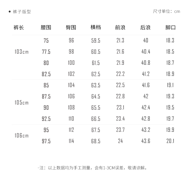 Outseam (cm) 99 cm 101.5 cm 104 cm 106.5 cm 109 cm