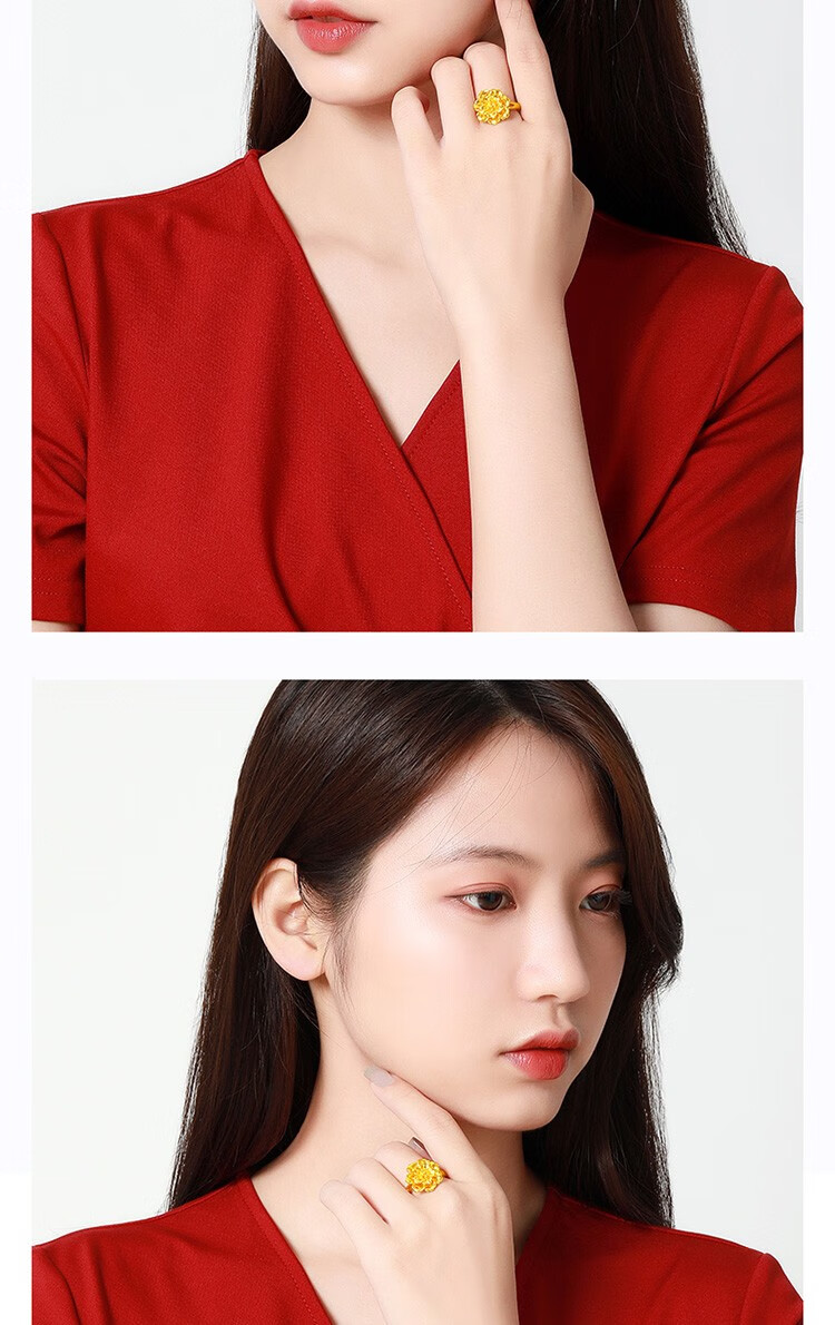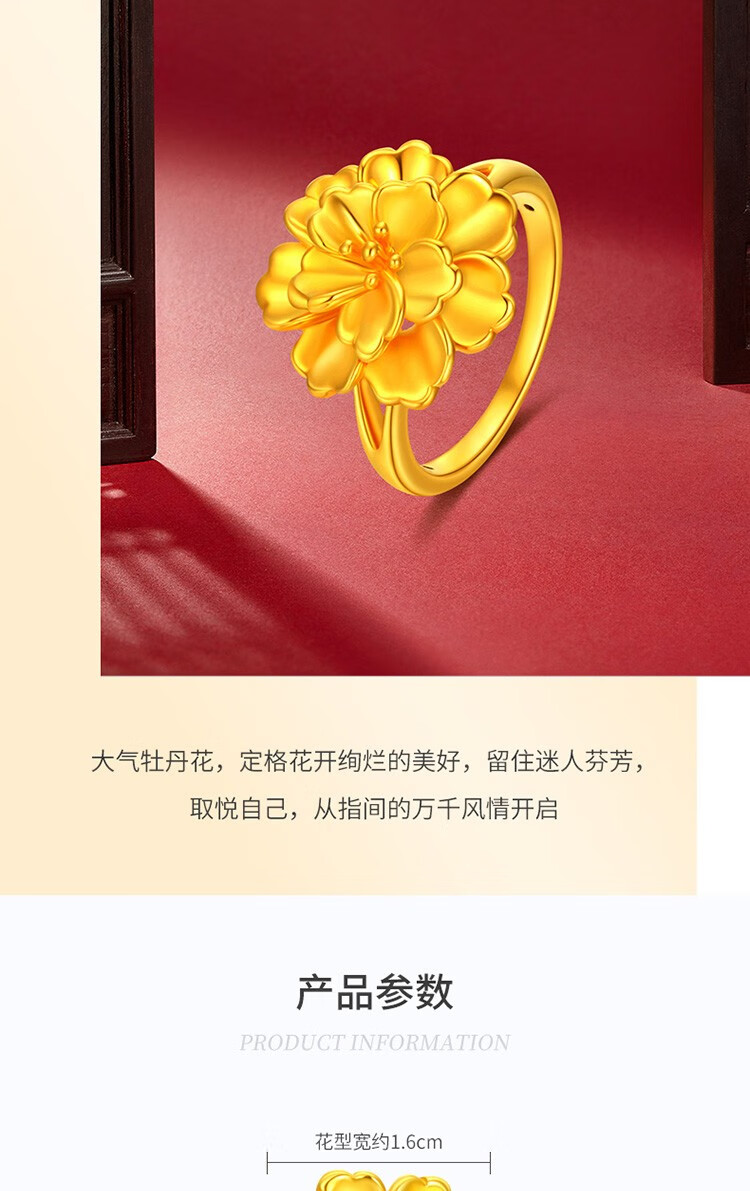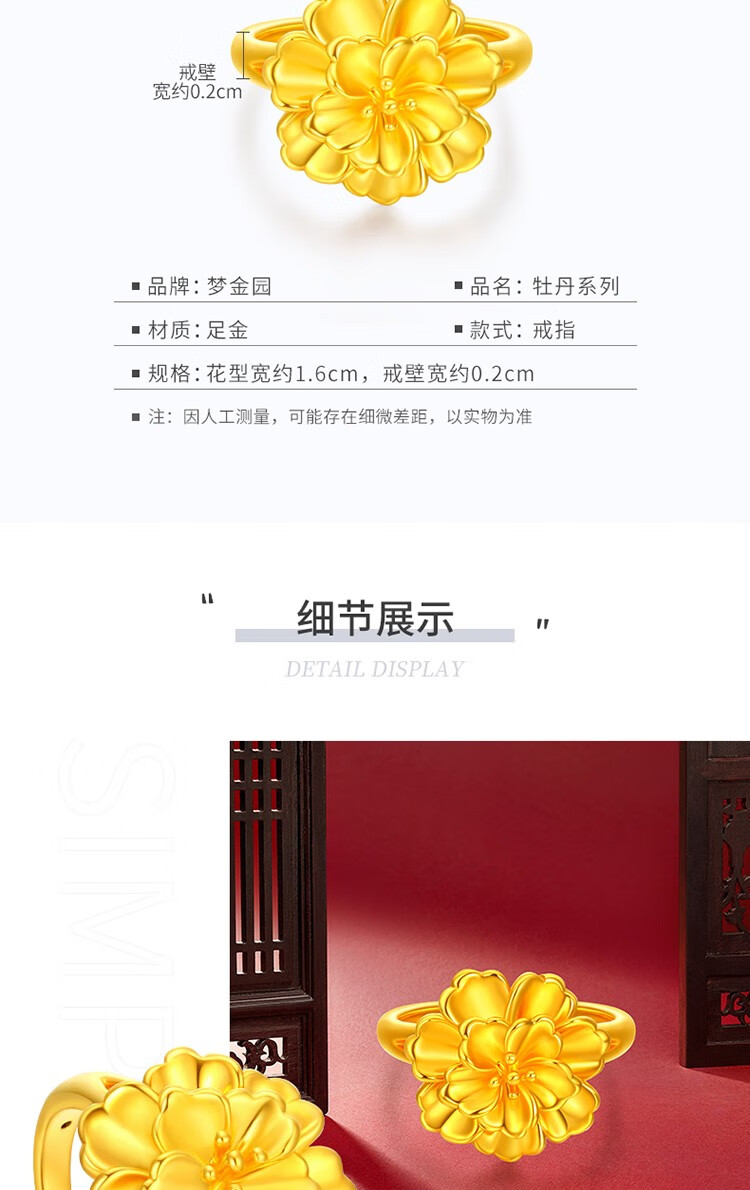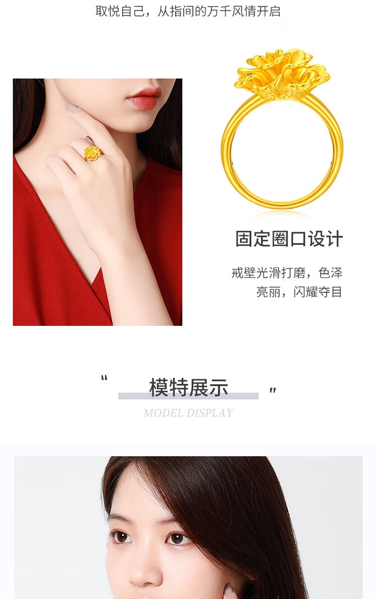 Mengjinyuan Gold Ring for Women 5D Hard Gold Pure Gold Peony Flower Ring for Women for Wife and Girlfriend No. 16 Circle Approximately 1.35g