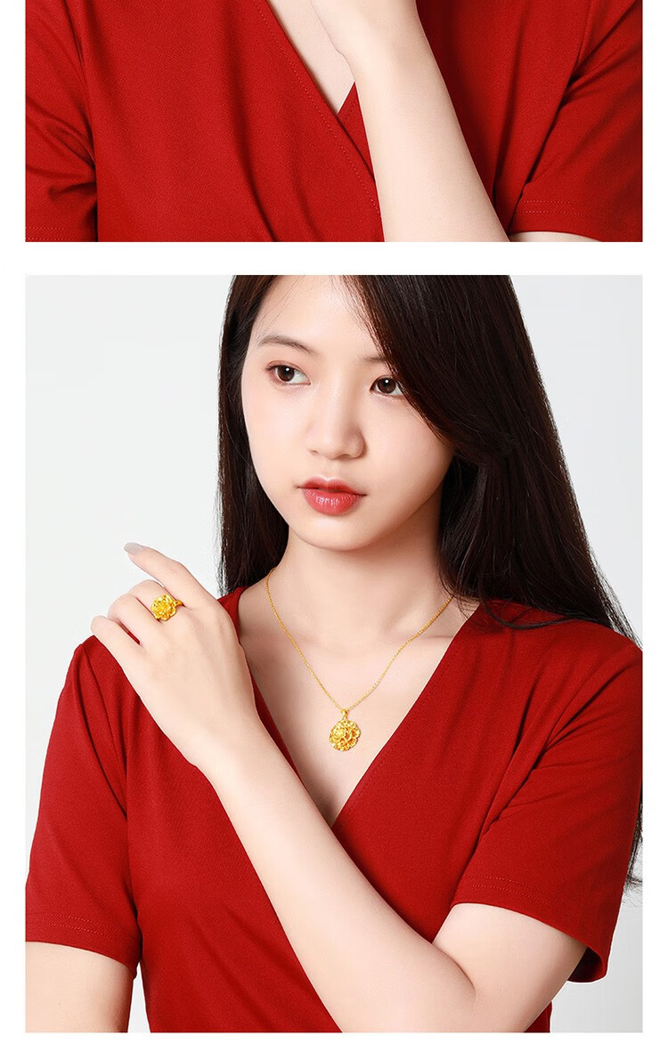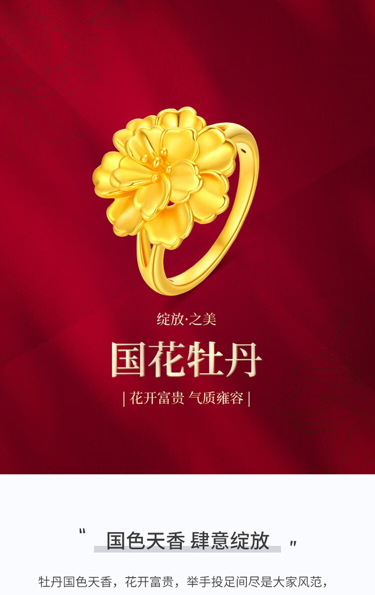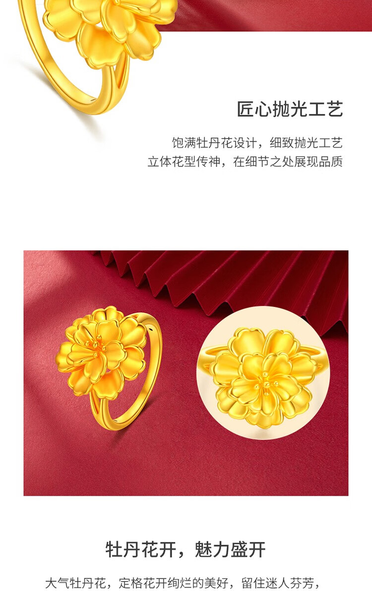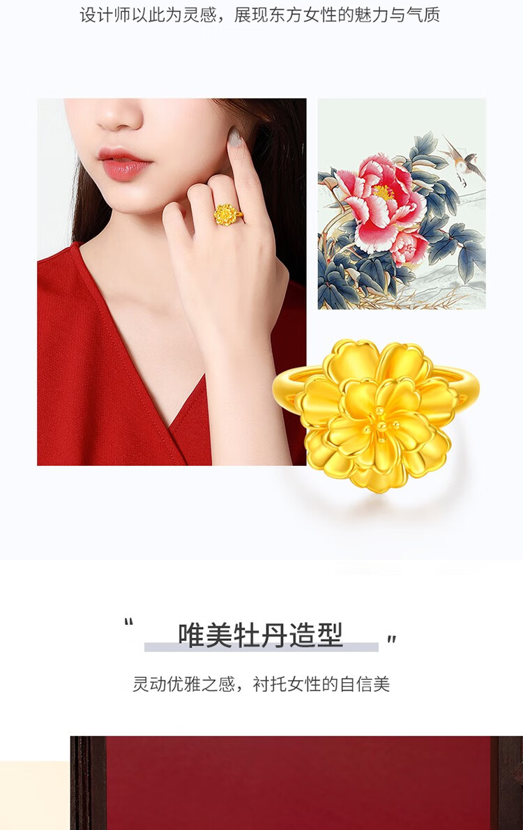 Mengjinyuan Gold Ring for Women 5D Hard Gold Pure Gold Peony Flower Ring for Women for Wife and Girlfriend No. 16 Circle Approximately 1.35g