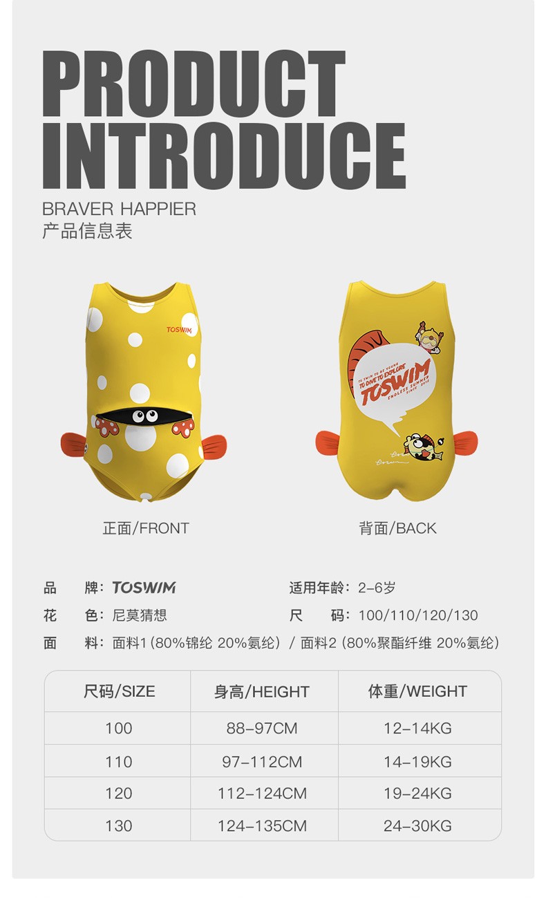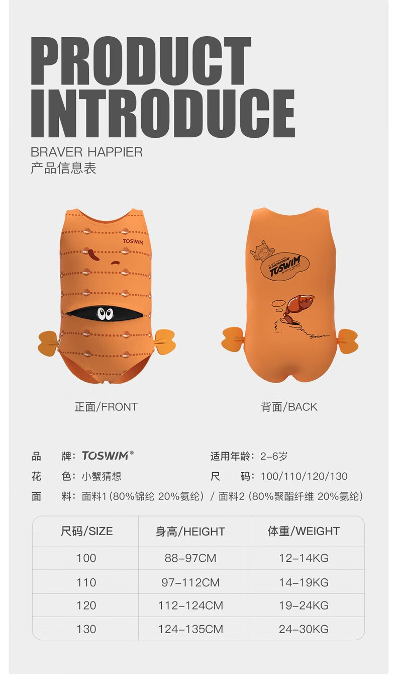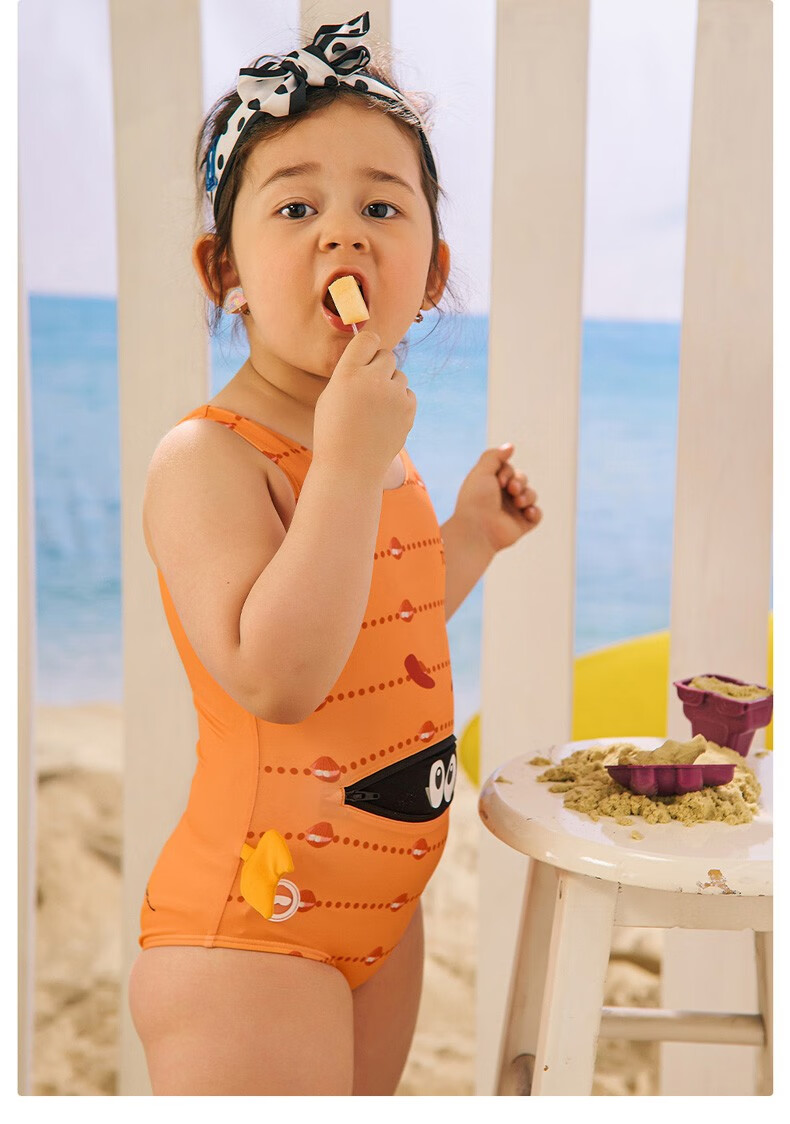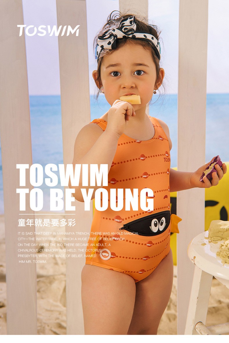 TOSWIM children's swimsuit one-piece girl's small and medium-sized swimsuit cute quick-drying sunscreen summer new style Little Crab Guess 120CM