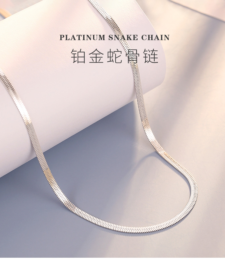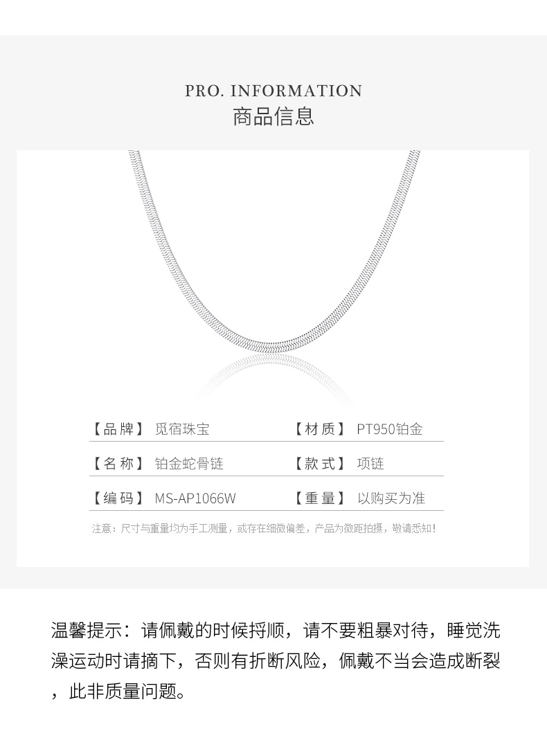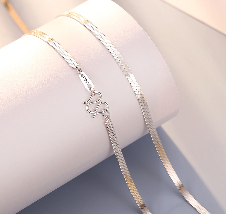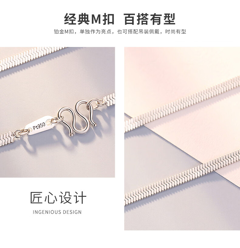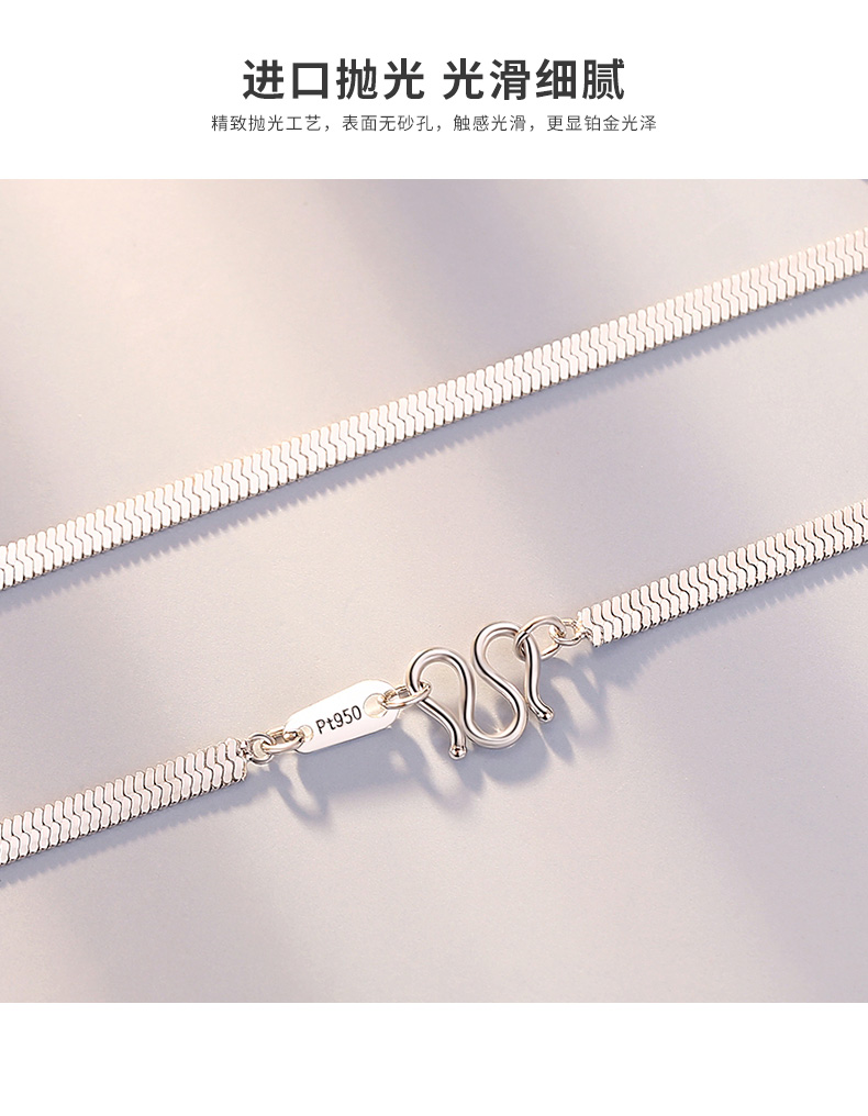 Misu platinum shiny snakeskin necklace for men and women PT950 platinum blade snake bone chain flat clavicle chain birthday 6.0-6.2g length 38cm width 2.1mmM buckle