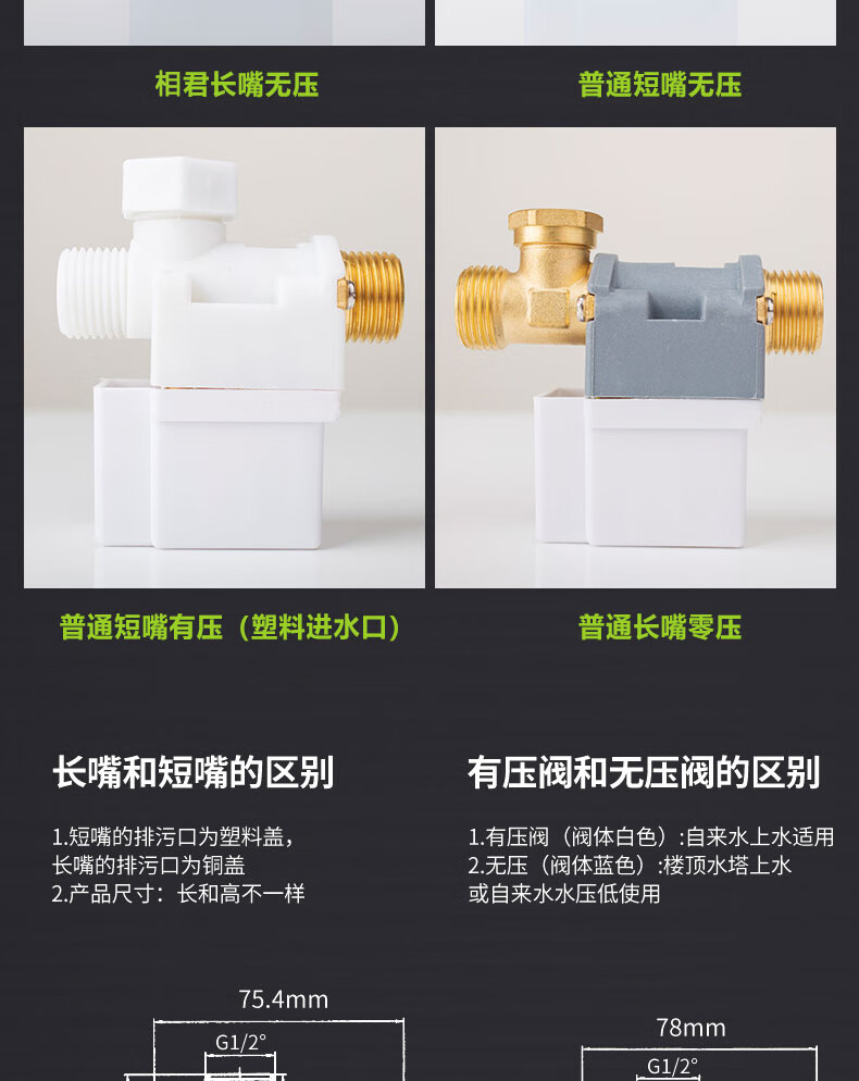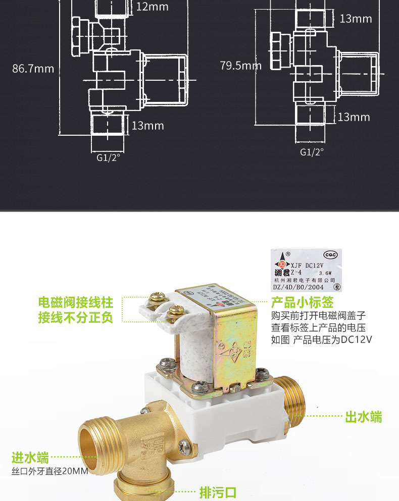 Solar solenoid water inlet valve 12V universal accessories automatic water supply control valve water heater Xiangjun solenoid valve universal pressure solenoid valve (long mouth anti-freeze type)