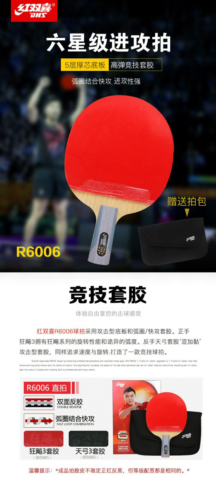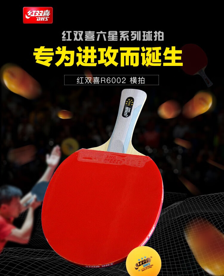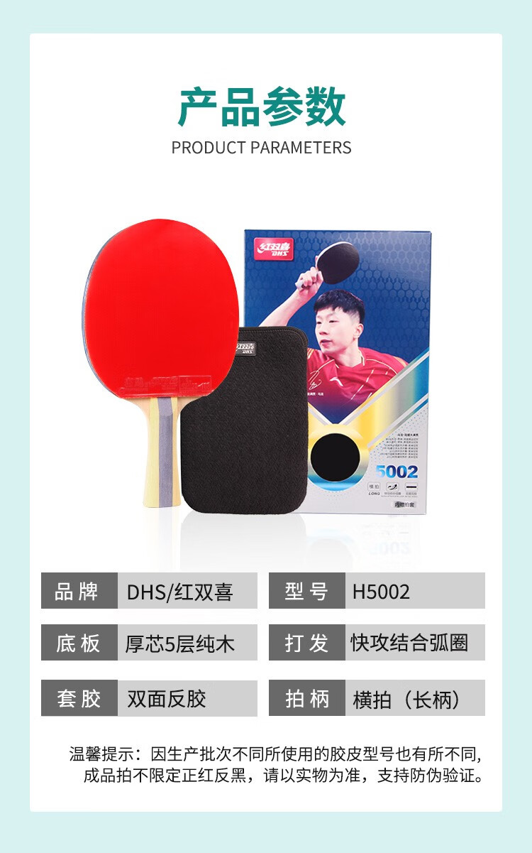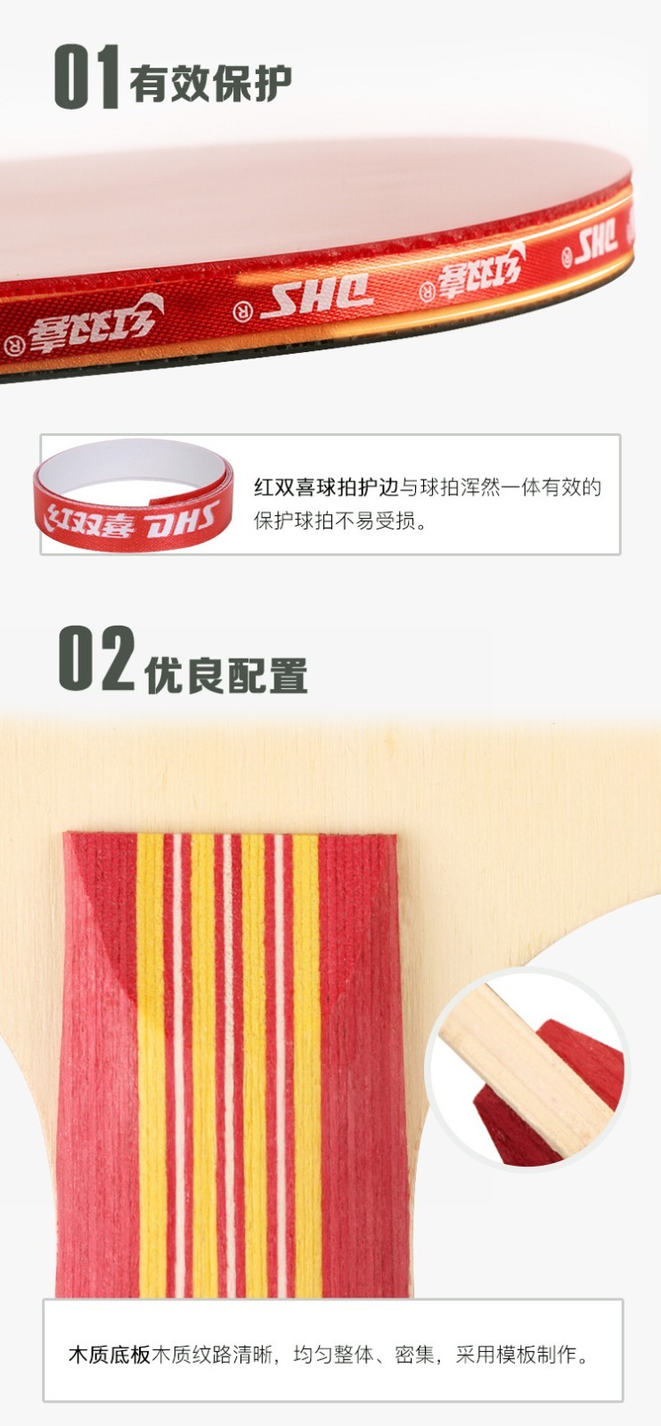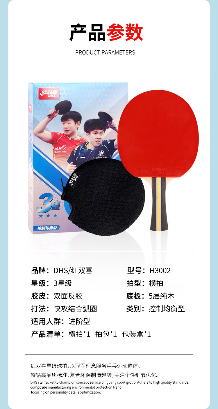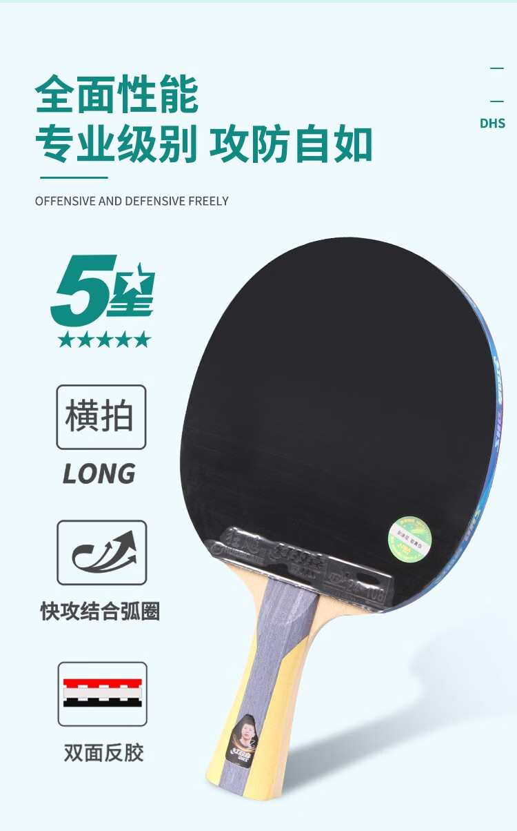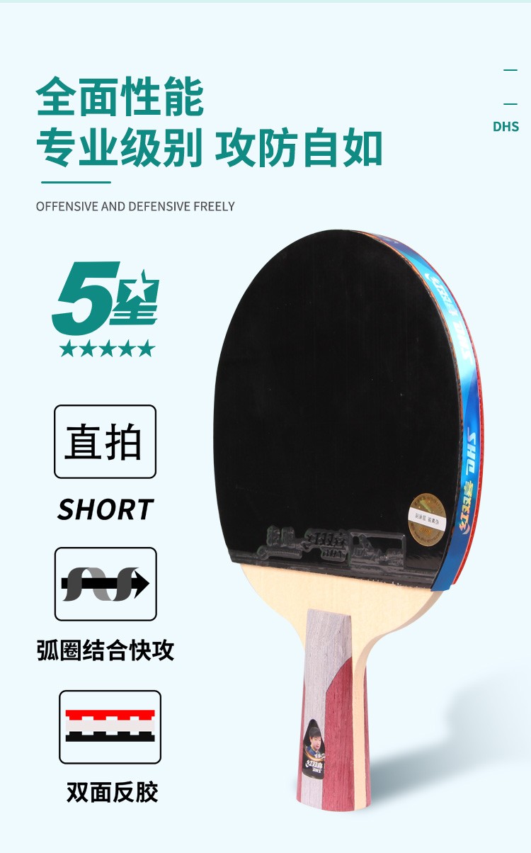 Double Happiness (DHS) table tennis racket 6 stars 5 stars professional grade adults and children horizontal racket straight single racket table tennis finished table tennis racket Samsung horizontal racket H3002