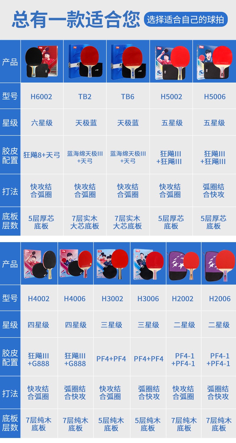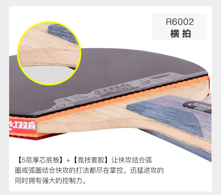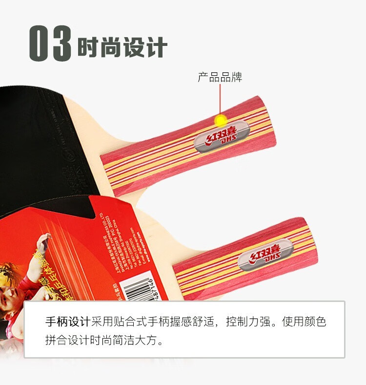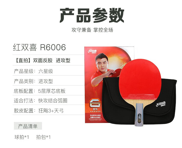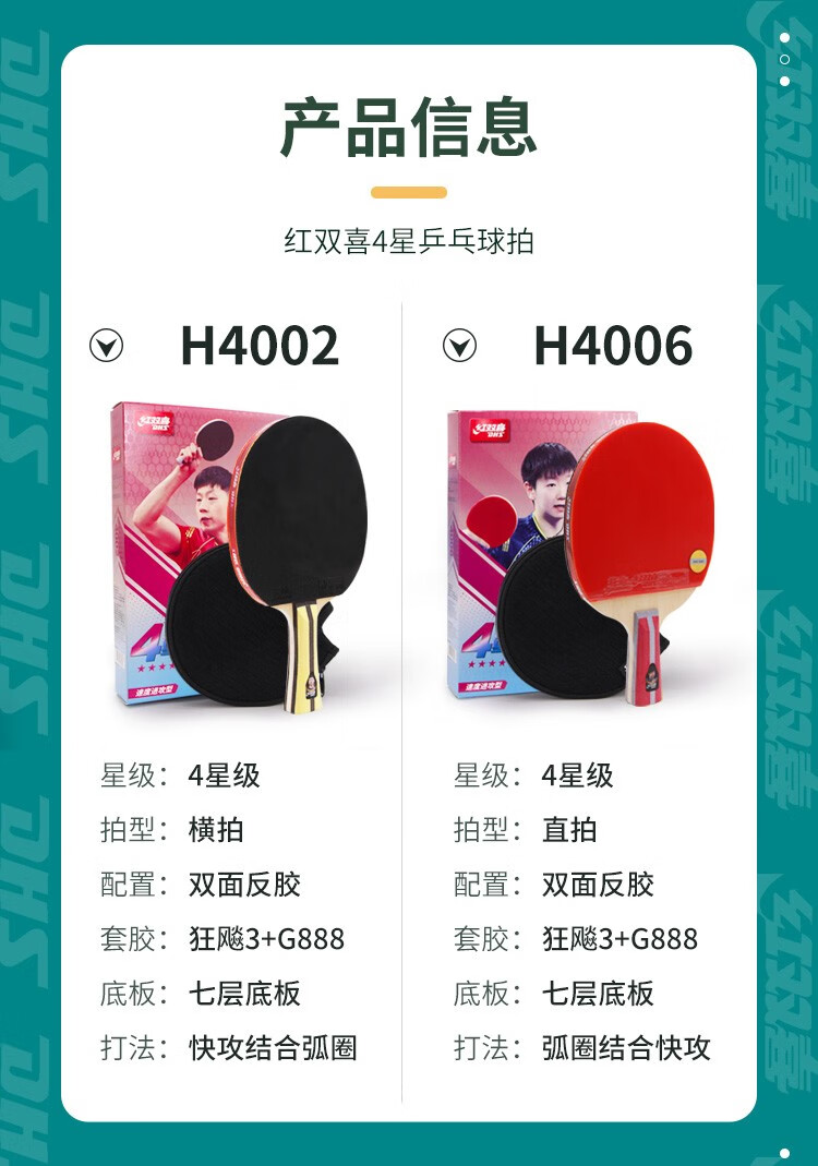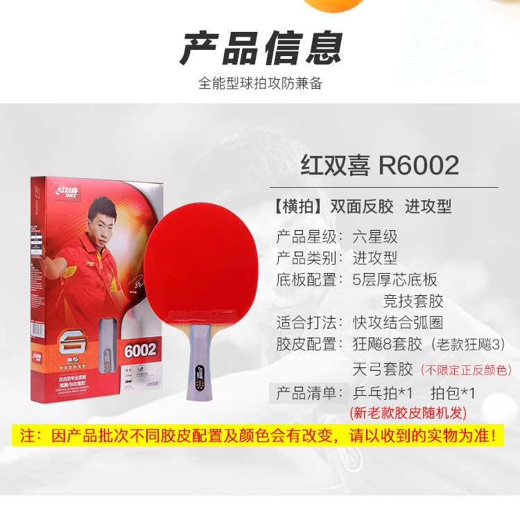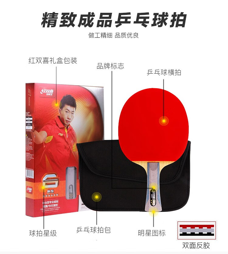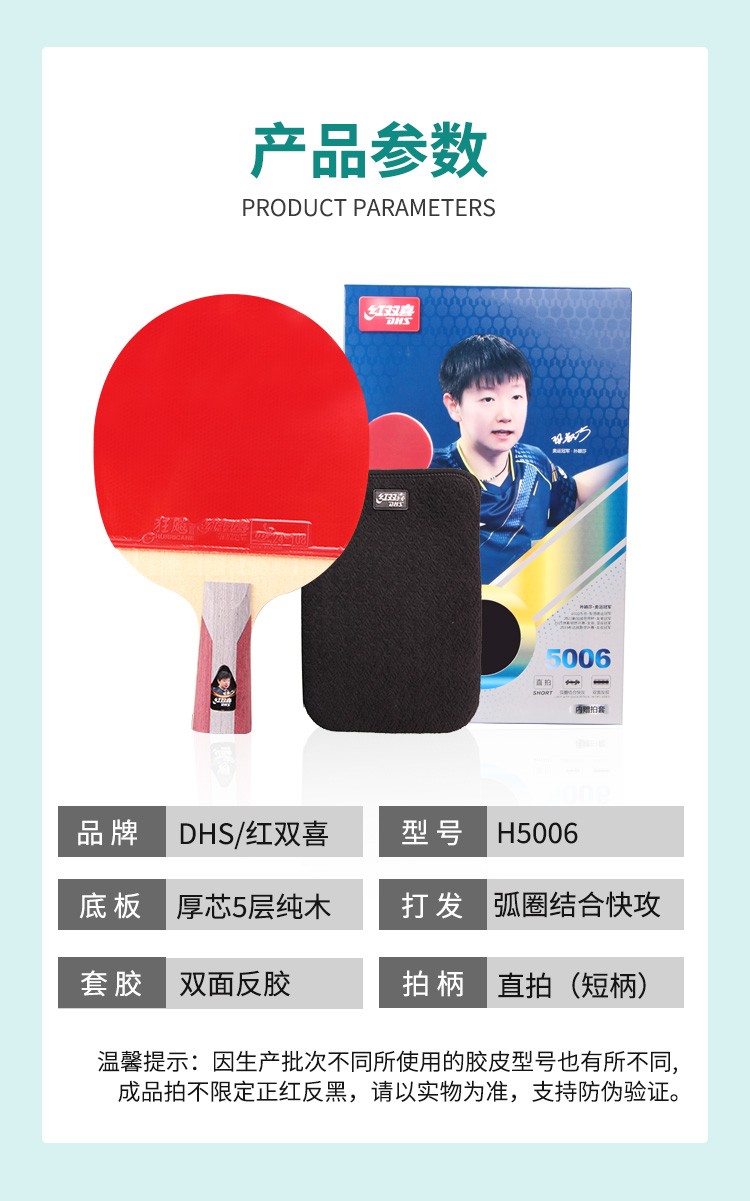 Double Happiness (DHS) table tennis racket 6 stars 5 stars professional grade adults and children horizontal racket straight single racket table tennis finished table tennis racket Samsung horizontal racket H3002