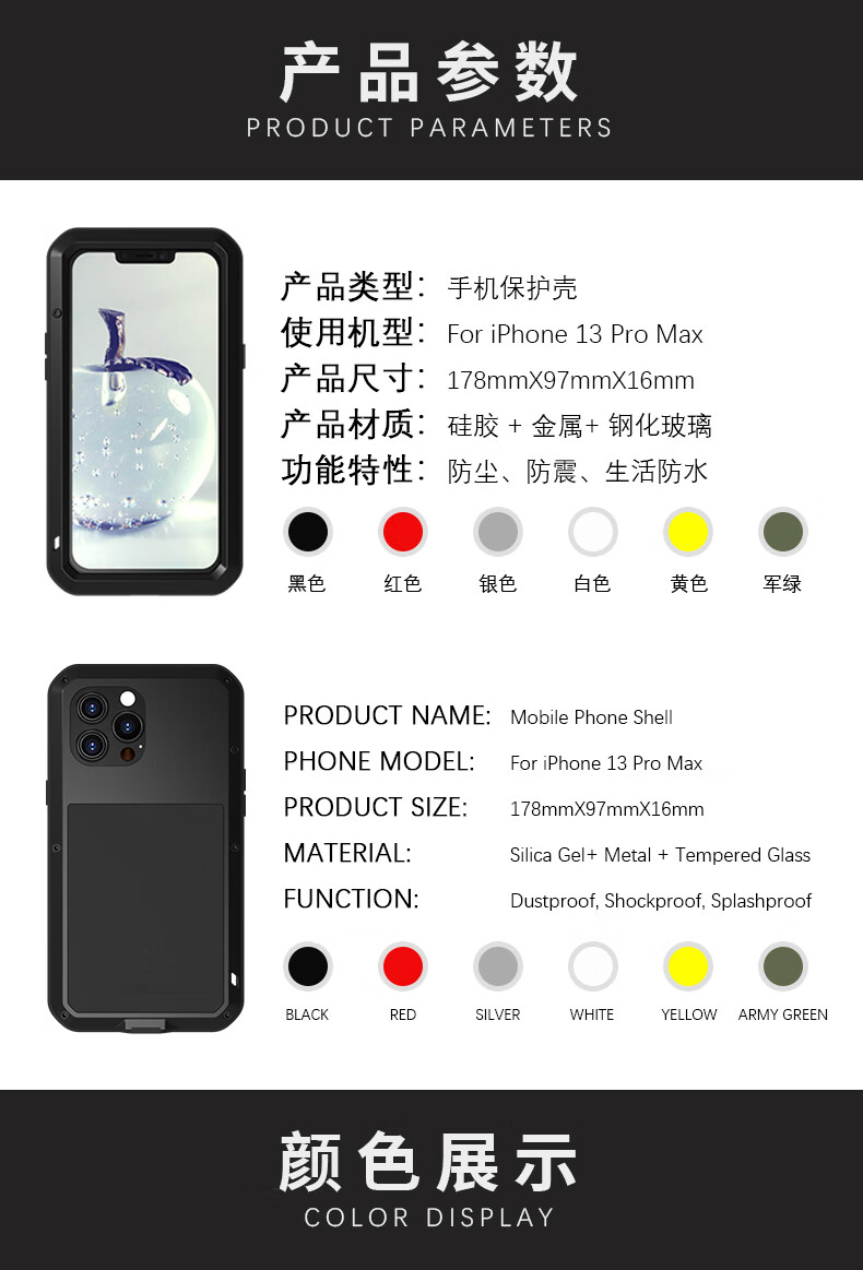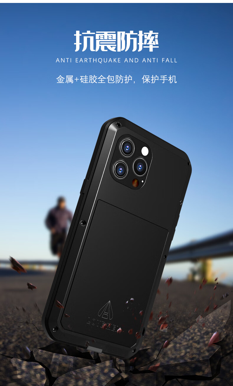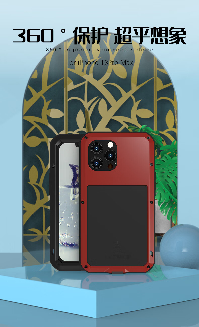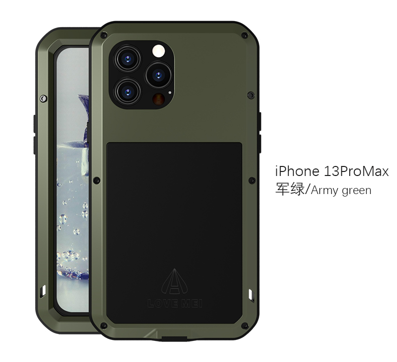 Lovemei iPhone13ProMax three-proof mobile phone case Apple 13Pro shatterproof screen all-inclusive anti-fall comes with dust plug iphone13Pro Max military green three-proof metal case