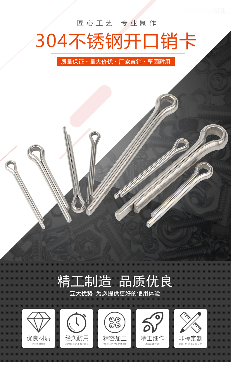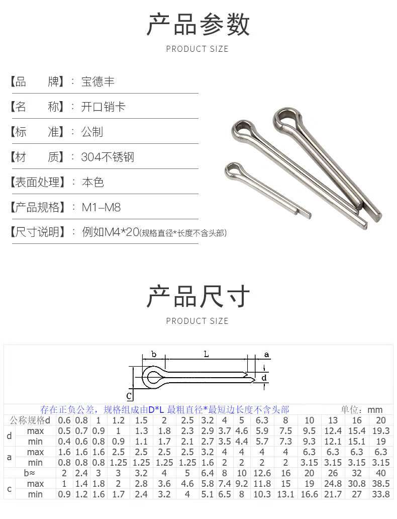 Baodefeng 304 stainless steel split pin bayonet positioning pin hairpin pin U-shaped pin steel latch sub-national standard standard parts M2.5X40 50 pieces -304 material