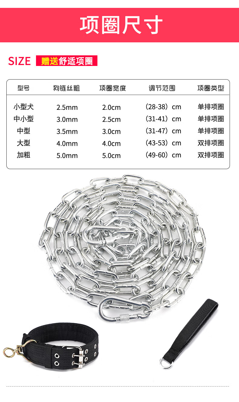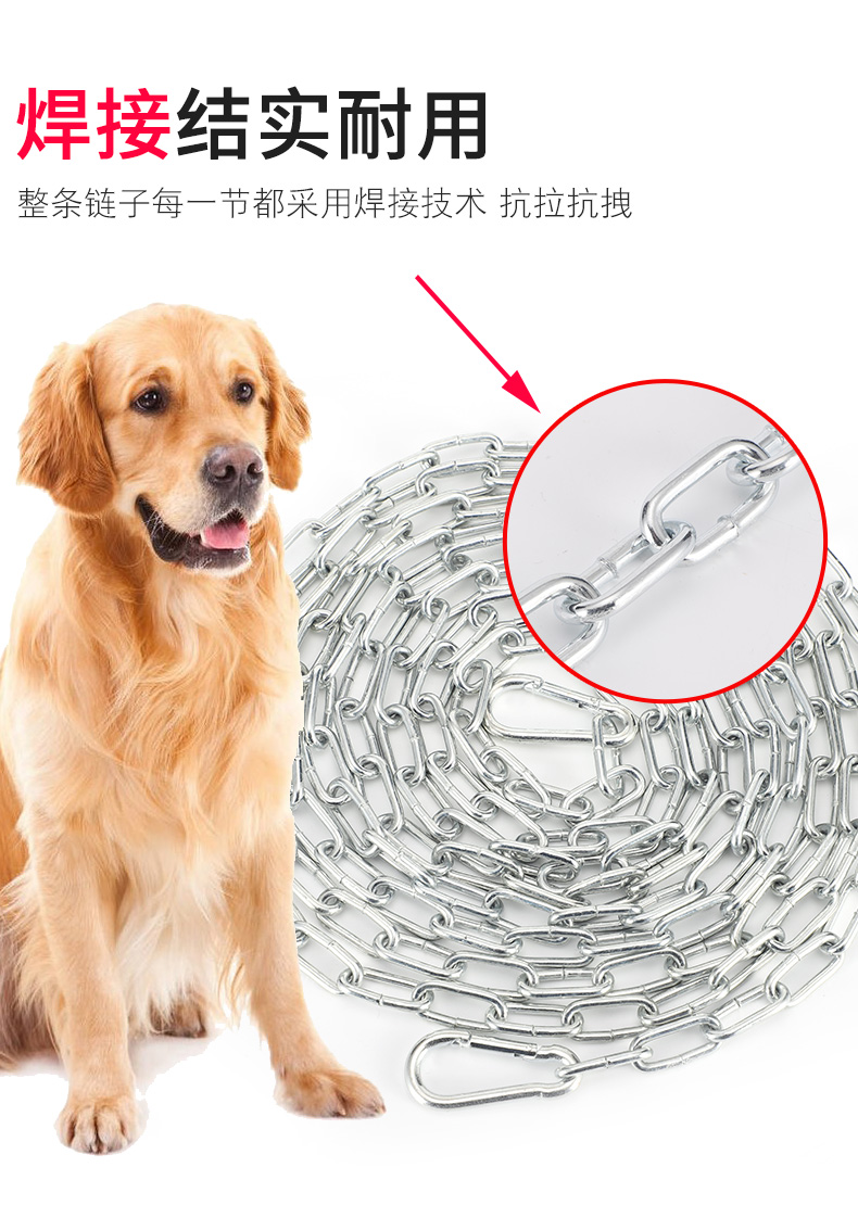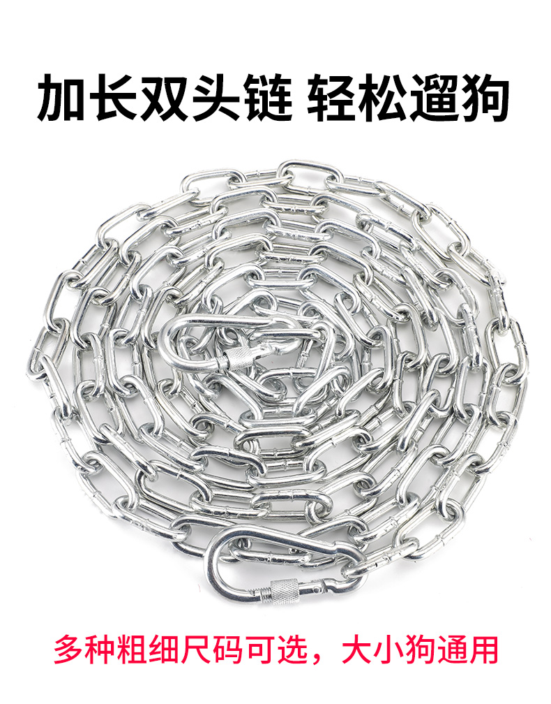 Wanlian double-headed dog chain, medium and large dogs, small dogs, iron chain collar, traction rope, anti-biting dog rope, dog chain, dog walking rope, 3.0mm thick (15-40Jin Jin is equal to 0.5kg), small and medium-sized 1.5 meters
