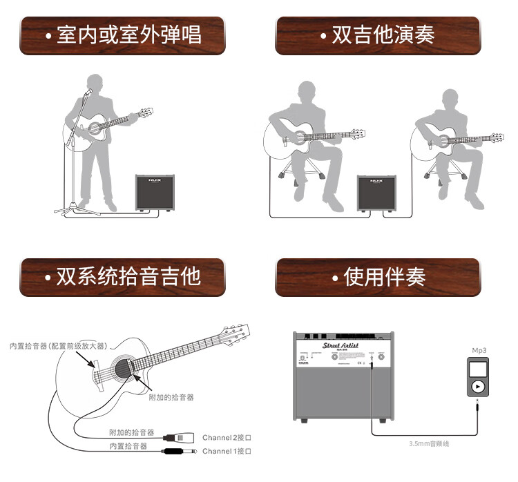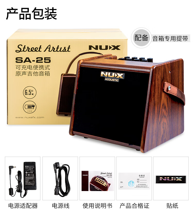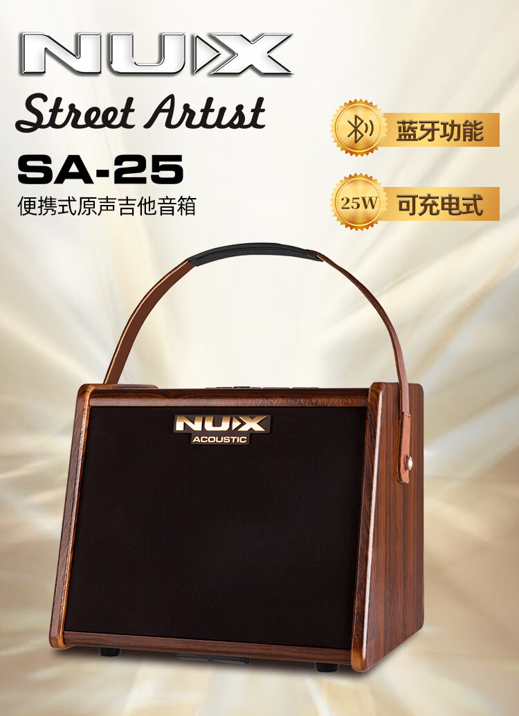 Nux Electric Blowpipe Speaker Erhu Wooden Guitar Electric Box Piano Playing and Singing Bluetooth Charging Speaker Outdoor Portable SA25 SA-25 Brown