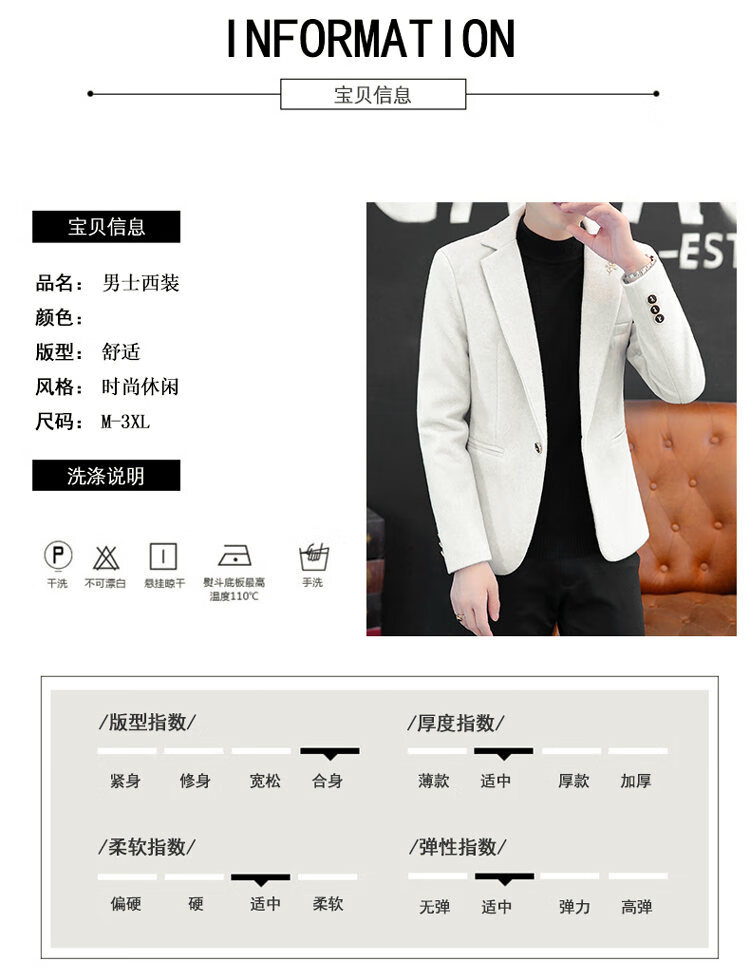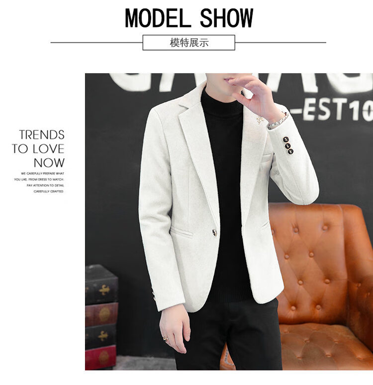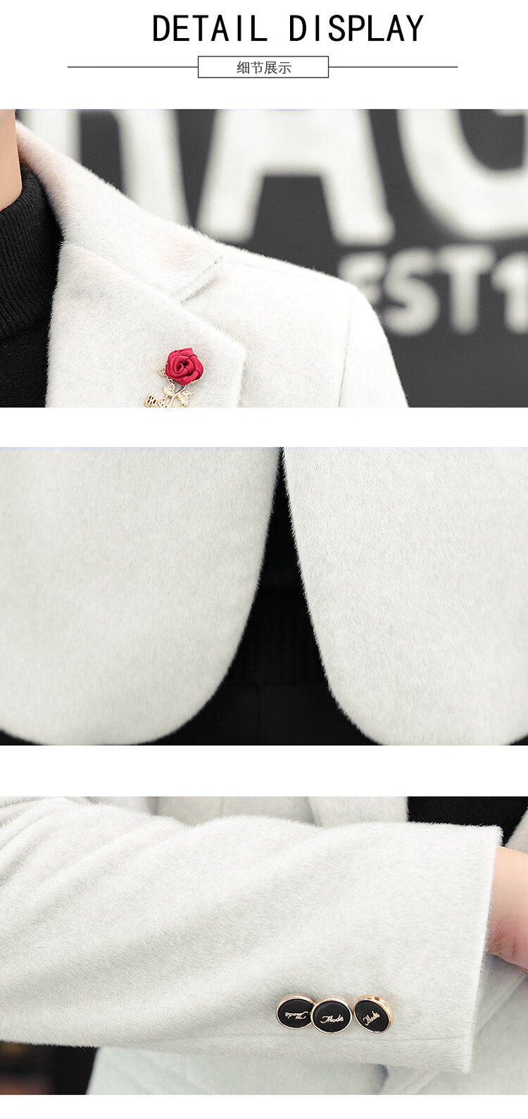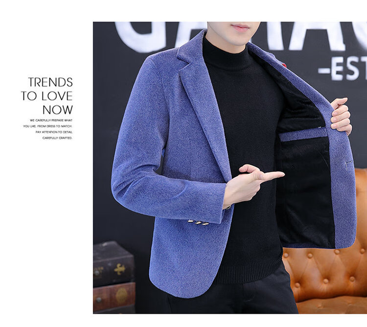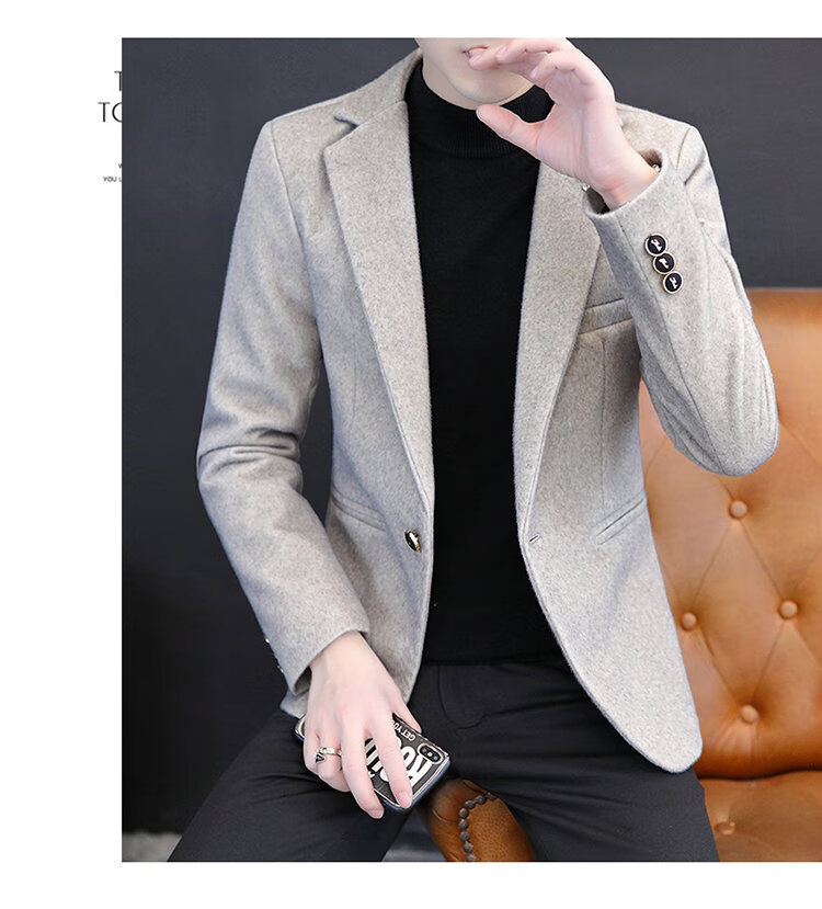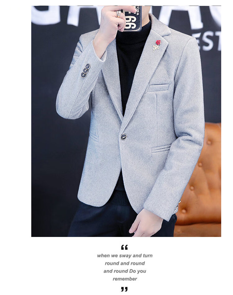 Pierre Cardin autumn and winter velvet solid color small suit men's trendy slim and handsome single suit business casual woolen suit jacket thickened black L