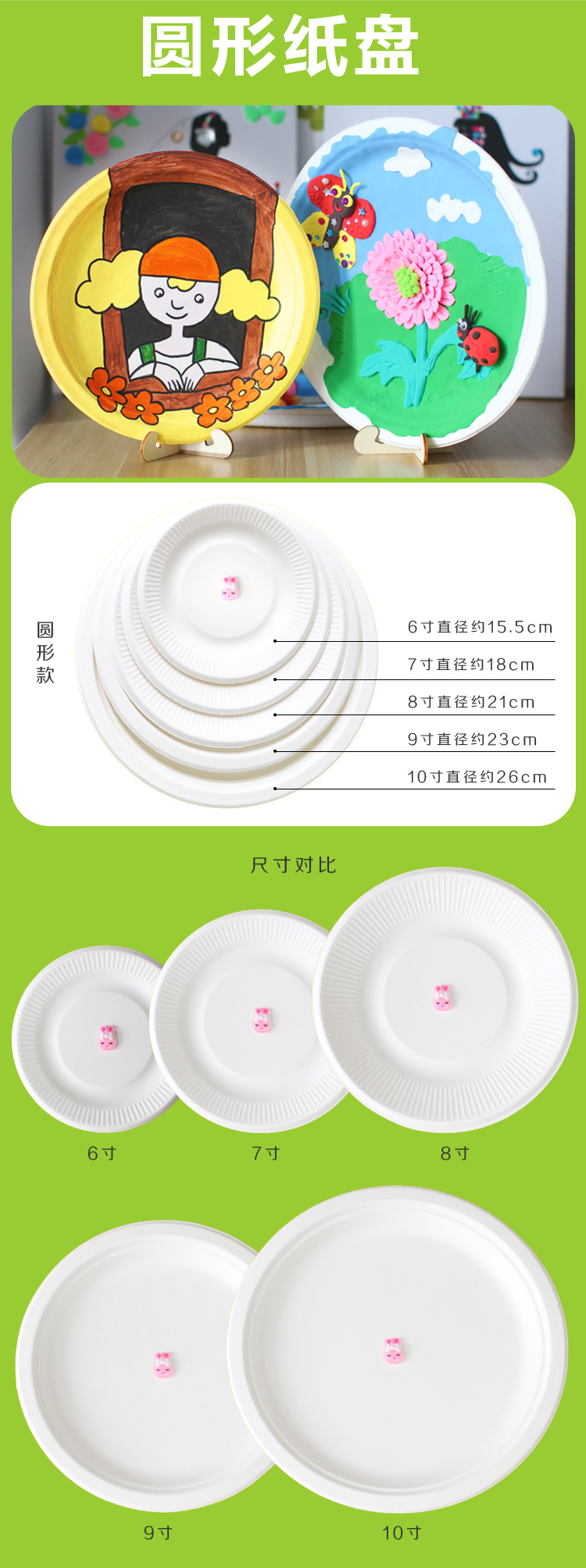 Xubao white paper plate DIY children's art graffiti paper plate painting kindergarten material disposable paper plate cake plate pulp white plate 7 inches 10 pieces 18cm
