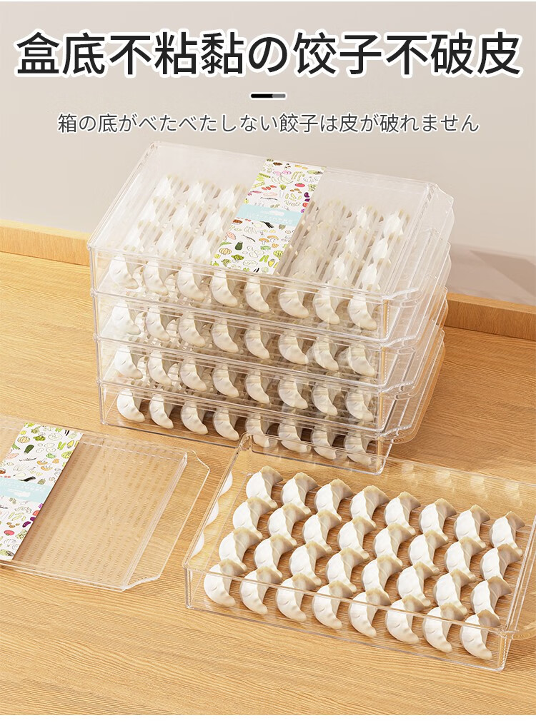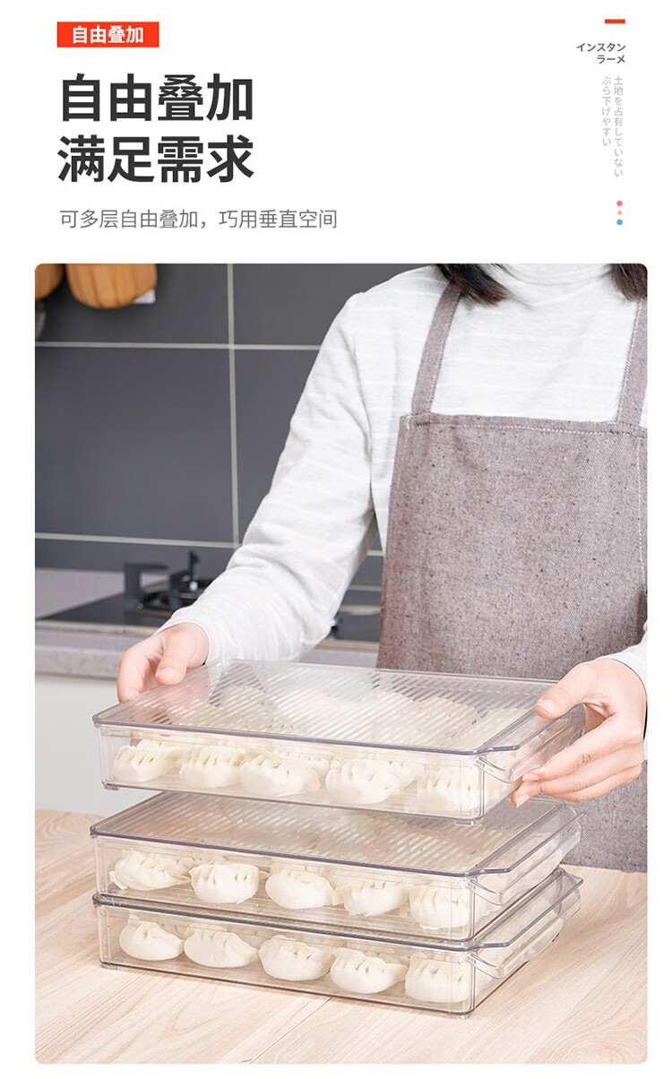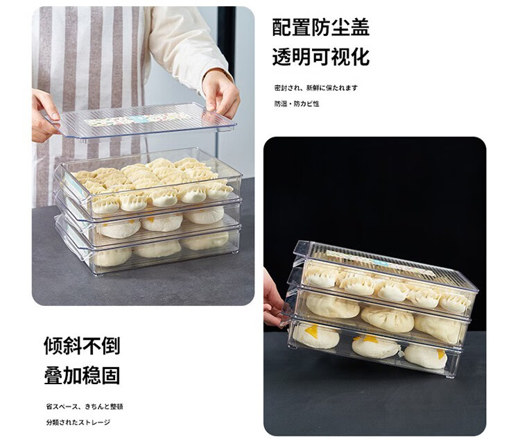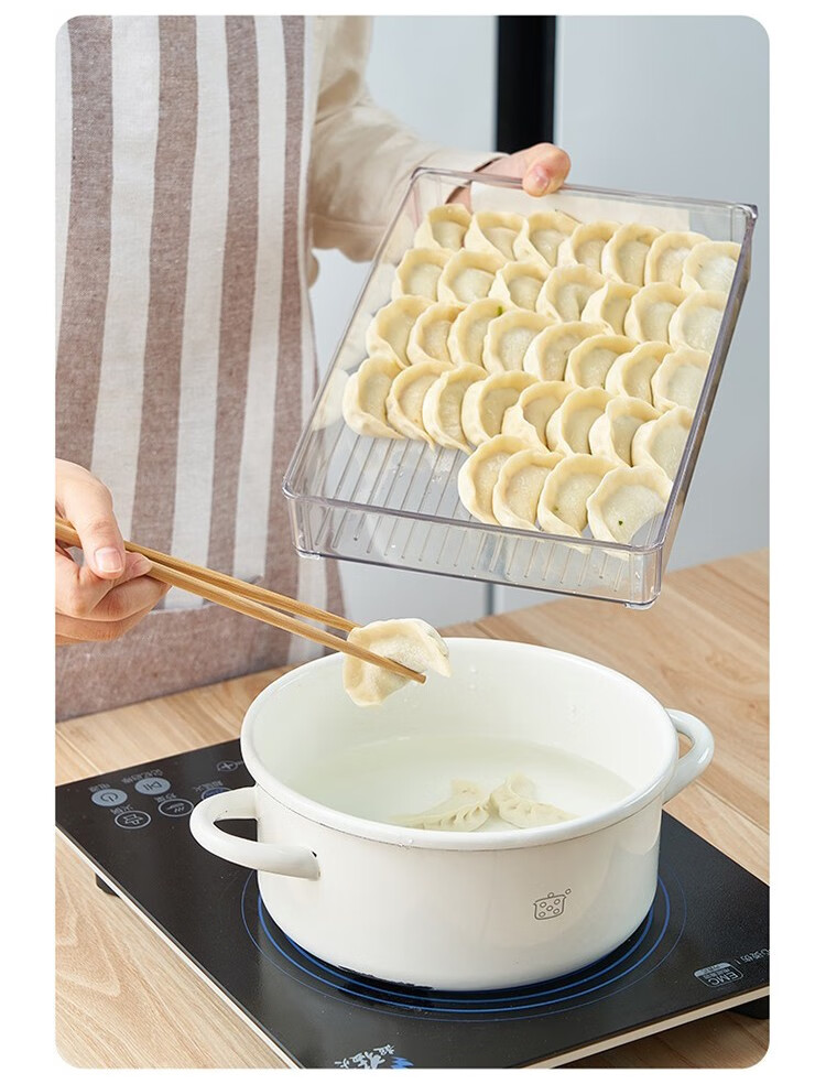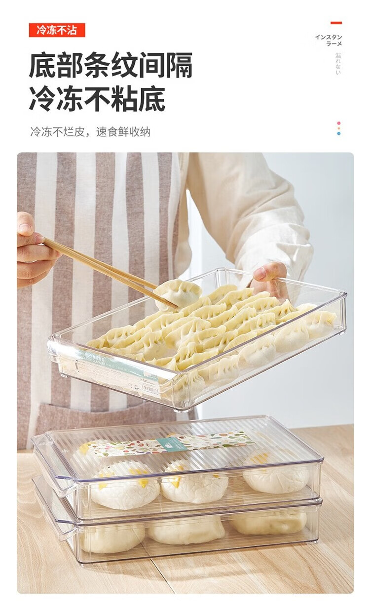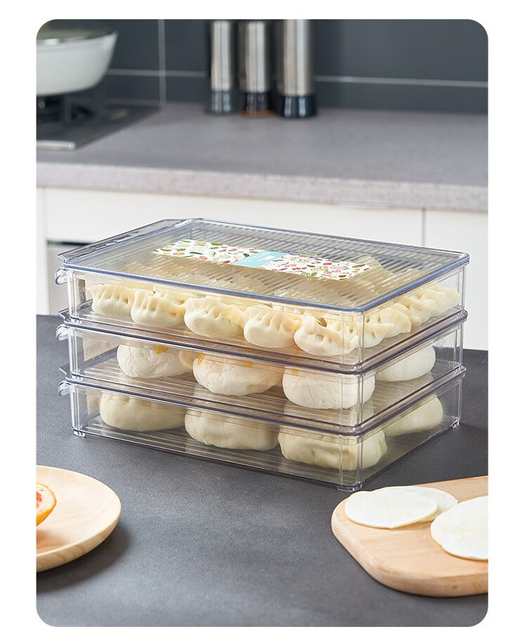 Home Story Japanese Dumpling Storage Box Refrigerator Food Grade Special Frozen Dumplings Wonton Quick Frozen Box Tray Fresh Box Dumpling Box PET Transparent (3 Packs) 1 Layer