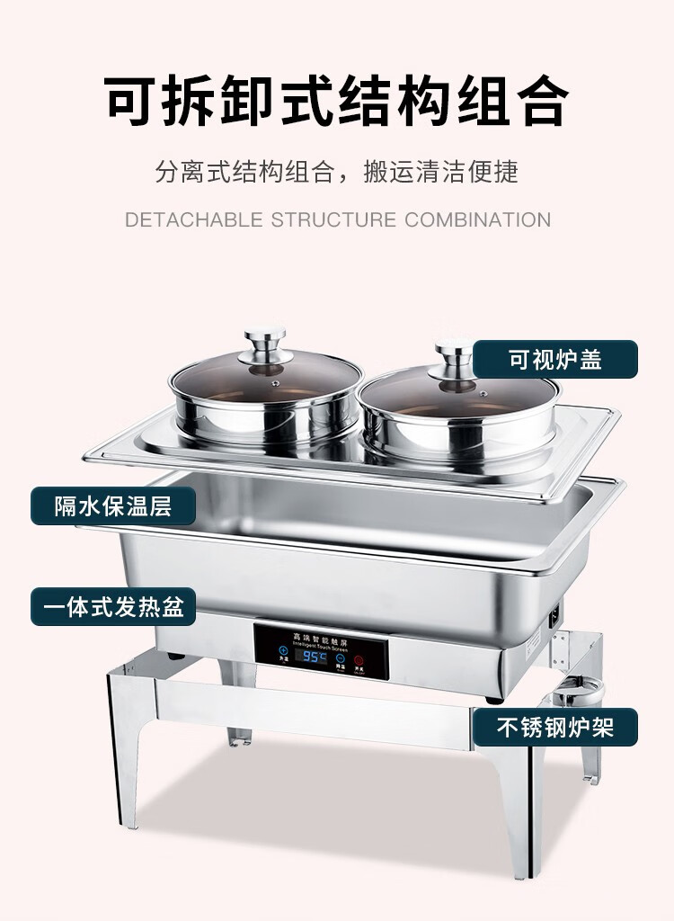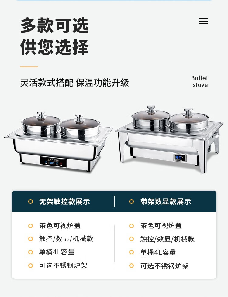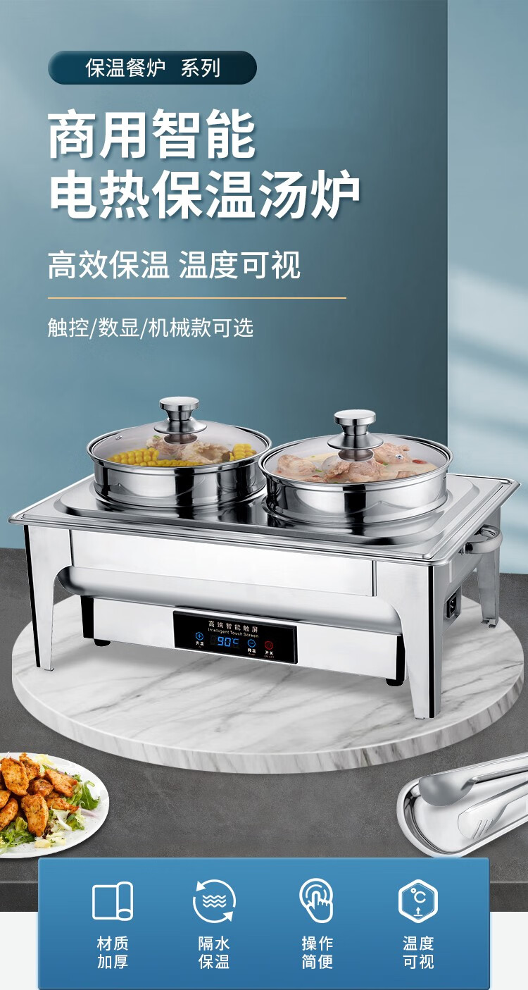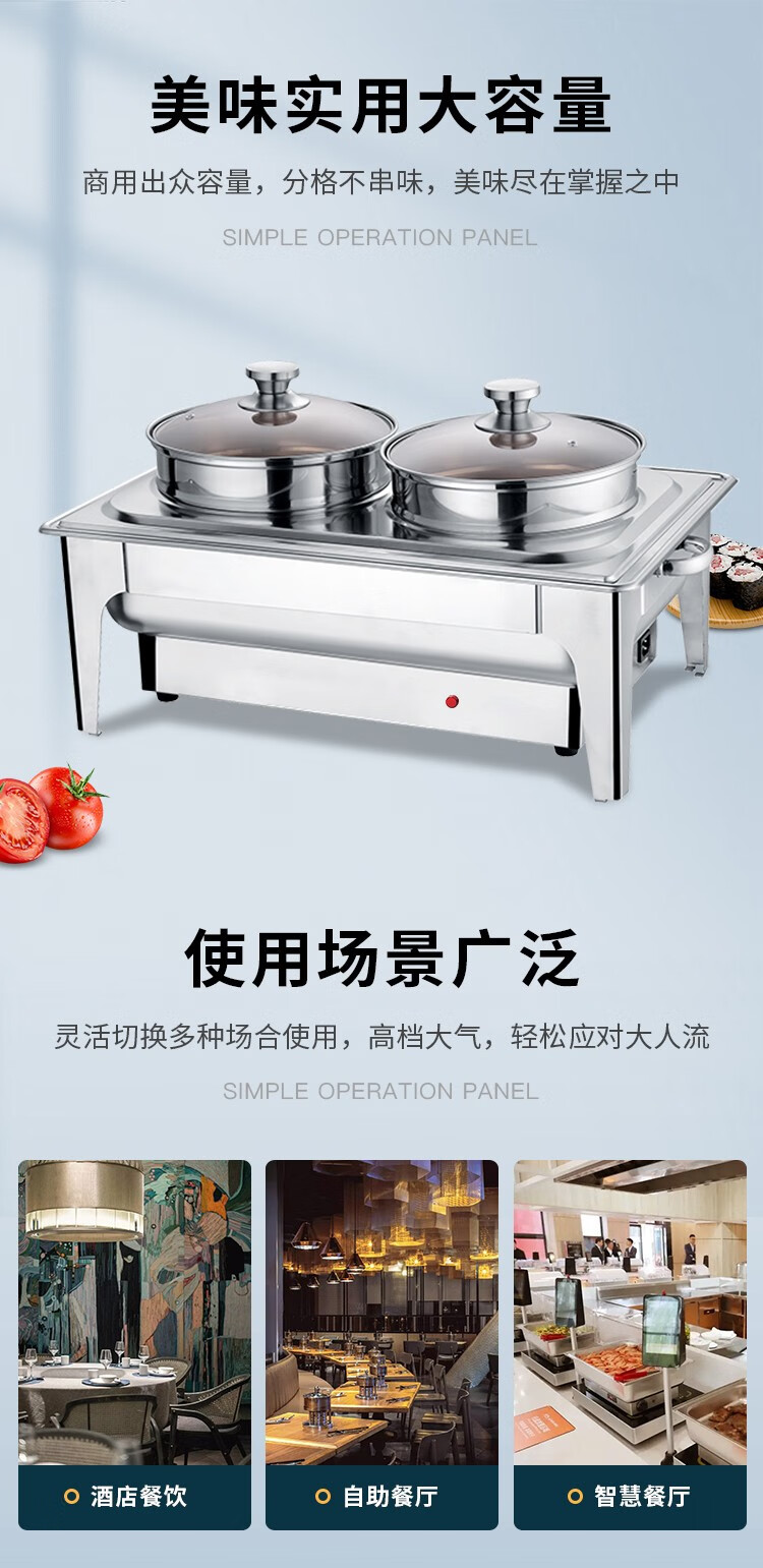 Vnash Buffet Electric Heating Stove Soup Stove Double-head Steamed Bun Soup Stove Hotel Buffet Breakfast Dessert Steamed Bun Steamer 18-liter Steam Oven Double-layer Steamer Mechanical Glass Cover