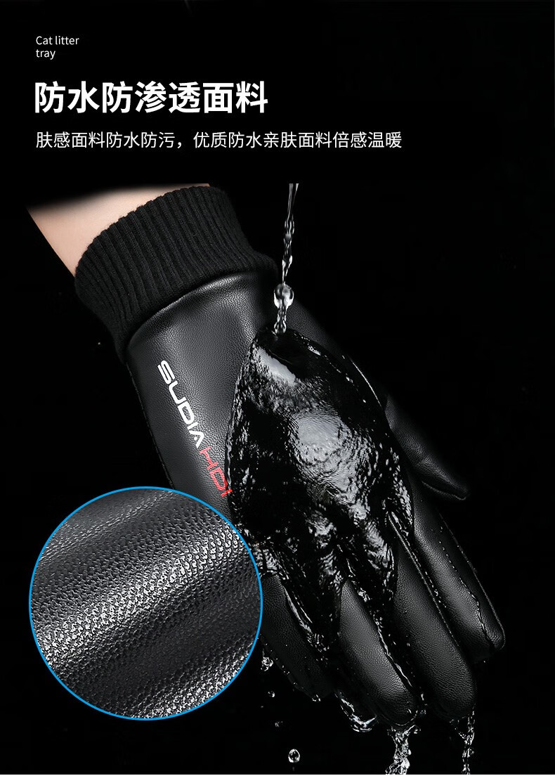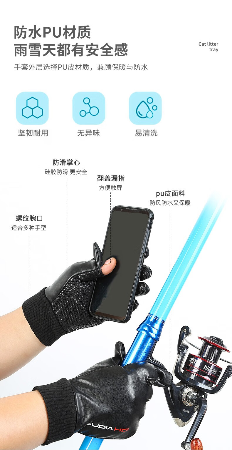 Zhugang Flip Fingerless Leather Gloves Men's Winter Takeaway Waterproof Cycling Outdoor Driving Fishing Touch Screen Plus Velvet Warmth Full Finger Flip Style