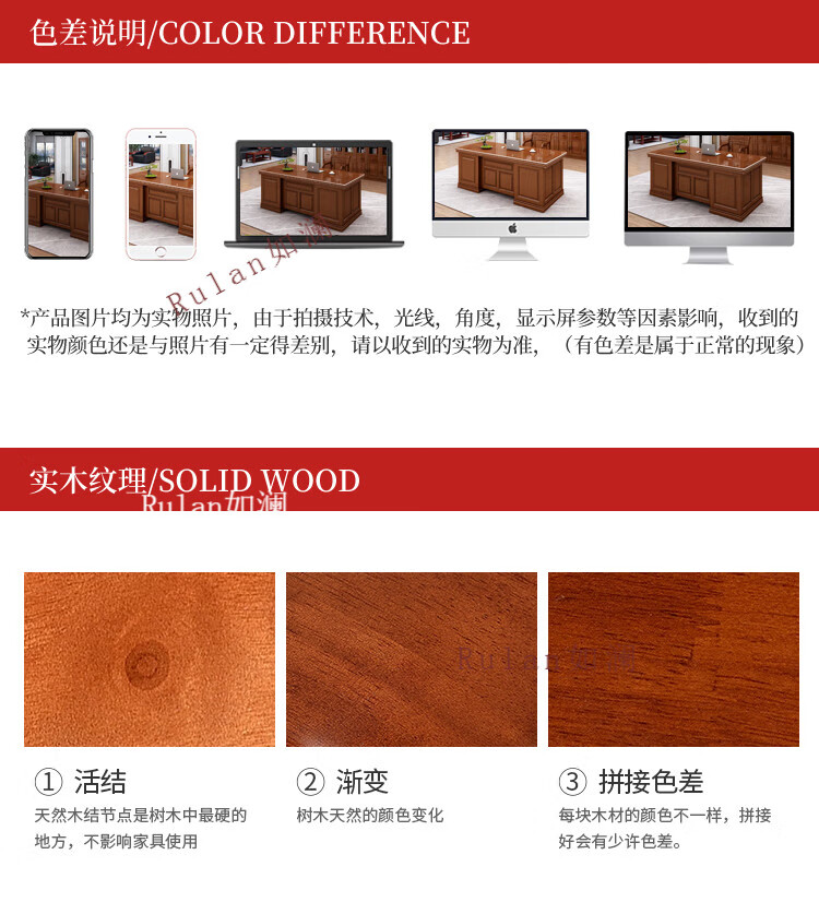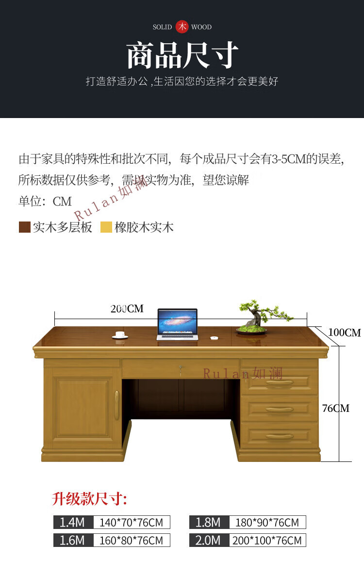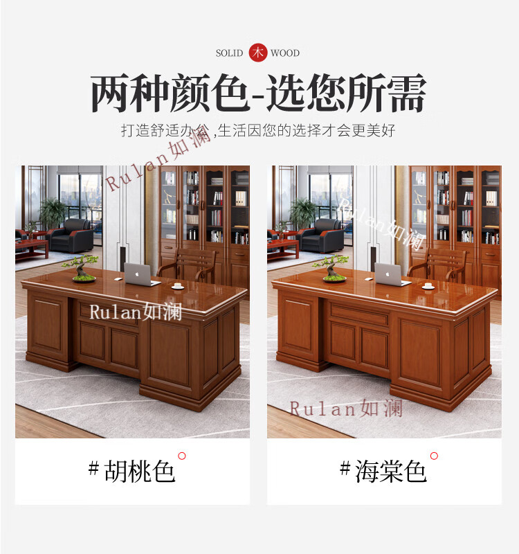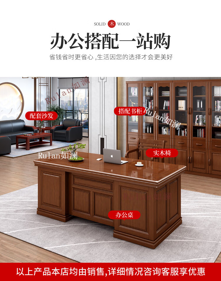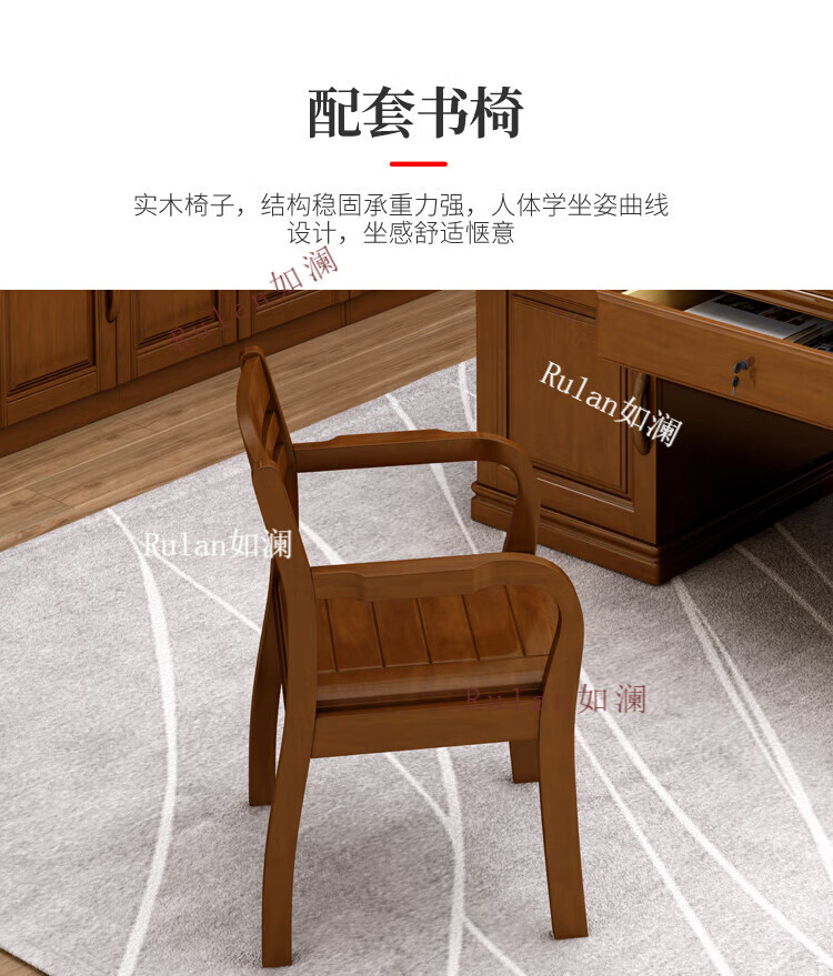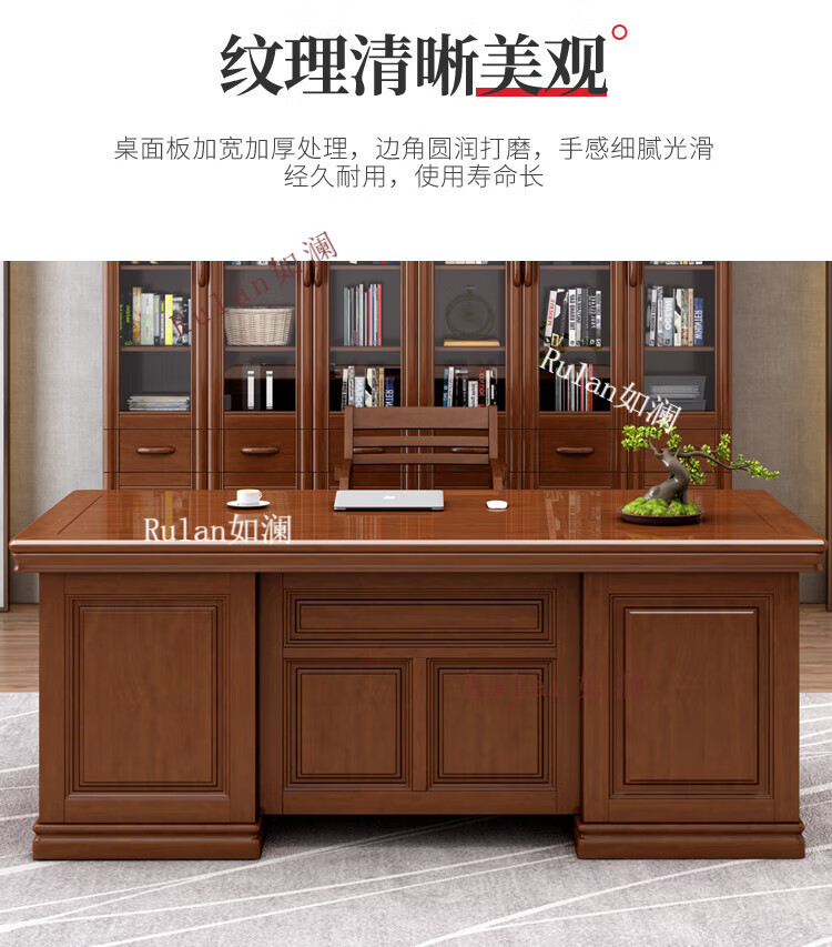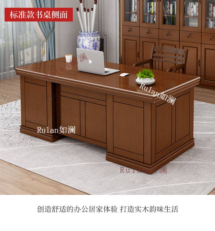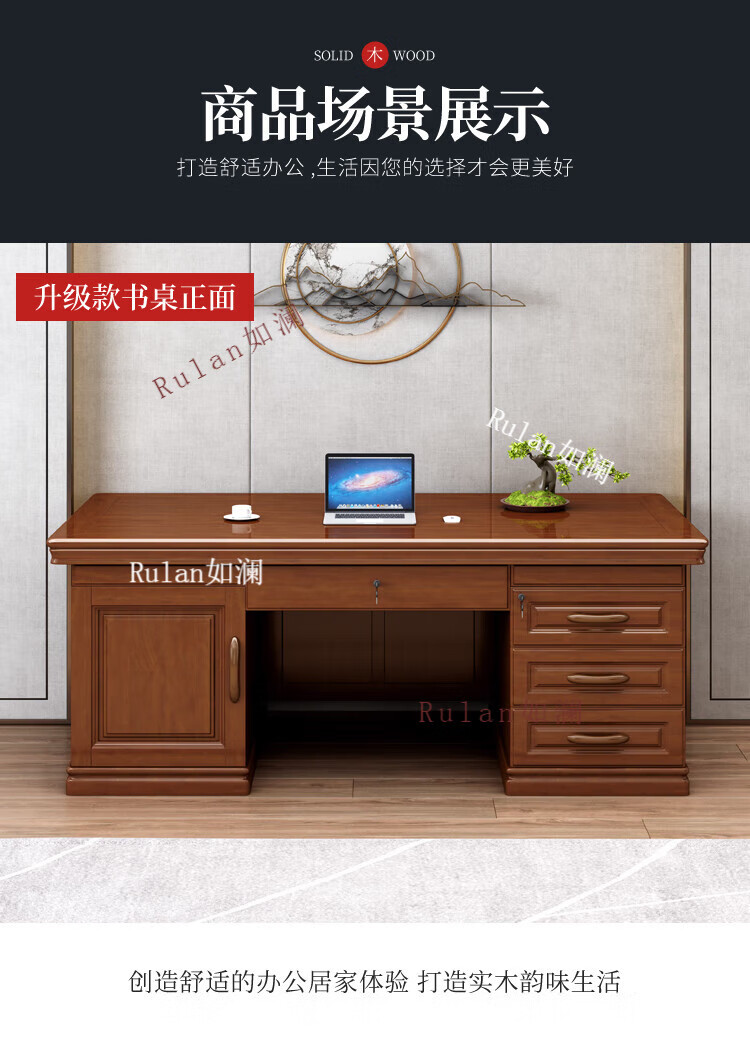 Rulan solid wood desk boss desk CEO desk and chair combination new Chinese style executive desk computer desk home writing desk 85#1.4m table (standard style)