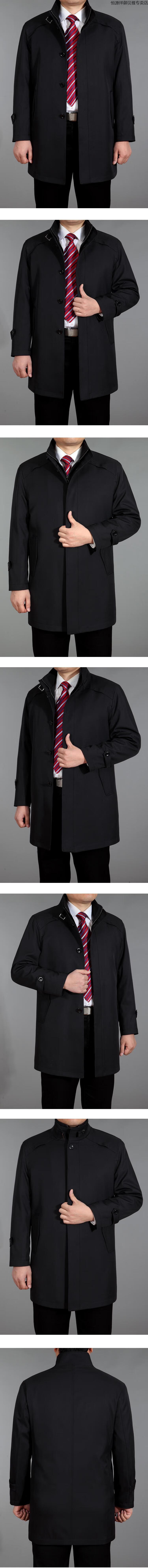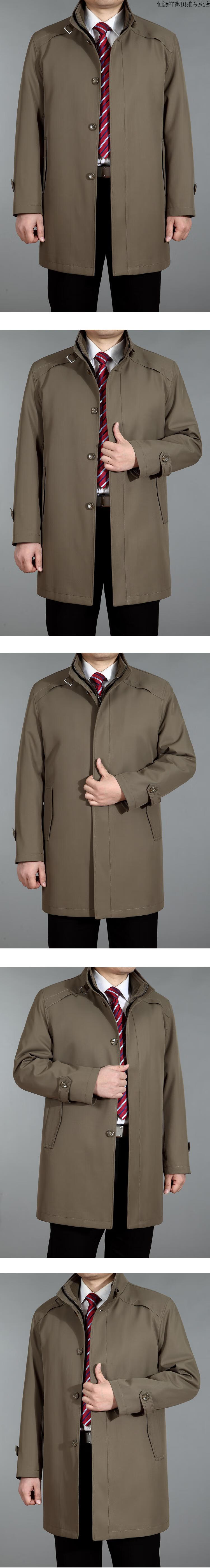 Hengyuanxiang men's windbreaker jacket winter middle-aged and elderly men's windbreaker mid-length casual business jacket middle-aged plus fat plus khaki 190 (recommended 175-190 Jin Jin equals 0.5 kg)