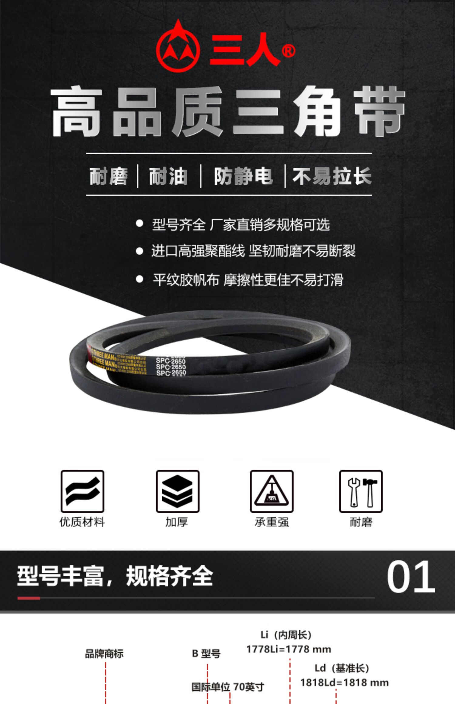 Yingdai ammonia anti-static triangle belt type B type C type V type A type rubber industrial machine fan conveyor drive belt anti-static anti-static other Specifications