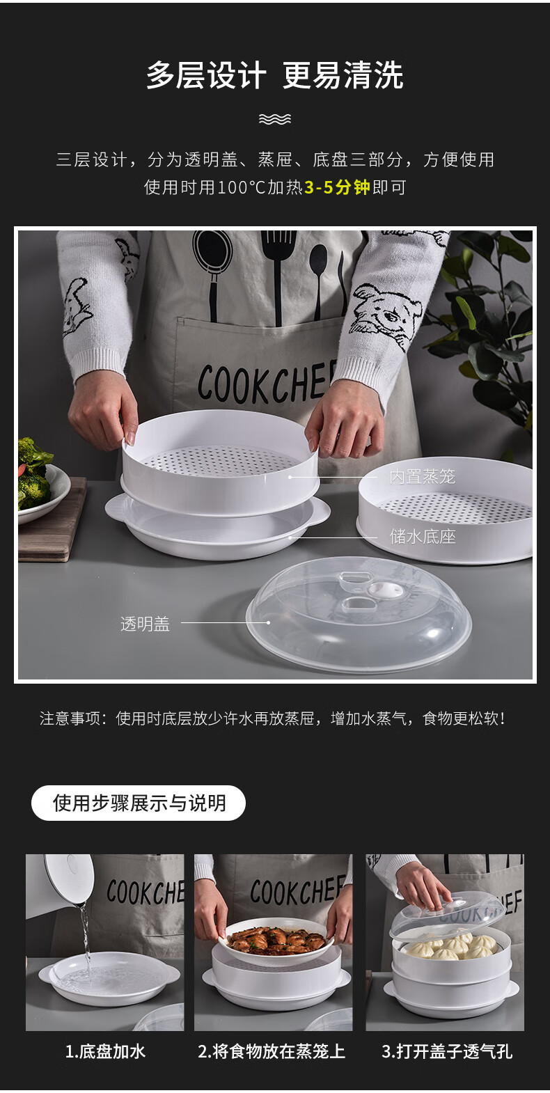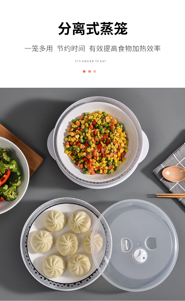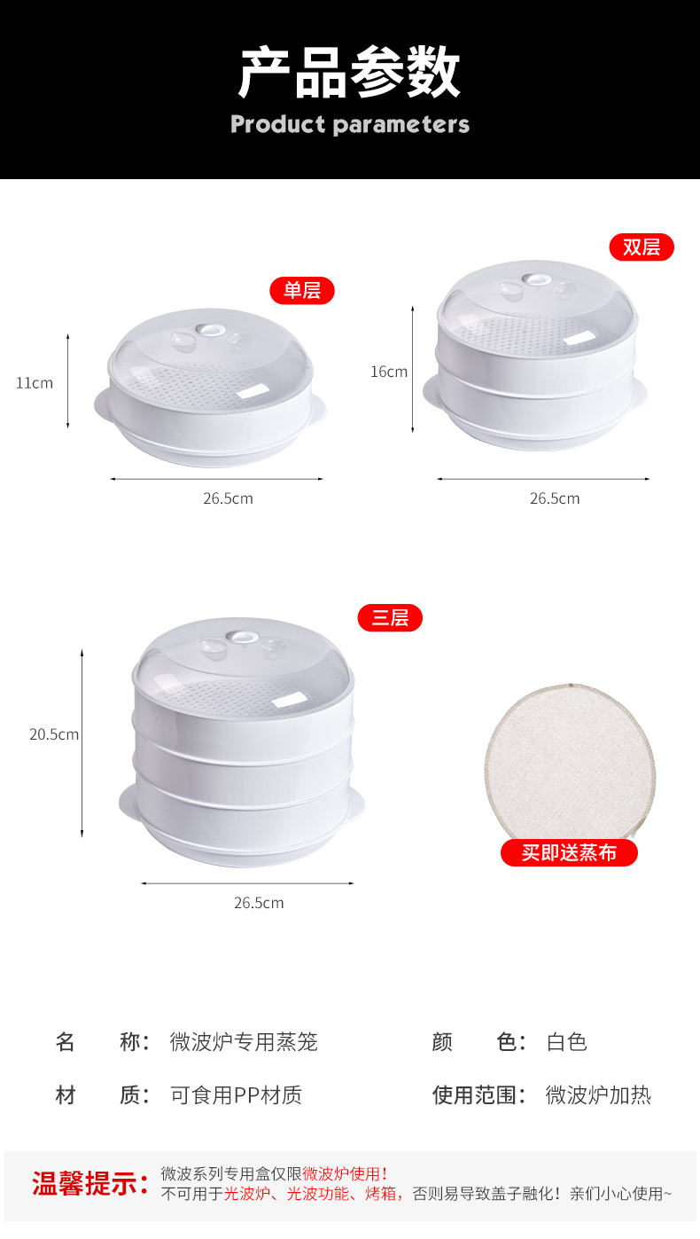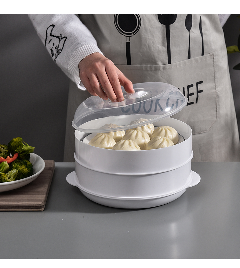 Suitable for Galanz microwave steamer, steamer with lid, steaming box, steaming tray, microwave bowl, used for rice, steamed buns and dumplings heating box, plastic steamer container, large white two-layer (with 1 steaming cloth)