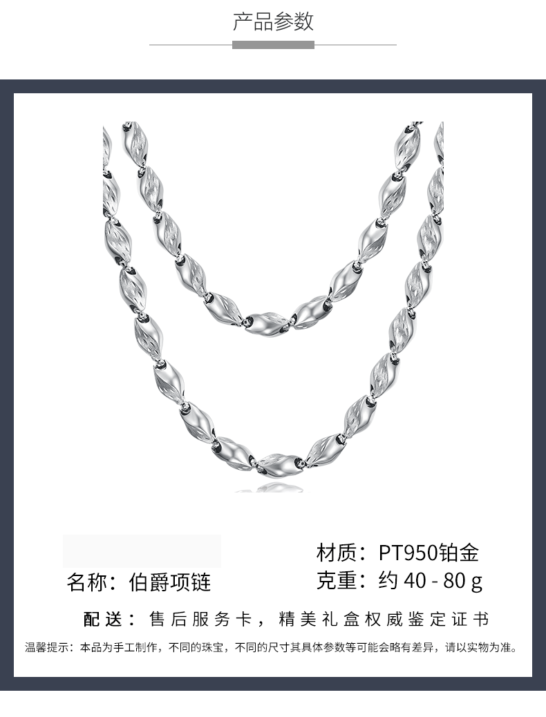 Jintiandi Jewelry Men's Platinum Necklace PT950 Domineering and Thick Knight Necklace for Boyfriend and Husband 66.26g