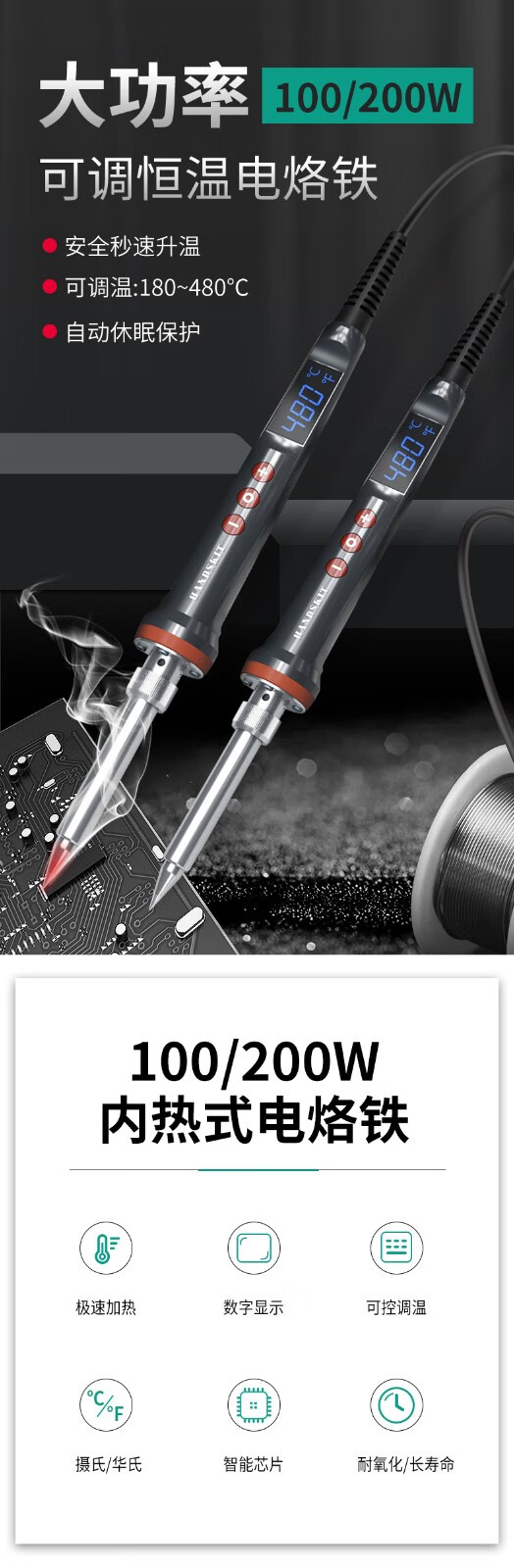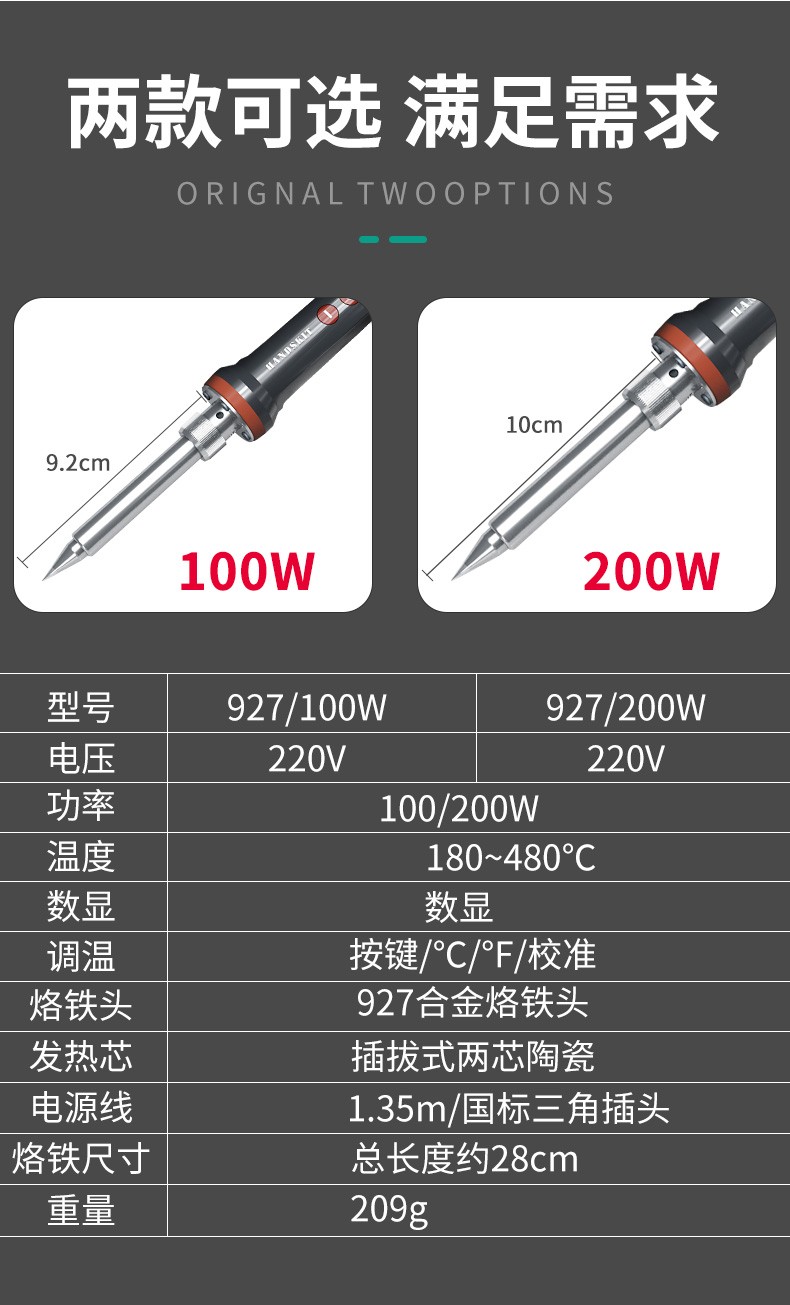 HANDSKIT industrial-grade electric soldering iron 100w/200w high-power electric soldering iron set household temperature-adjustable digital display portable welding gun 200W blade 927 electric soldering iron