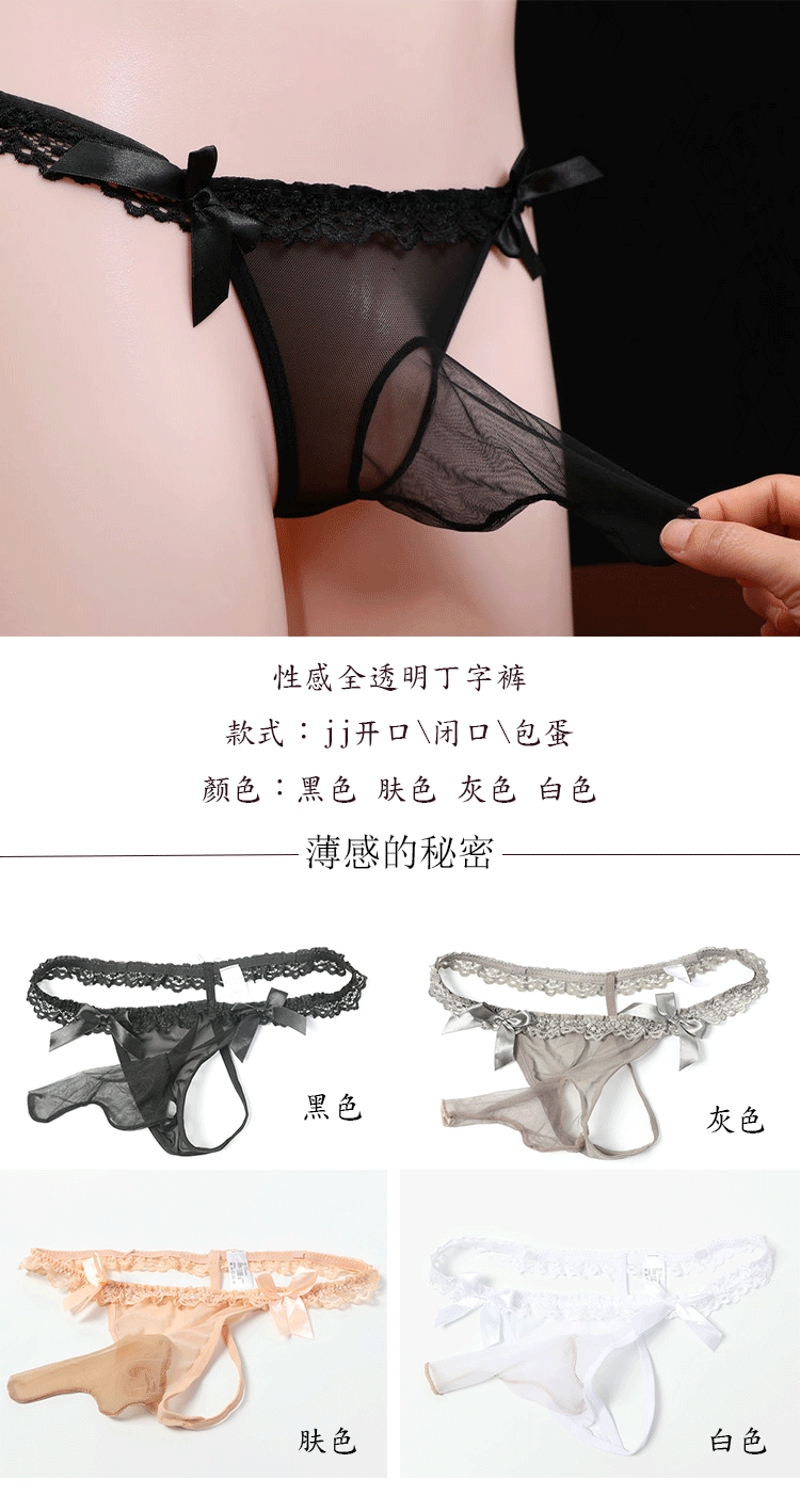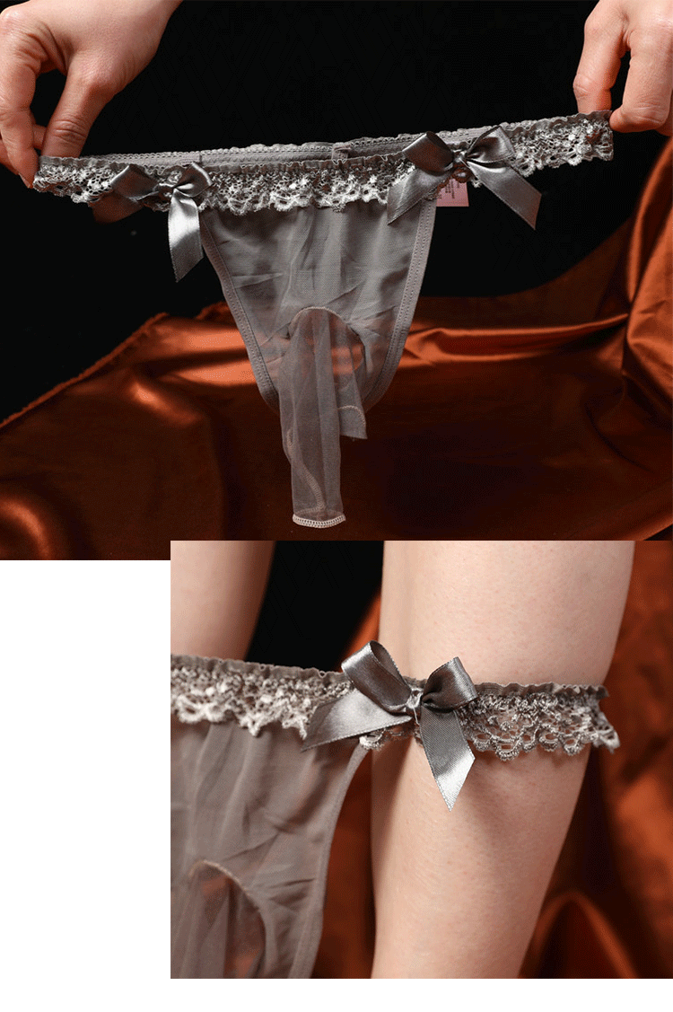 Men's Sexy Underwear Briefs Fully Transparent Sexy Lace Thong Belt Stockings Thong Guoruo Gray Opening One Size 100-160Jin Jin is equal to 0.5kg within