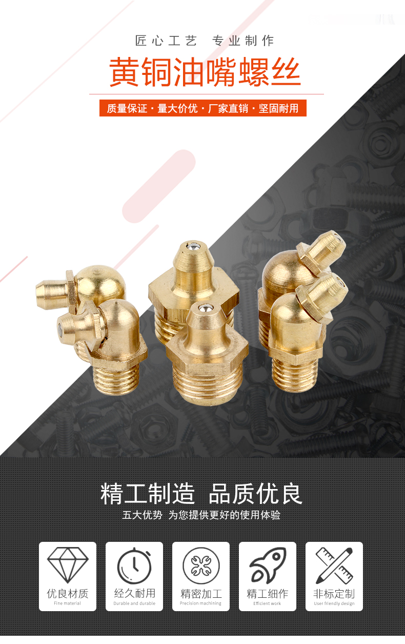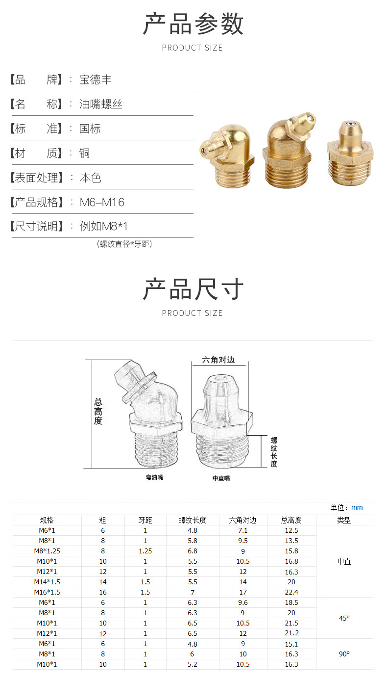 Baodefeng butter nozzle copper oil nozzle head oil cup oil nozzle oil gun oil nozzle butter gun head digger copper straight curved oil nozzle medium straight M10X1 5 pieces
