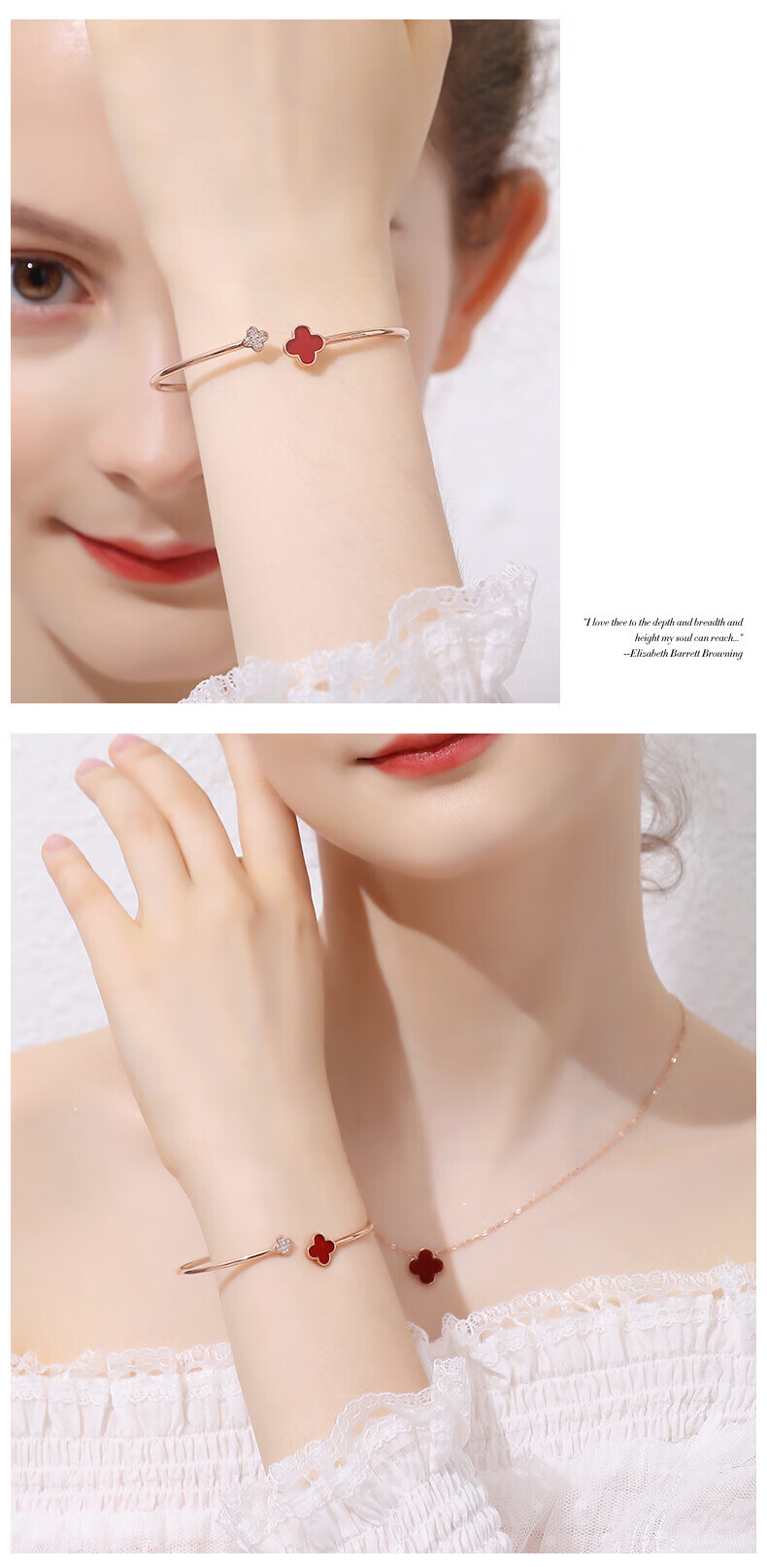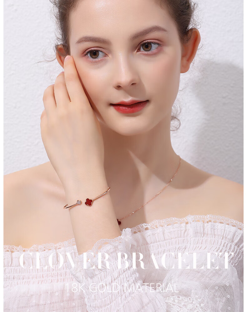 Grace Girl original 18K gold four-leaf clover bracelet for women rose gold color gold bracelet bracelet as a Chinese Valentine's Day gift for wife 18K gold four-leaf clover bracelet red agate + love gift box