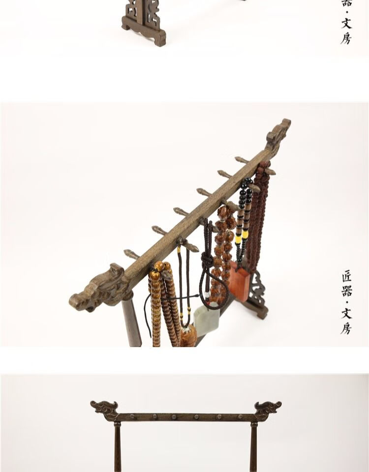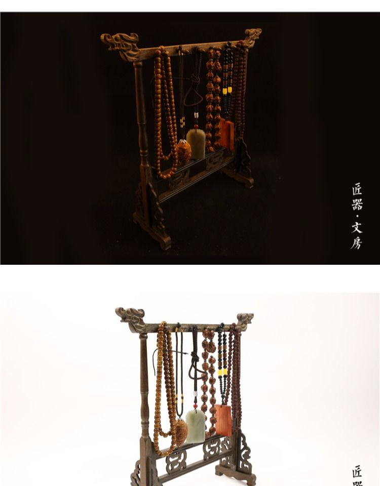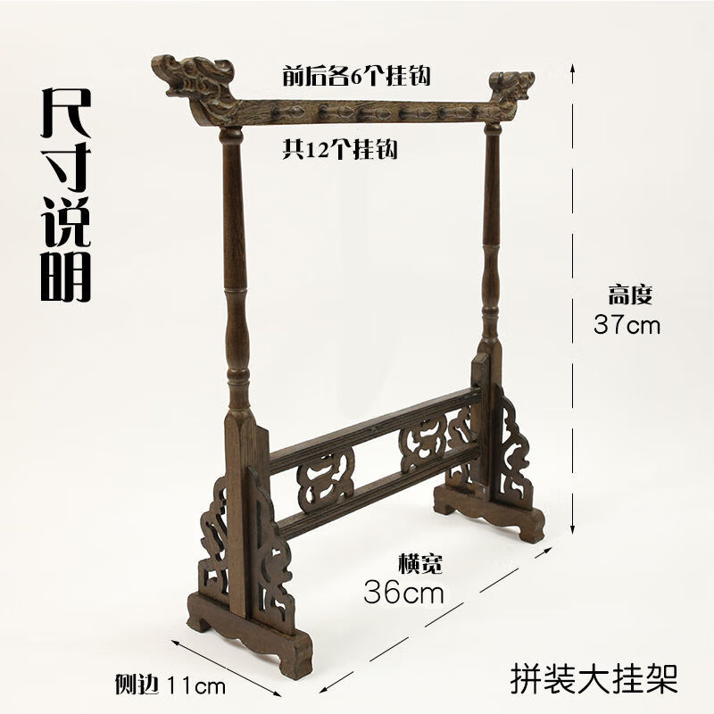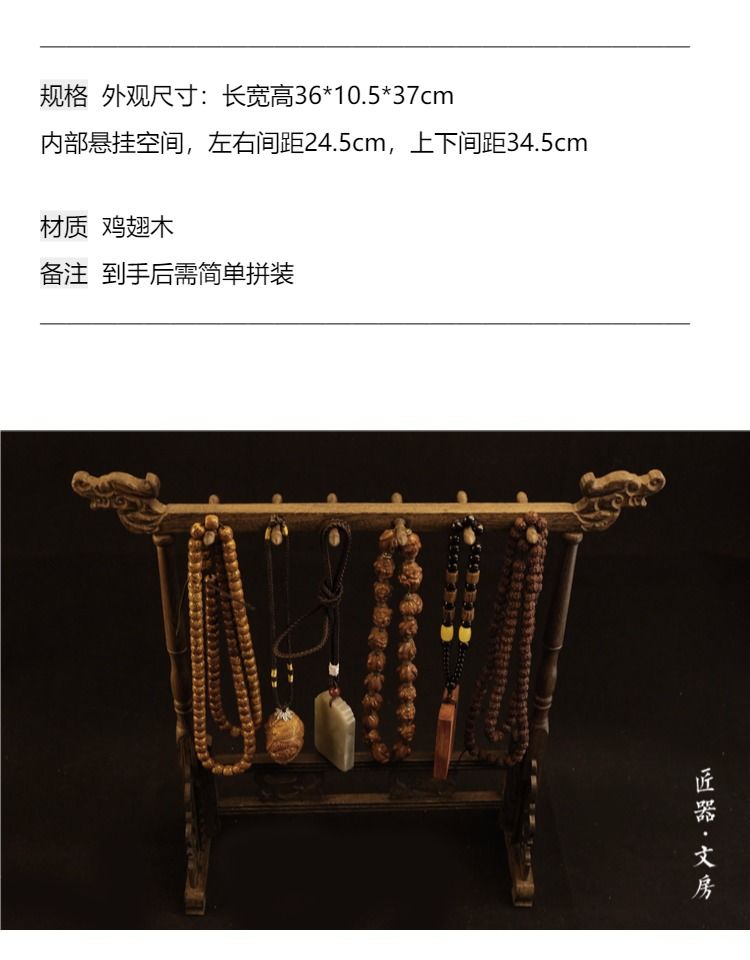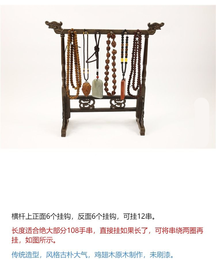 WEISHINI bracelet hanging rack, chicken wing wood hanging jade rack, literary ornaments hanging display wooden frame, rosary rack, craftsman's 12 hooks GSF-A15-302-1