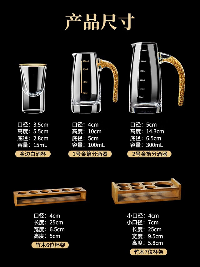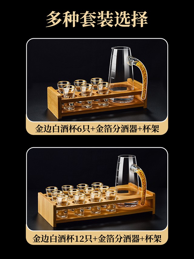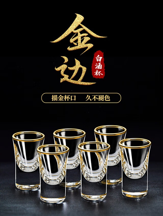 Manwei crystal white wine glass, two or two points, wine set, gold-rimmed small wine glass, one or two bullet cups, one cup, wine cup set, gold-painted white wine glasses, 6 pieces