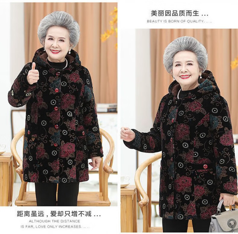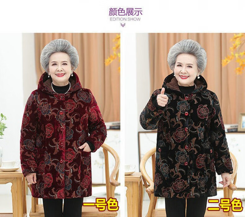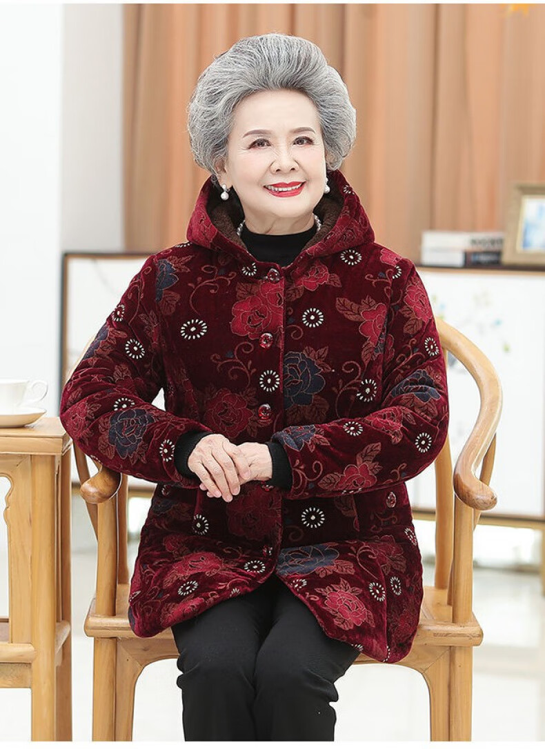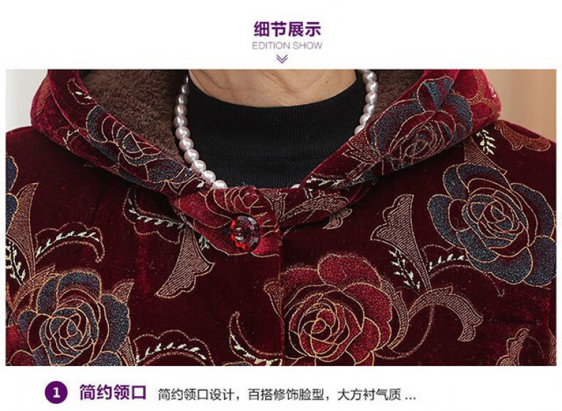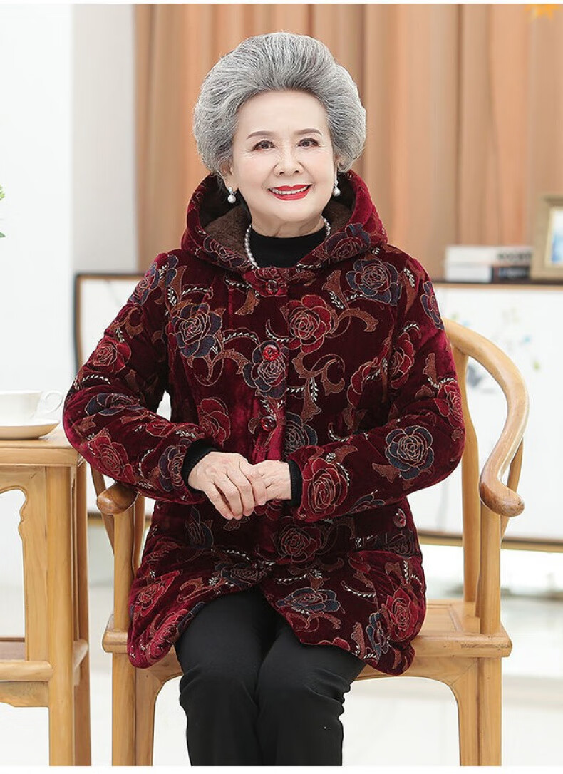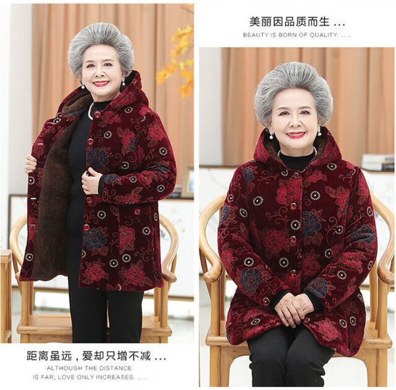 Yu Zhaolin (YUZHAOLIN) Mother's Clothing Winter Middle-aged and Old Women's Clothing 60 and 70 Years Old Grandma Elderly Clothes Grandma Cotton Jacket Down Jacket Red Large Flower 3XL (Recommended 115-125 Jin Jin equals 0.5 kg)