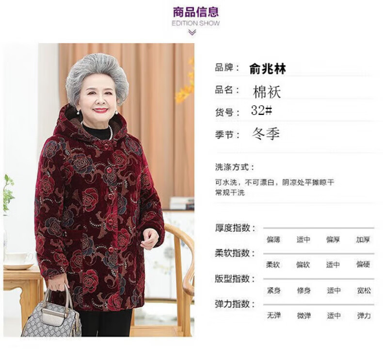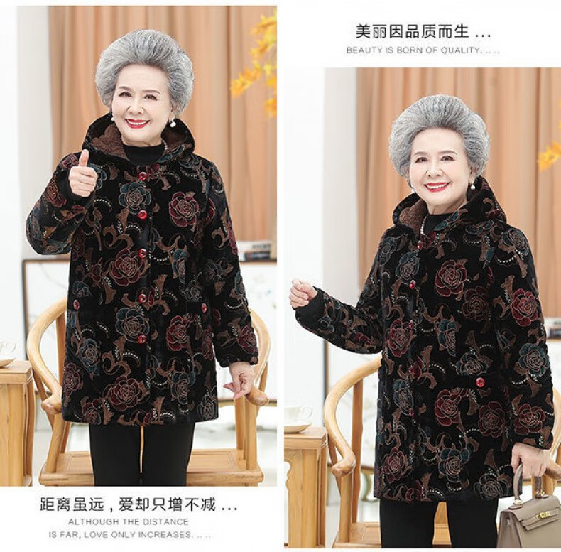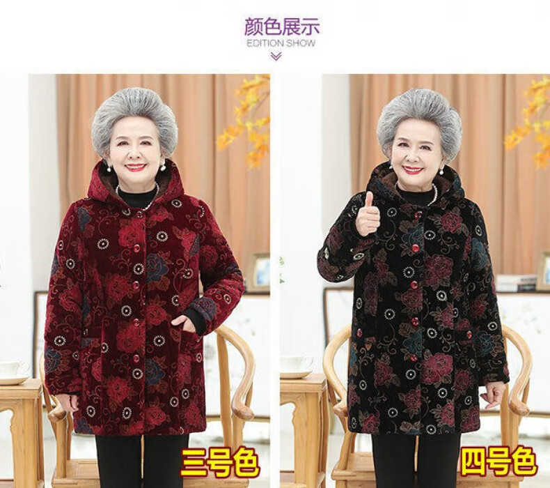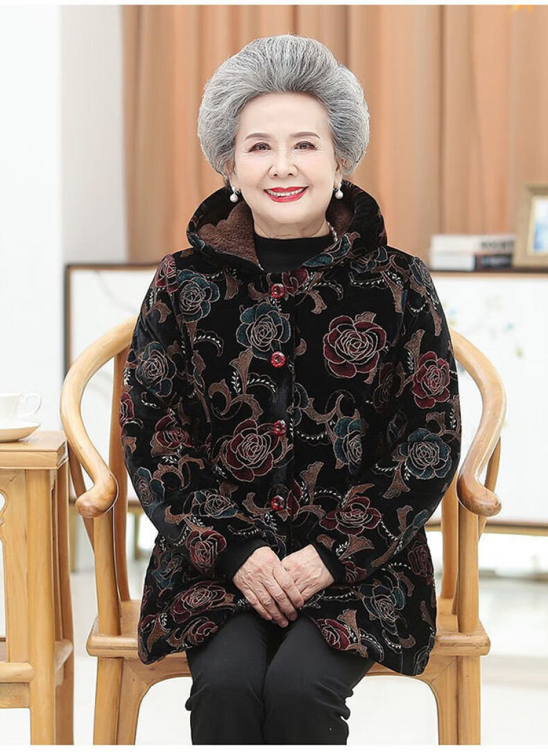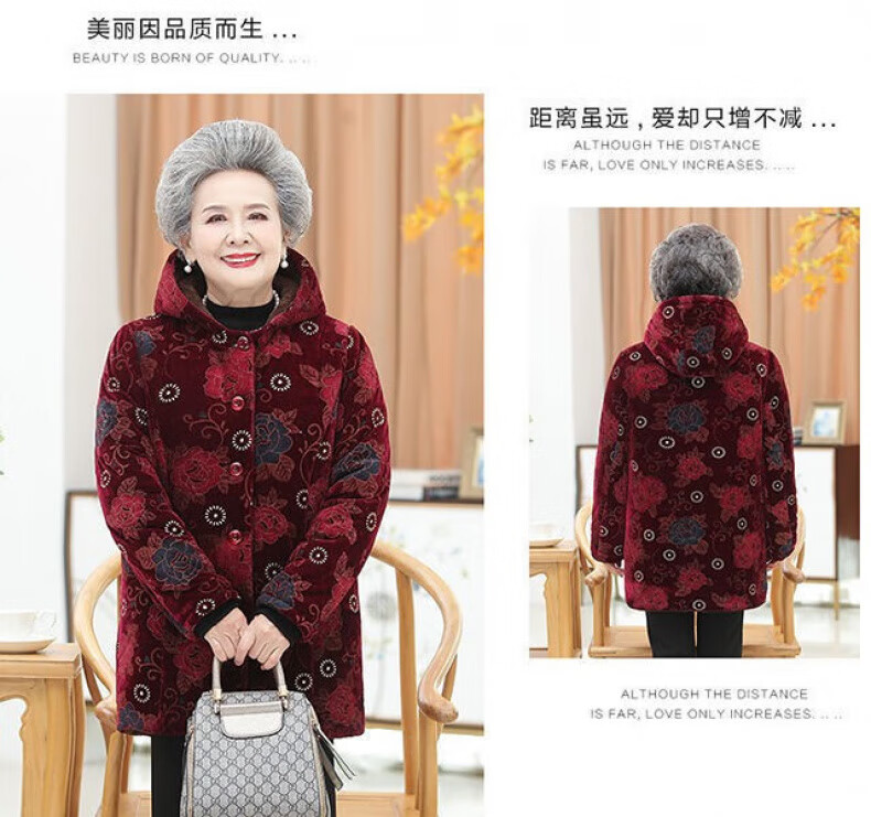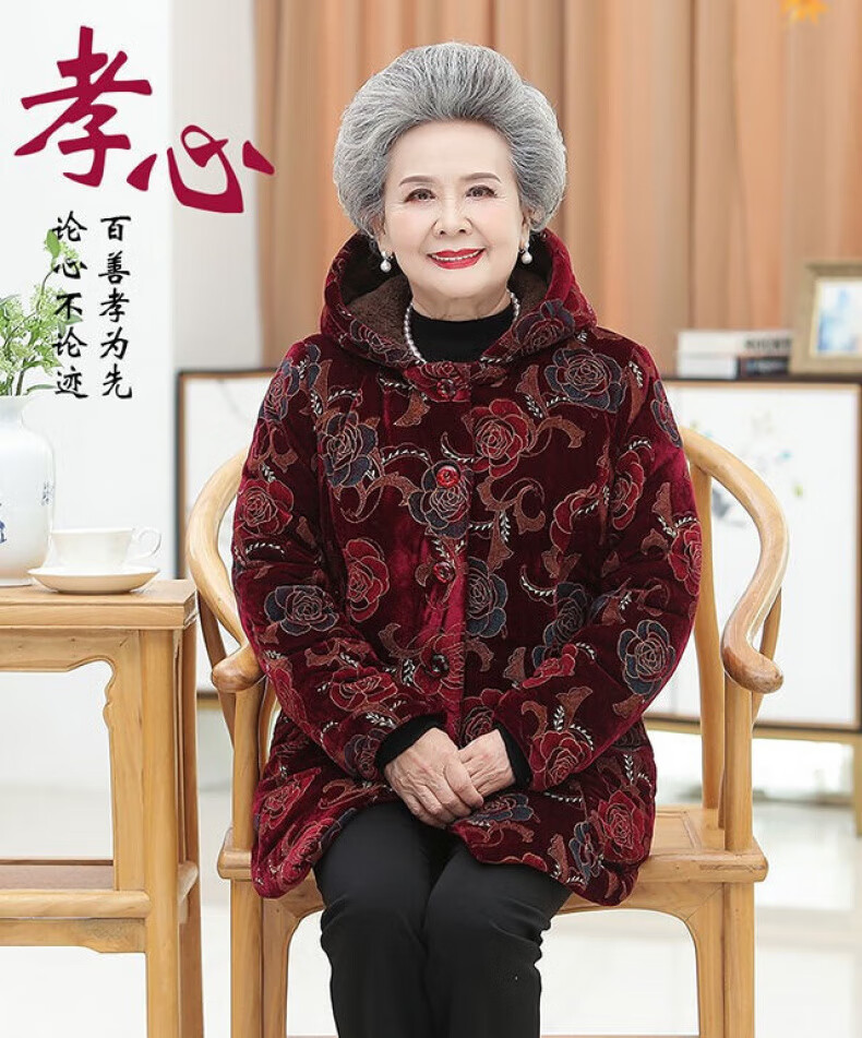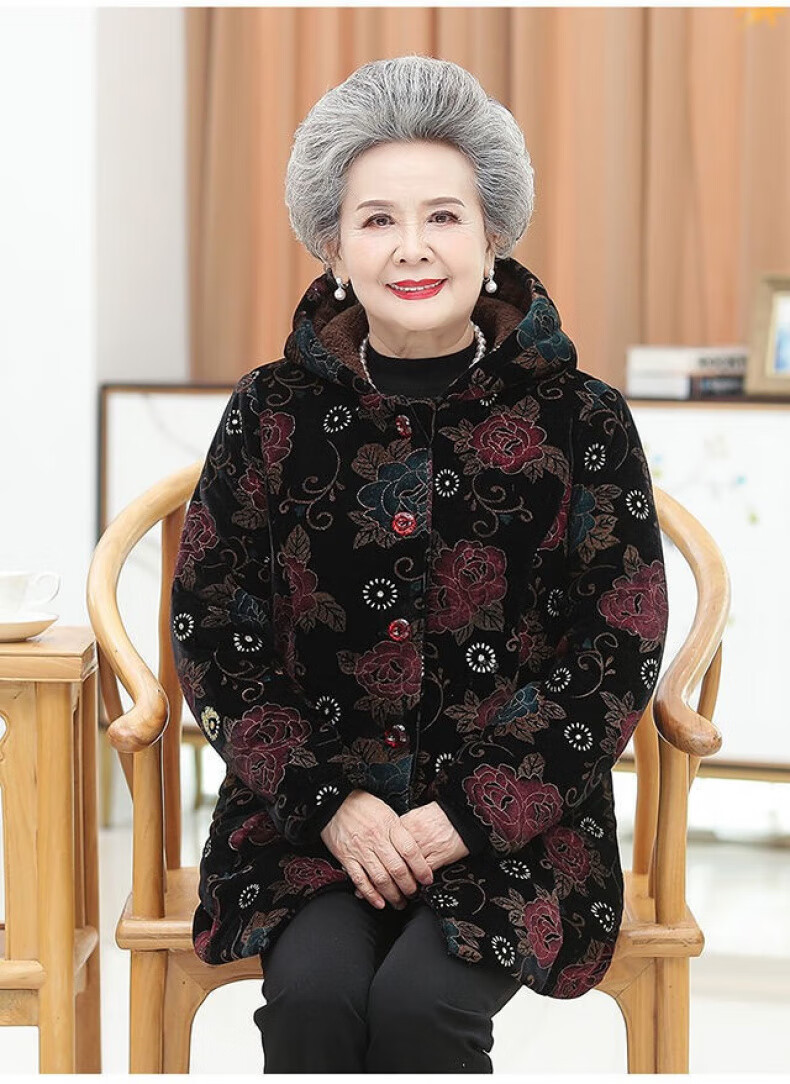 Yu Zhaolin (YUZHAOLIN) Mother's Clothing Winter Middle-aged and Old Women's Clothing 60 and 70 Years Old Grandma Elderly Clothes Grandma Cotton Jacket Down Jacket Red Large Flower 3XL (Recommended 115-125 Jin Jin equals 0.5 kg)