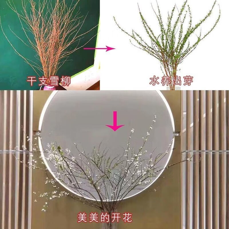 AIMAN hydroponic dry branches of snow willow spray snowflakes bloom when exposed to water. Plants and flowers with dead wood and spring dry branches and plums for indoor balcony flower arrangement. Spray snowflake branches 50-60 cm long, 20 branches. Delivery of dry branches. Hydroponic cultivation takes 10-20 days to germinate and bloom.