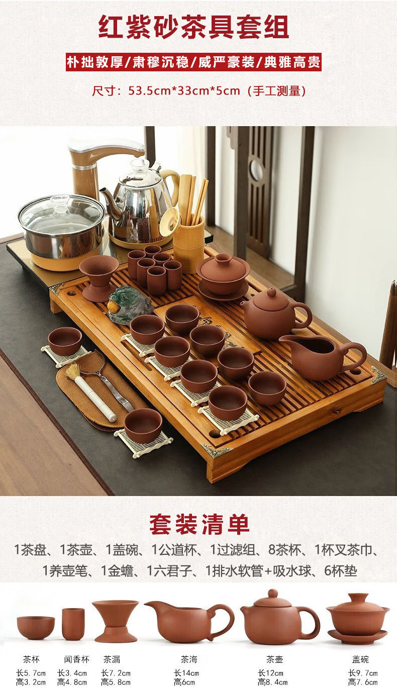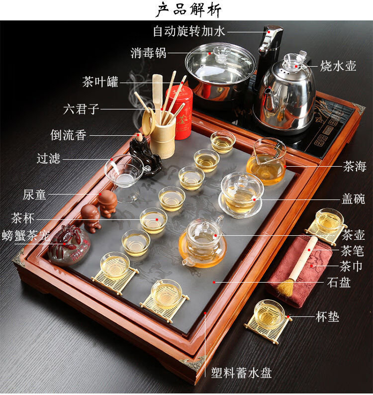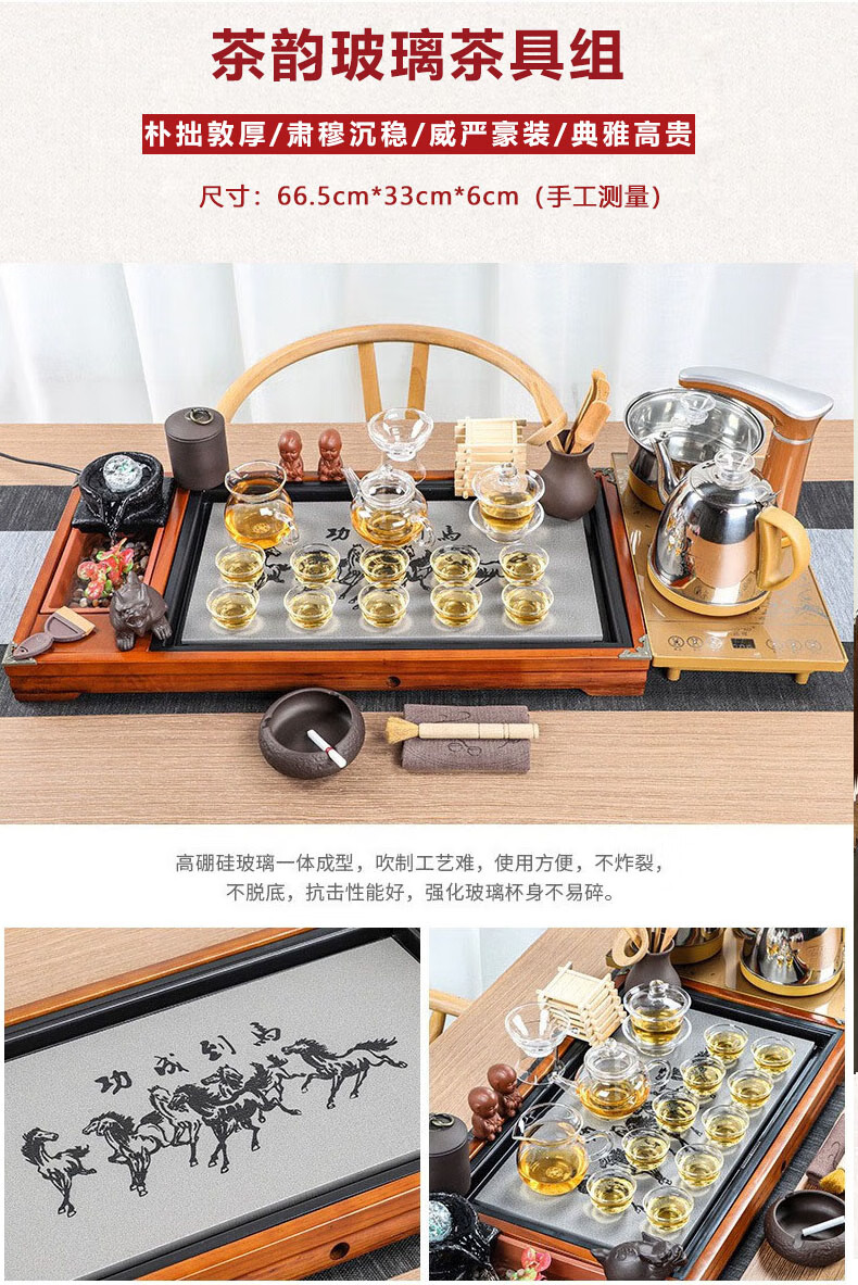 Zhuang Ziran Kung Fu Tea Set Household Tea Tray Complete Set Fully Automatic Kettle Integrated Tea Tray Office Reception Tea Table Teapot Immediate Success Tea Tray + Glass Tea Set 14 Pieces