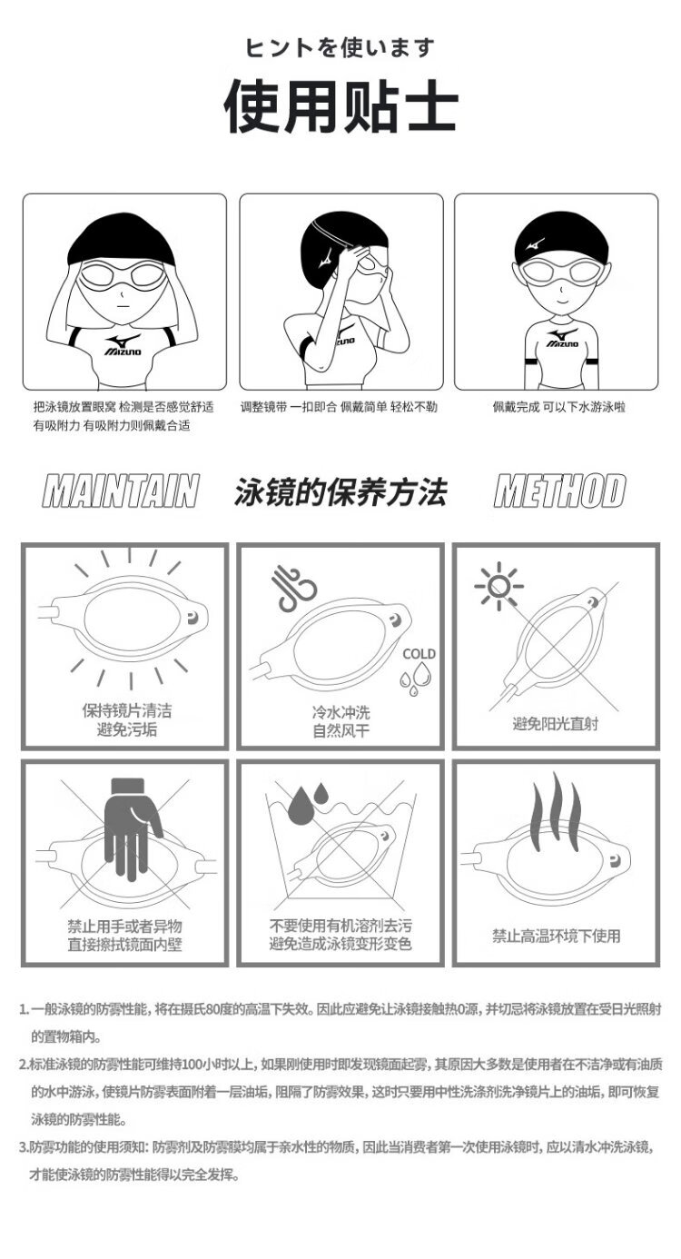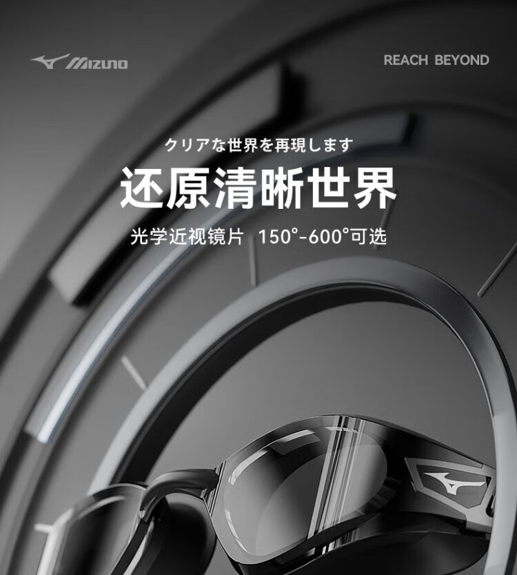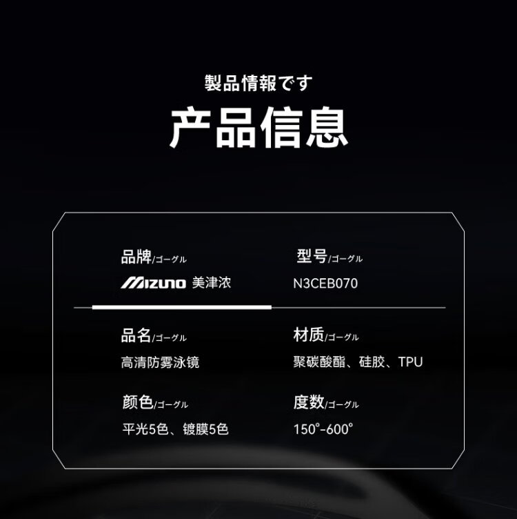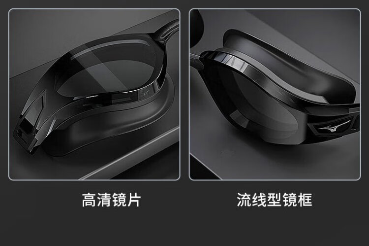 Mizuno (MIZUNO) swimming goggles waterproof and anti-fog men's and women's swimming goggles myopia professional racing high-definition diving swimming goggles equipment phantom black flat light/myopia optional flat light no degree
