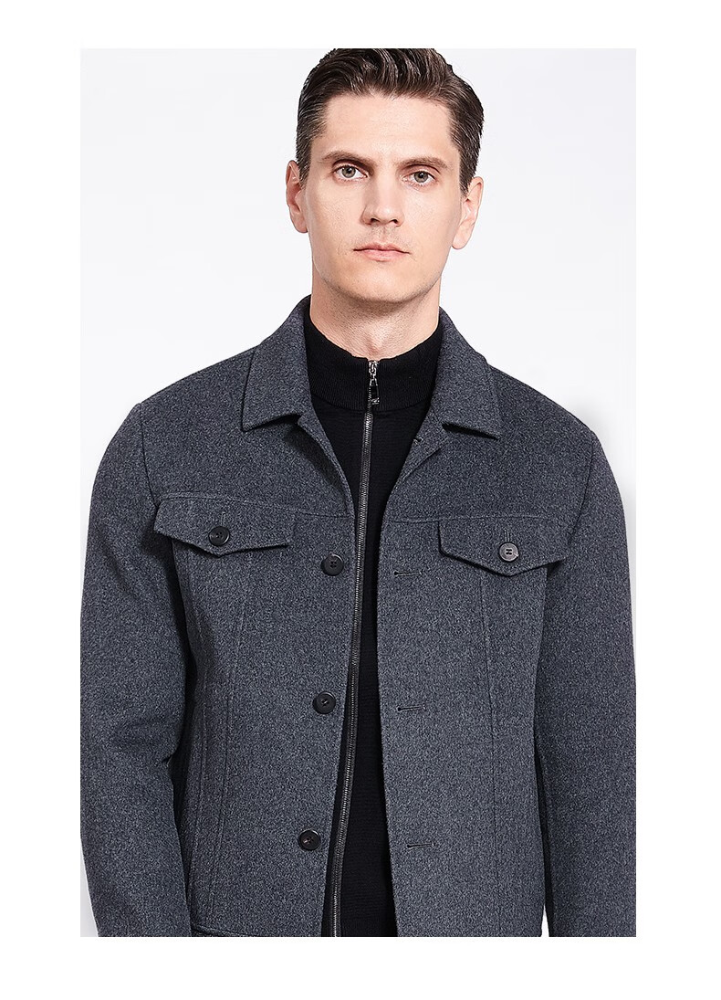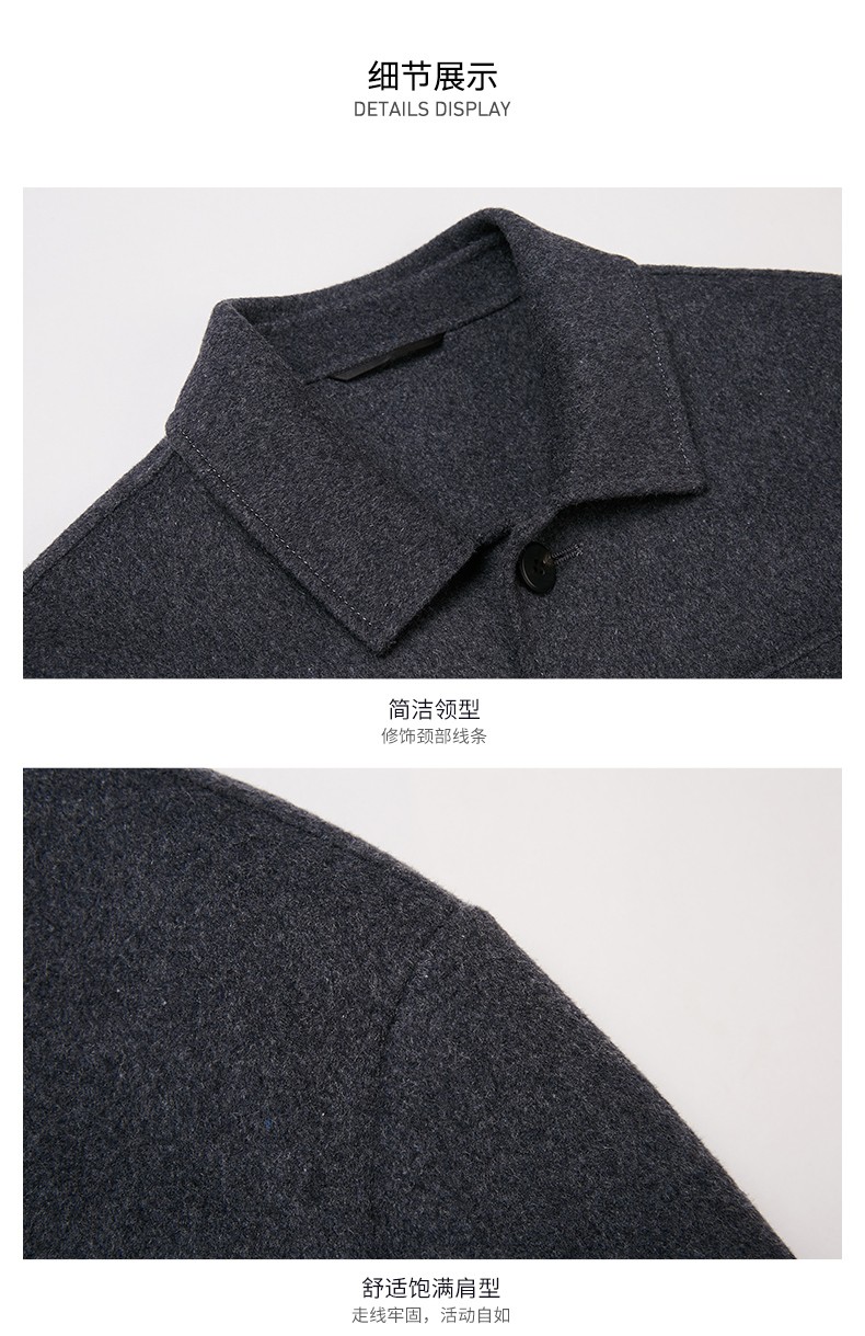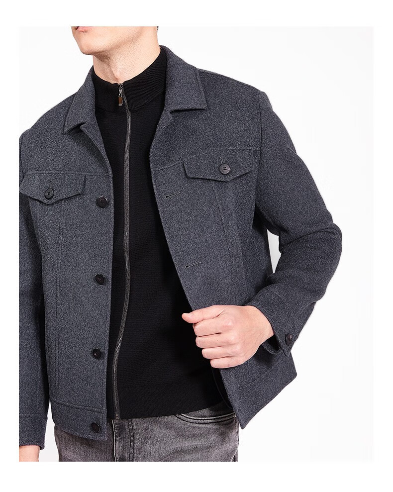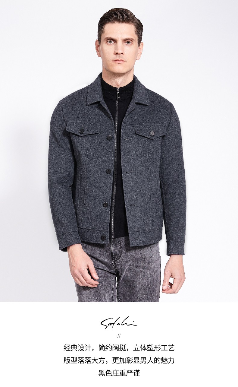 SATCHI Men's Jacket Autumn and Winter Light Luxurious Double-sided Wool Fabric Fashion Versatile Warm Wool Easy-Care Jacket Men Medium Gray 48/170