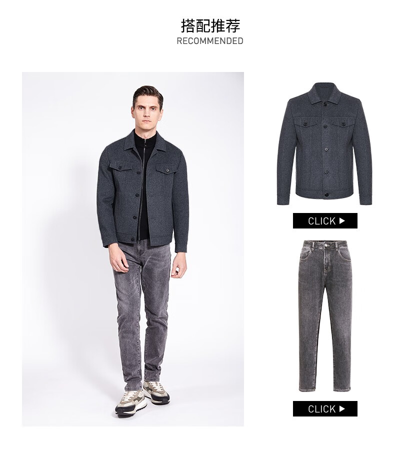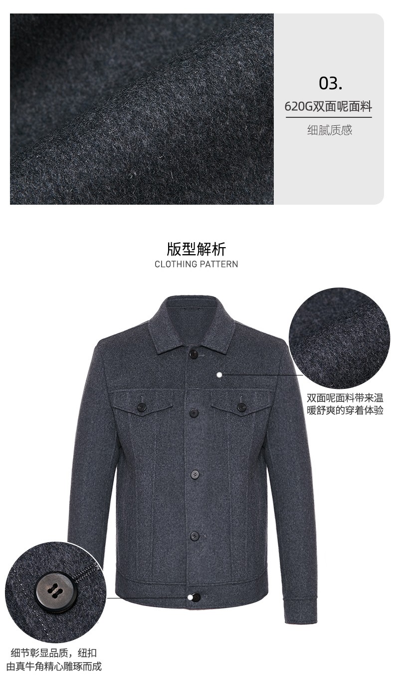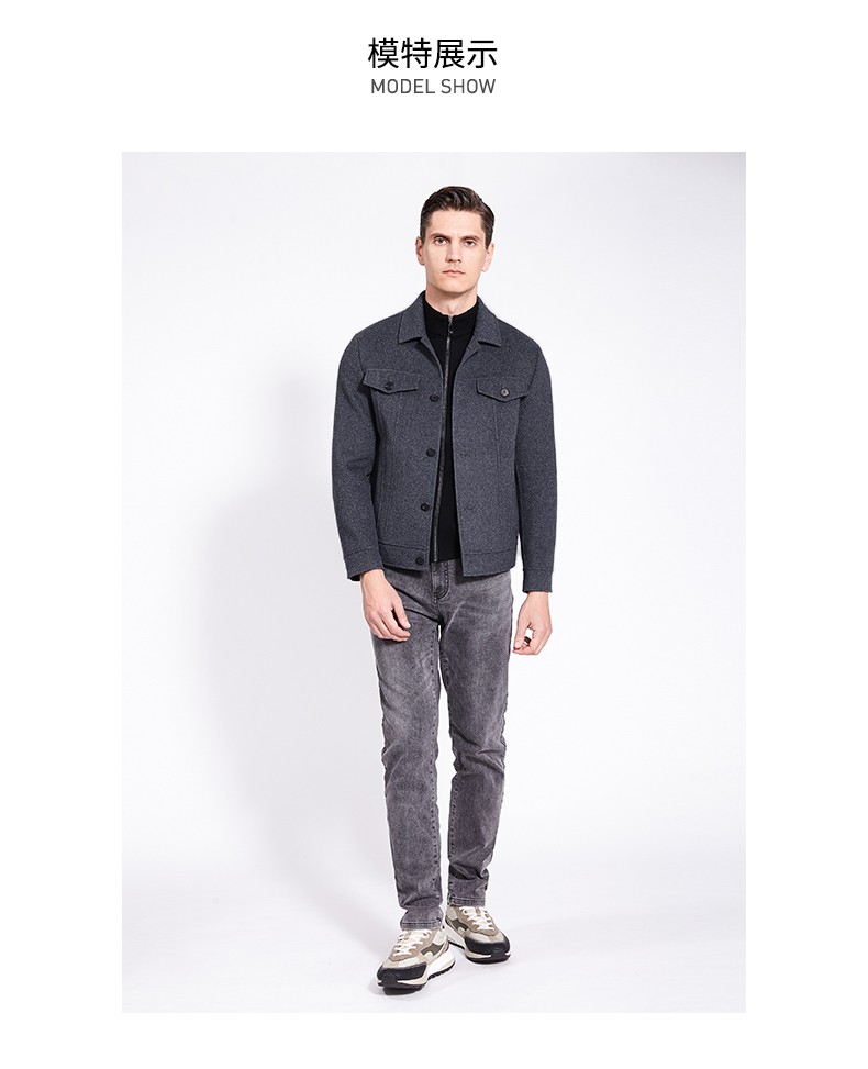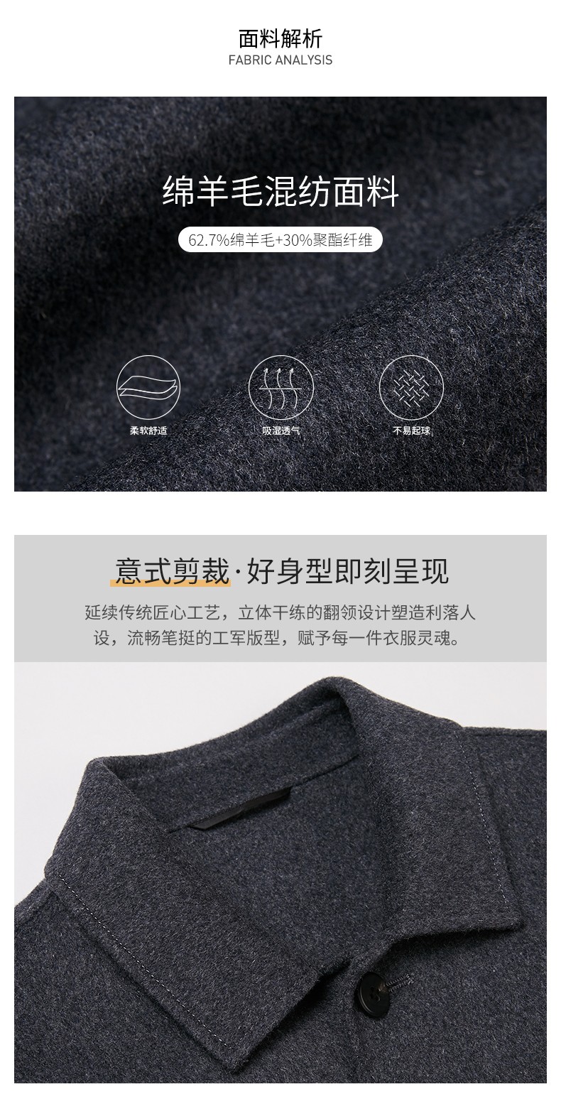 SATCHI Men's Jacket Autumn and Winter Light Luxurious Double-sided Wool Fabric Fashion Versatile Warm Wool Easy-Care Jacket Men Medium Gray 48/170
