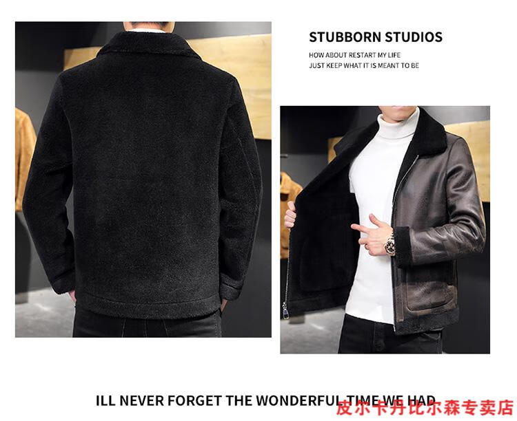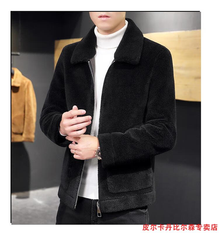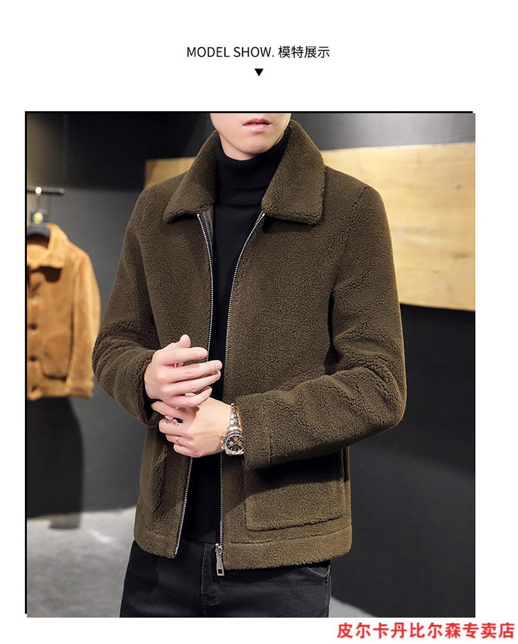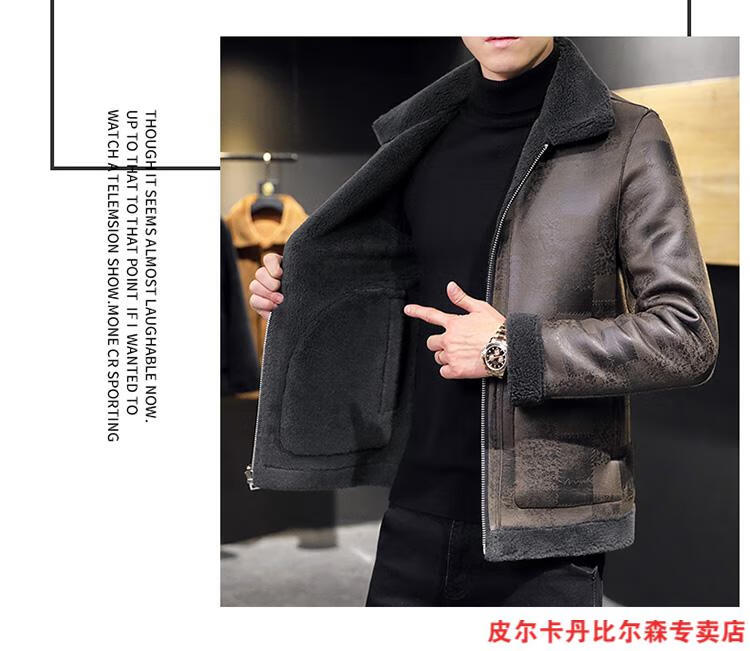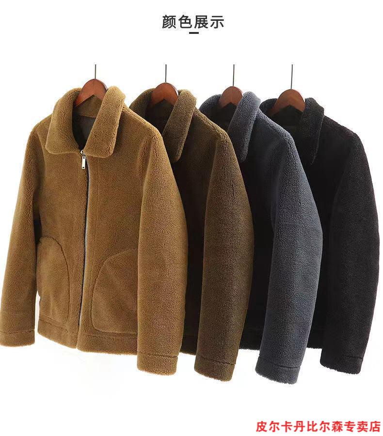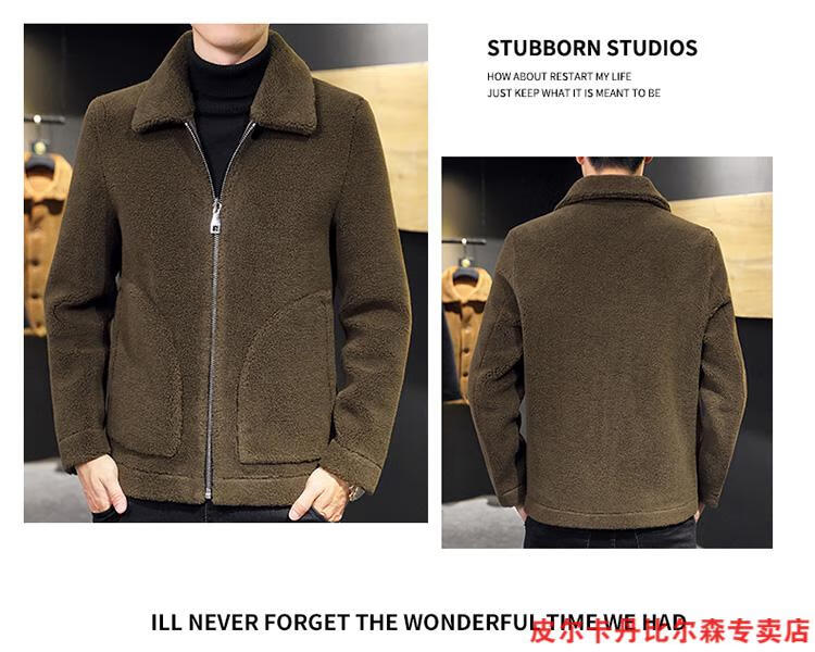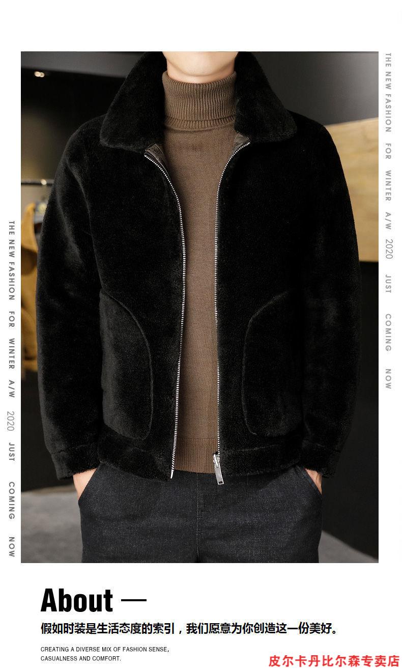 Pierre Cardin brand high-end men's clothing fur one-piece jacket men's loose woolen coat plus velvet thickening winter leather reversible wool velvet coat knitted brown warm and reversible 3XL