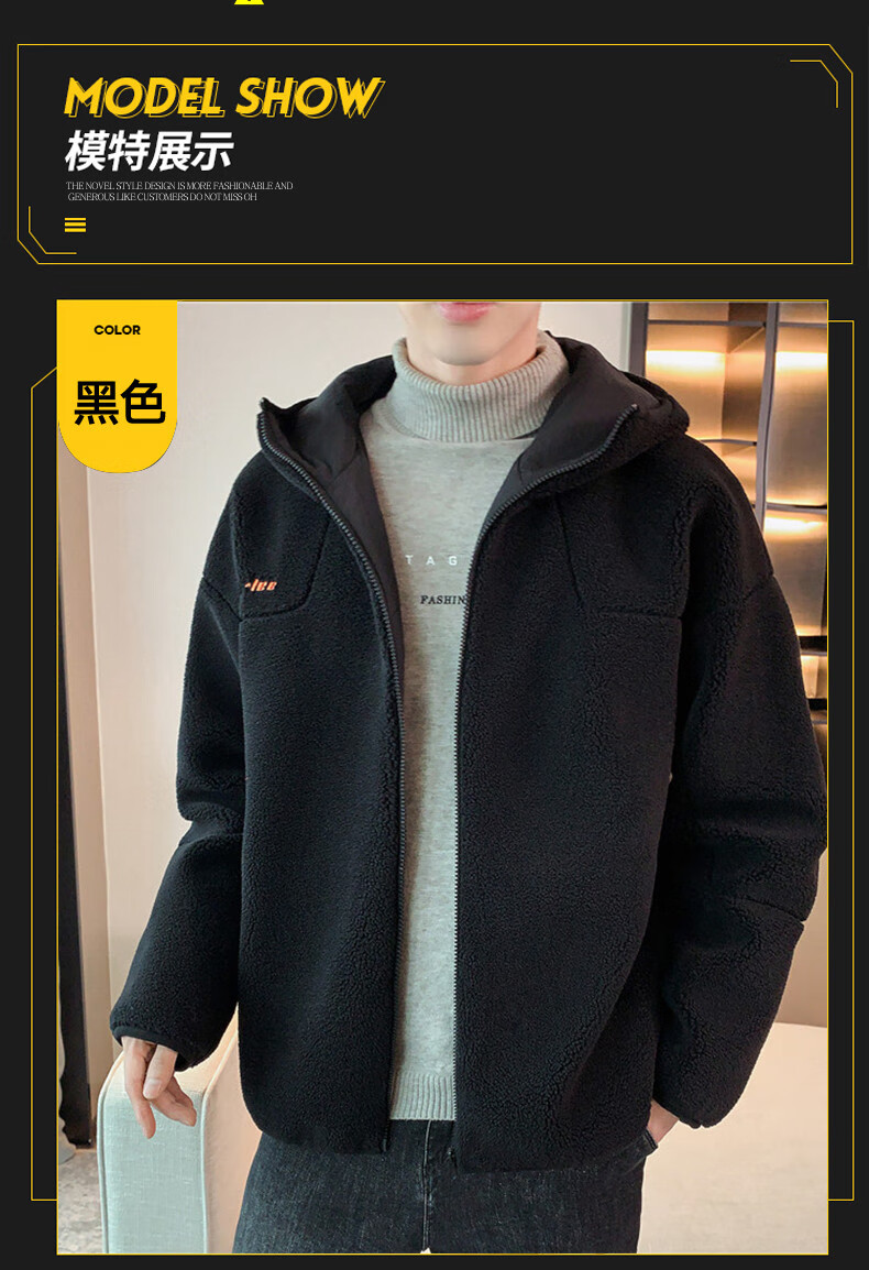 Playboy (PLAYBOY) velvet jacket men's lamb velvet cotton coat men's cotton coat autumn and winter fleece jacket coat top clothes large size black velvet thickened XL