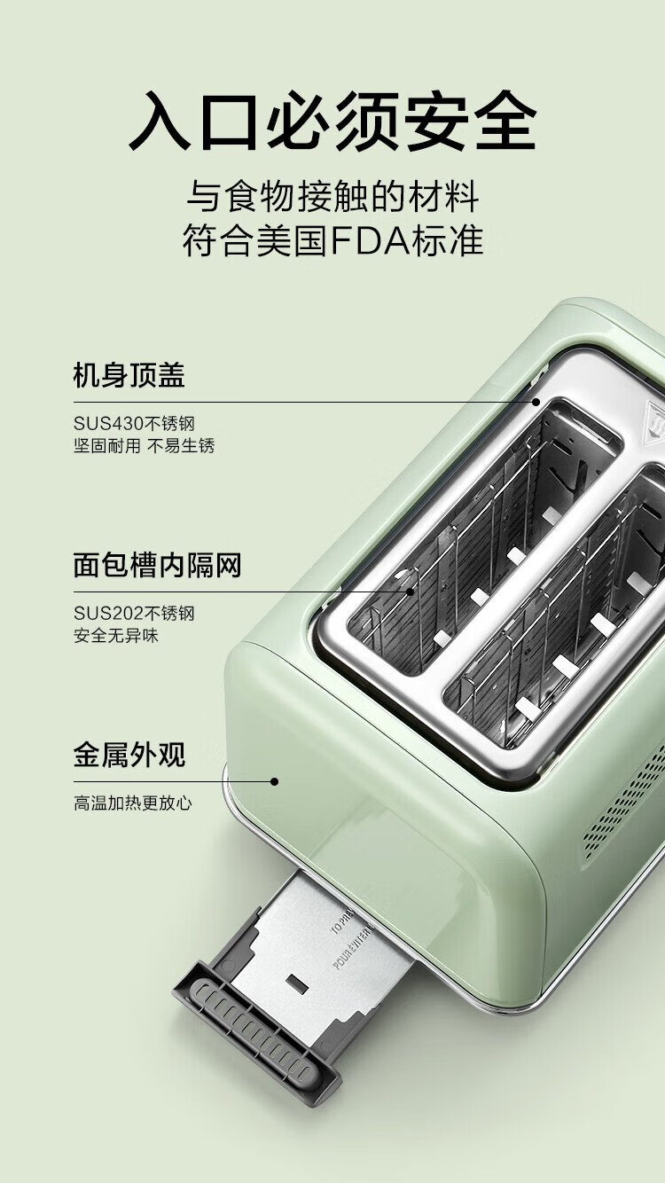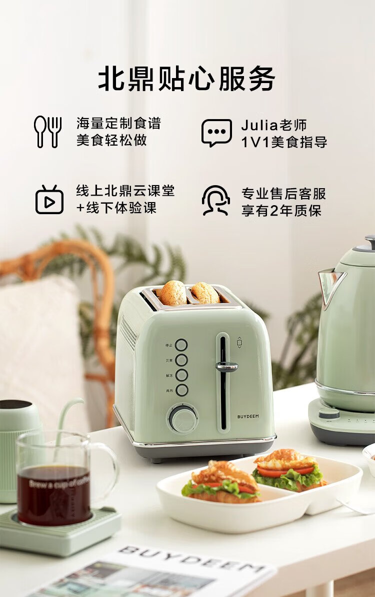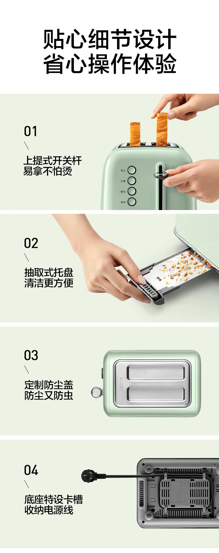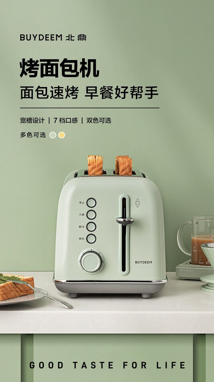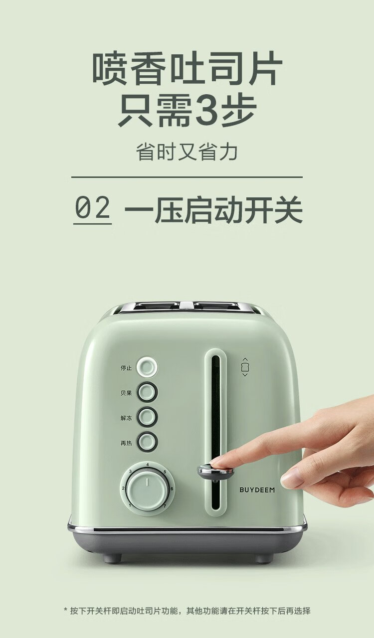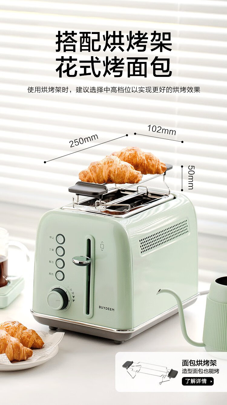 Buydeem toaster D712 bread slice oven toaster 2 slices toast artifact 7-speed baking fast reheating toaster household bread machine breakfast bread machine bread grill gray