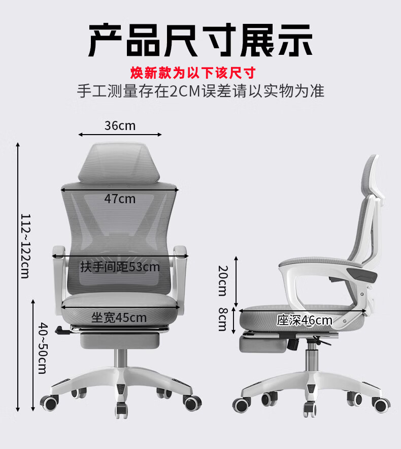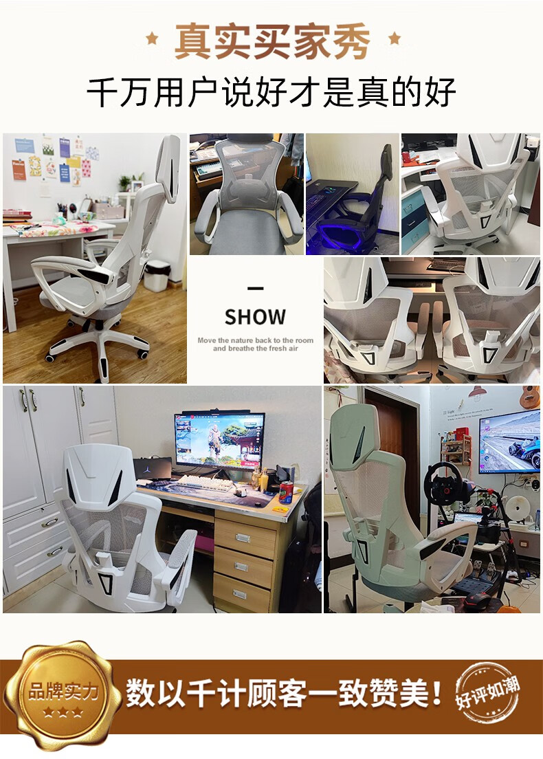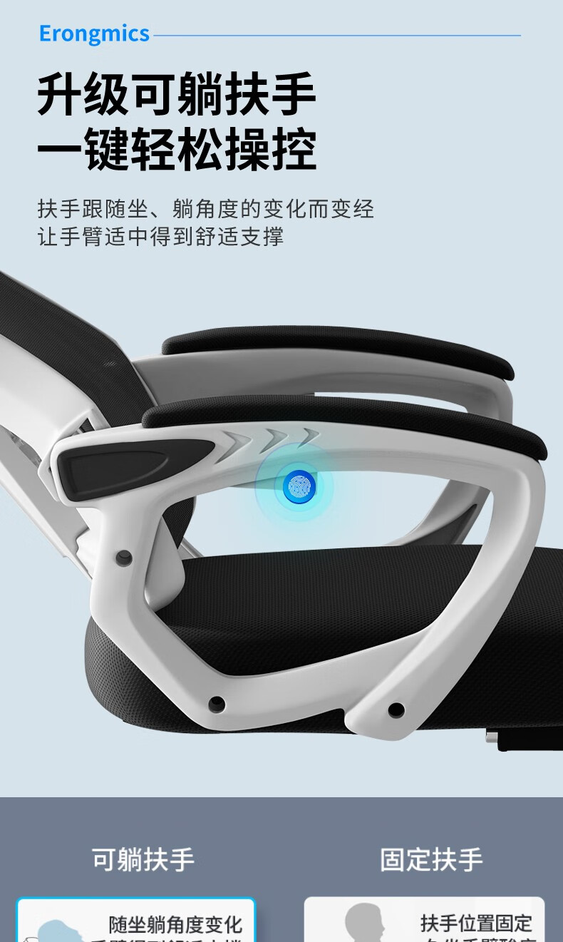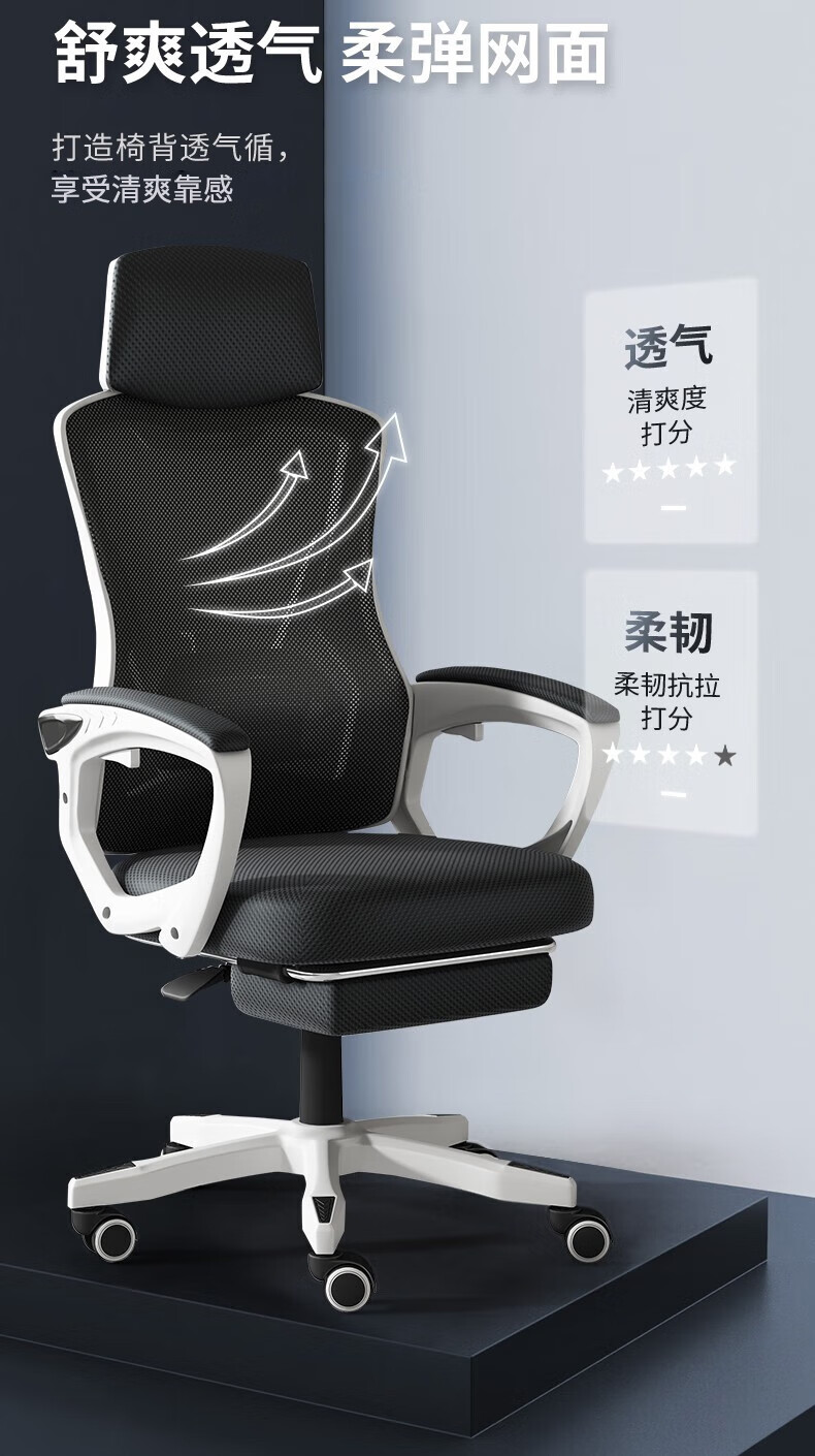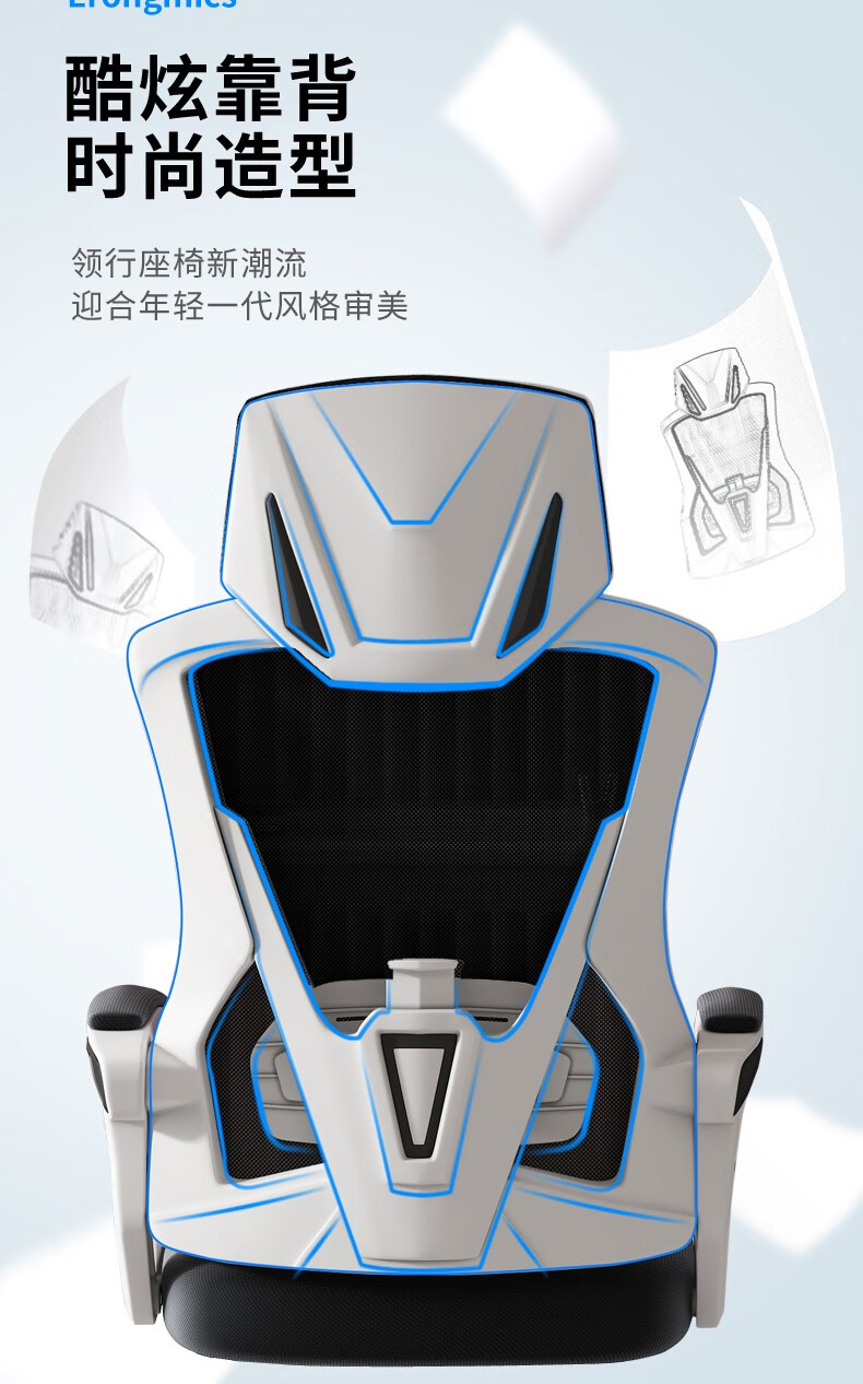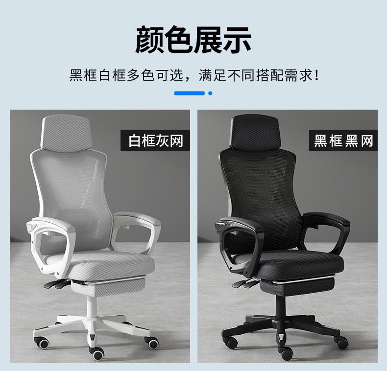 Jinxi computer chair home office chair backrest ergonomic chair learning swivel chair boss chair gaming e-sports chair reclining white frame gray mesh