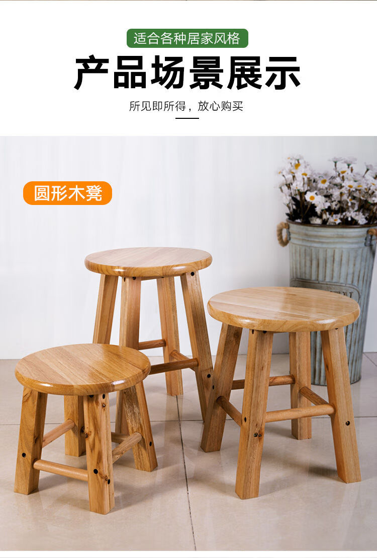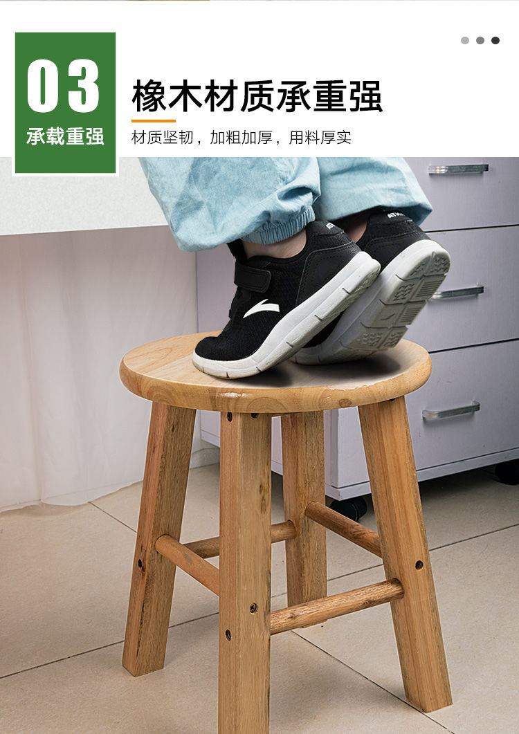 Solid wood small round stool wooden stool household oak stool shoe stool household low stool eating stool 25CM high