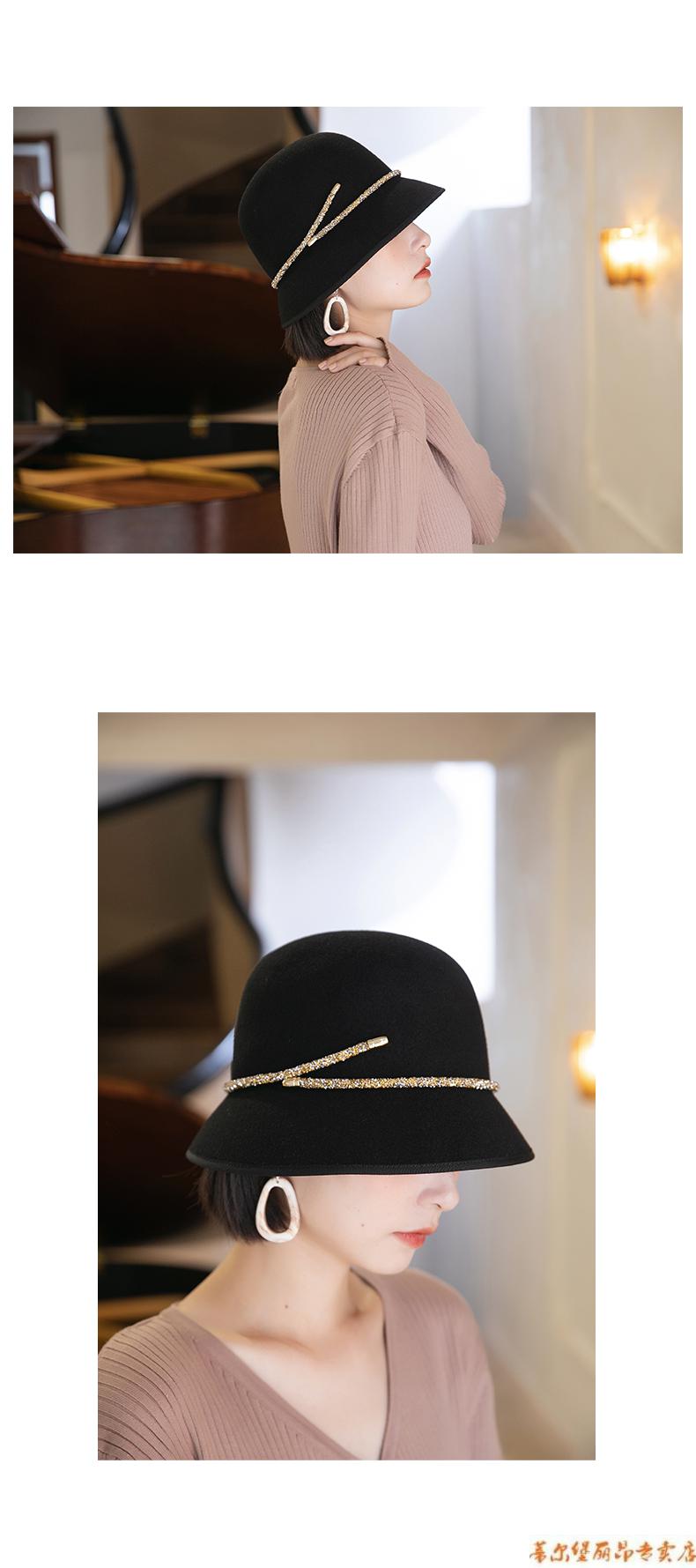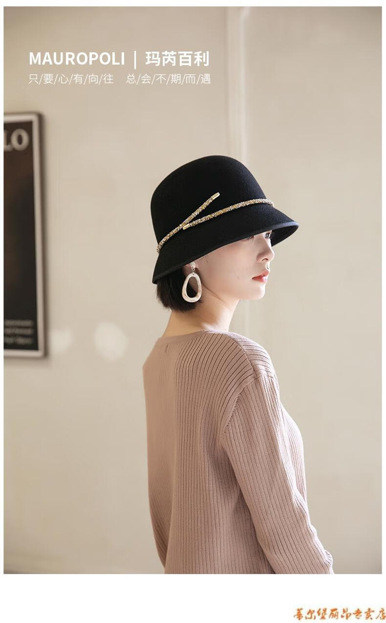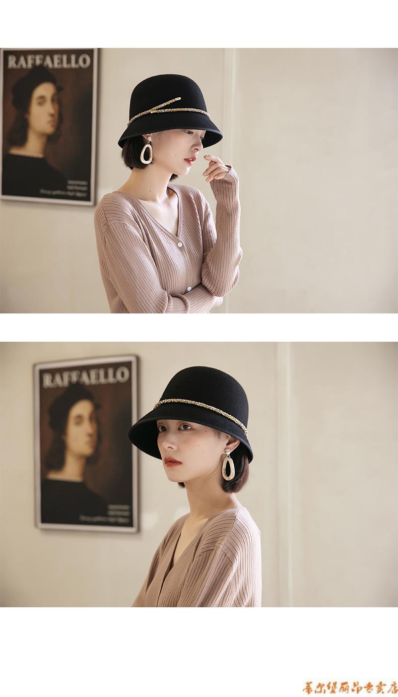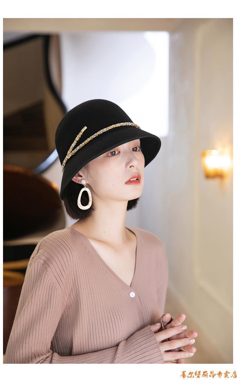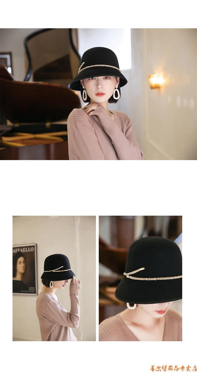 Light luxury brand, star Internet celebrity same style, new French woolen felt hat for women, autumn and winter wool fisherman hat, women's winter British retro versatile shaped basin hat, black, adjustable M (55-58cm)