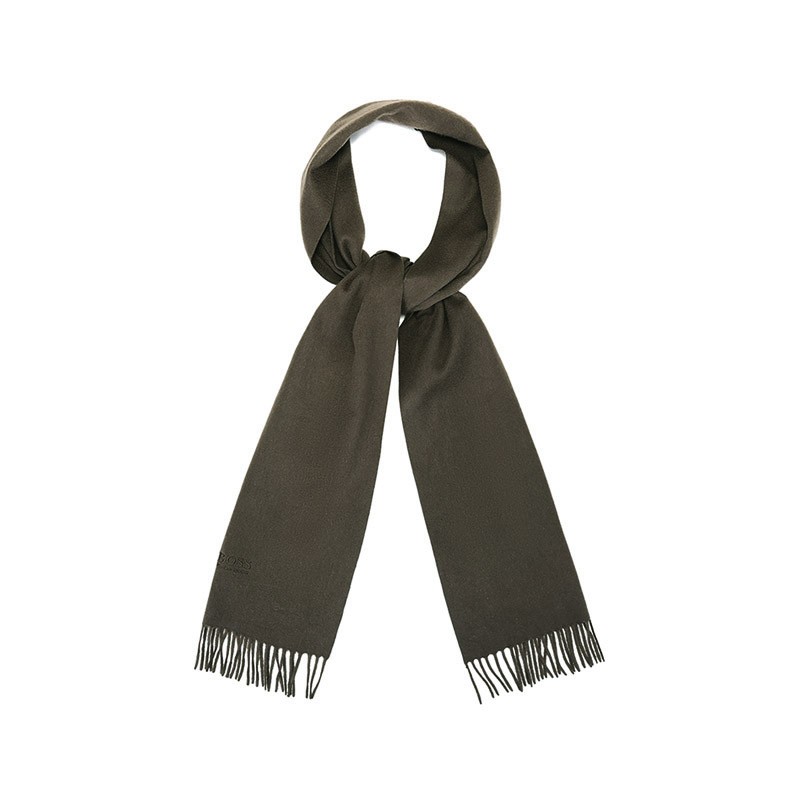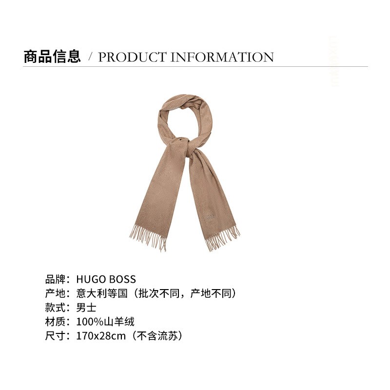 BOSS Men's Thin Cashmere Warm Tassel Scarf 170*28cm Gift for Men 50415017 001 Black LOGO Embroidery