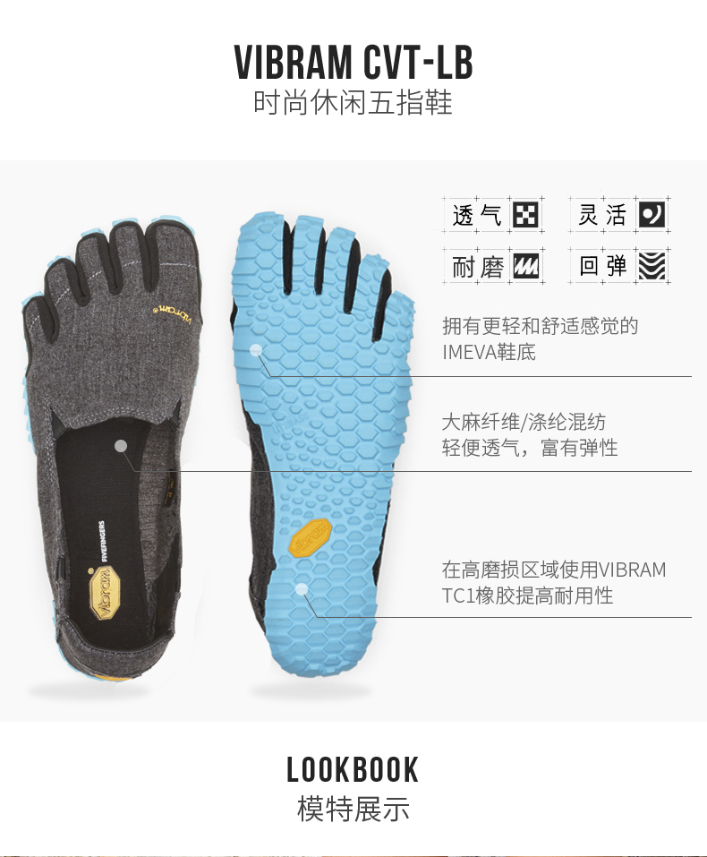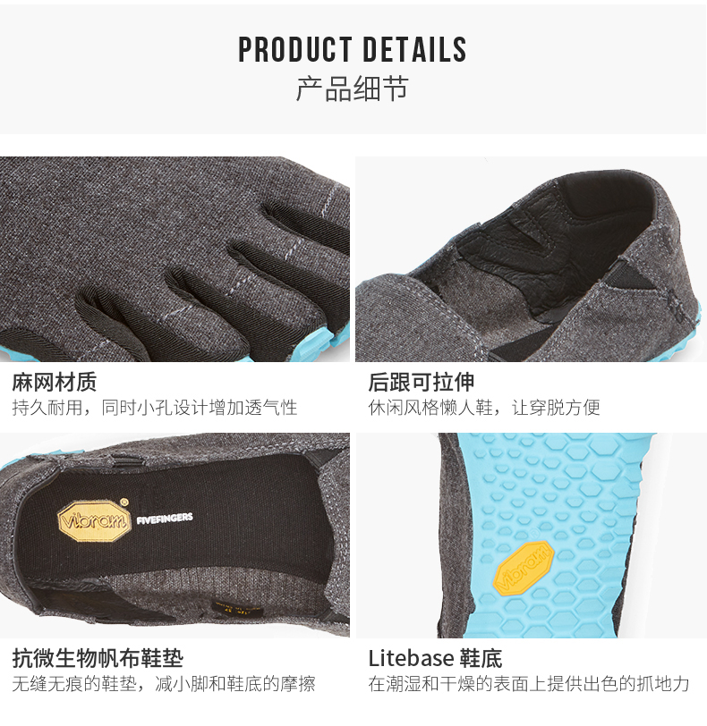Vibramvibram new five-finger shoes LITEBASE light technology breathable cotton and linen casual five-finger shoes CVT men's 40