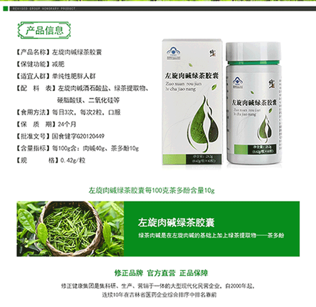 Corrected L-carnitine green tea capsules for weight loss for simple obese people. Five boxes of weight loss food and health products for men and women*60 capsules